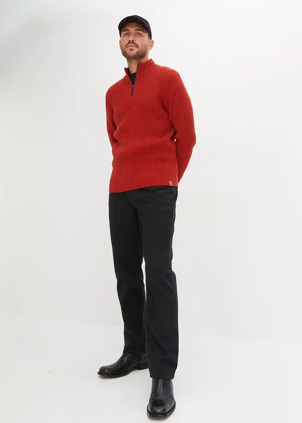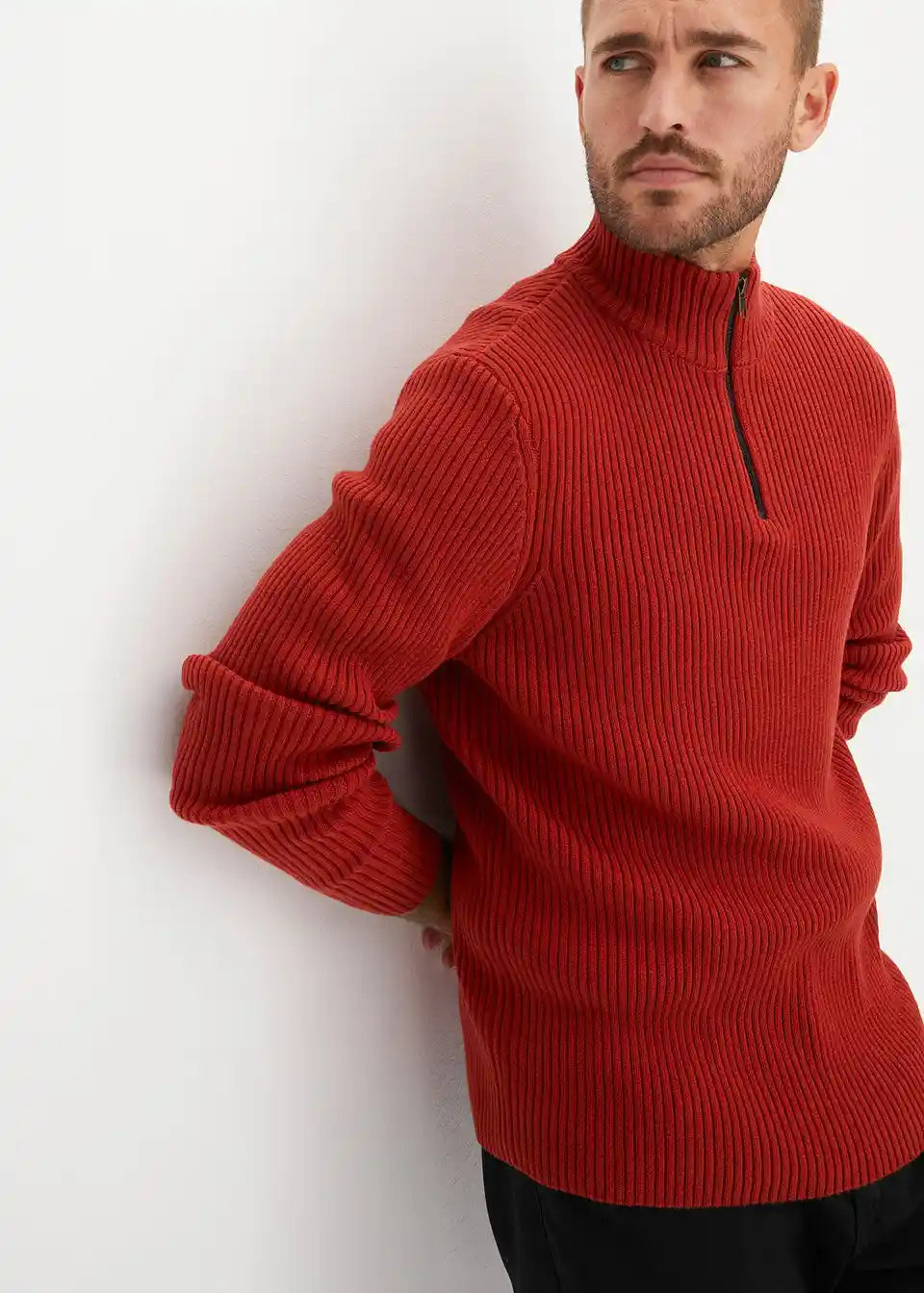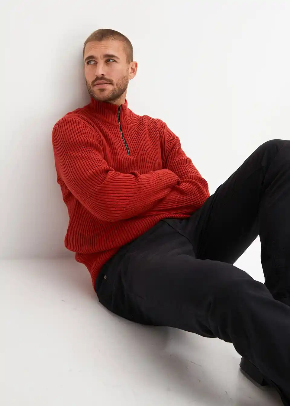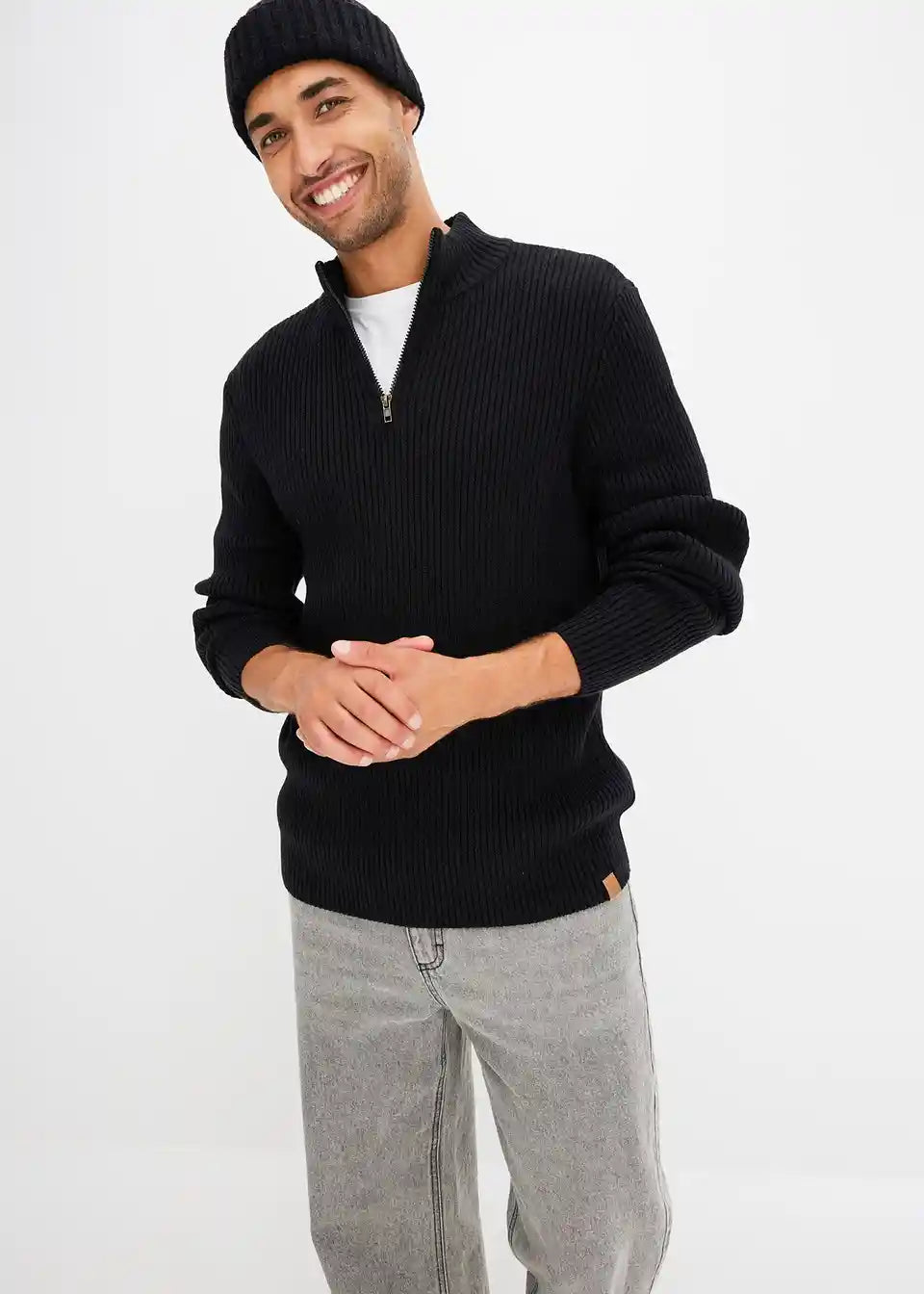 moderner Pullover mit Troyerkragen und Reißverschlussöffnung