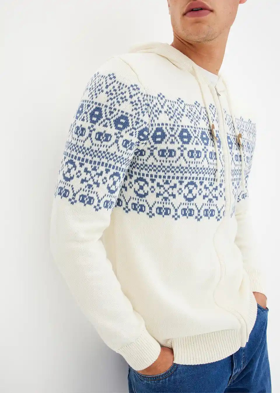 Norweger Kapuzenstrickjacke mit Komfortschnitt und Baumwolle
