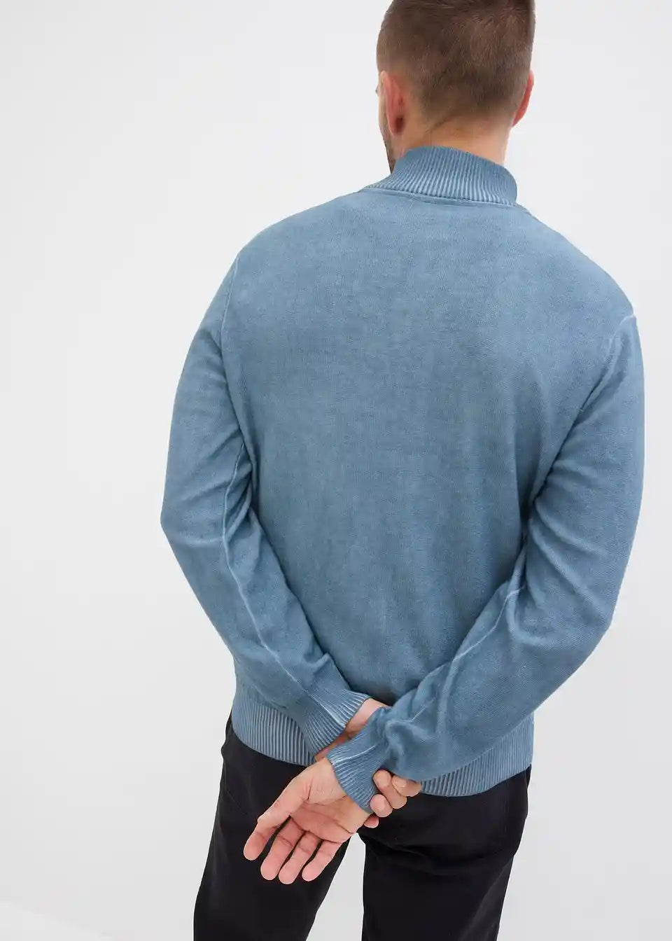 Die Ärmelbündchen sind nicht sehr formstabil und leiern schnell aus. Wichtig! Den Pullover vor dem ersten Tragen auf jeden Fall waschen, da er stark abfärbt. Unser neues helles Sofa hat jetzt einen Blaustich.