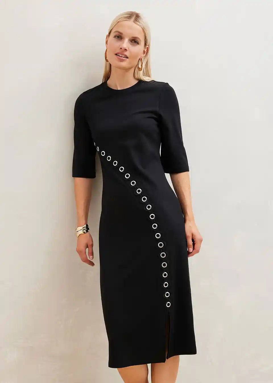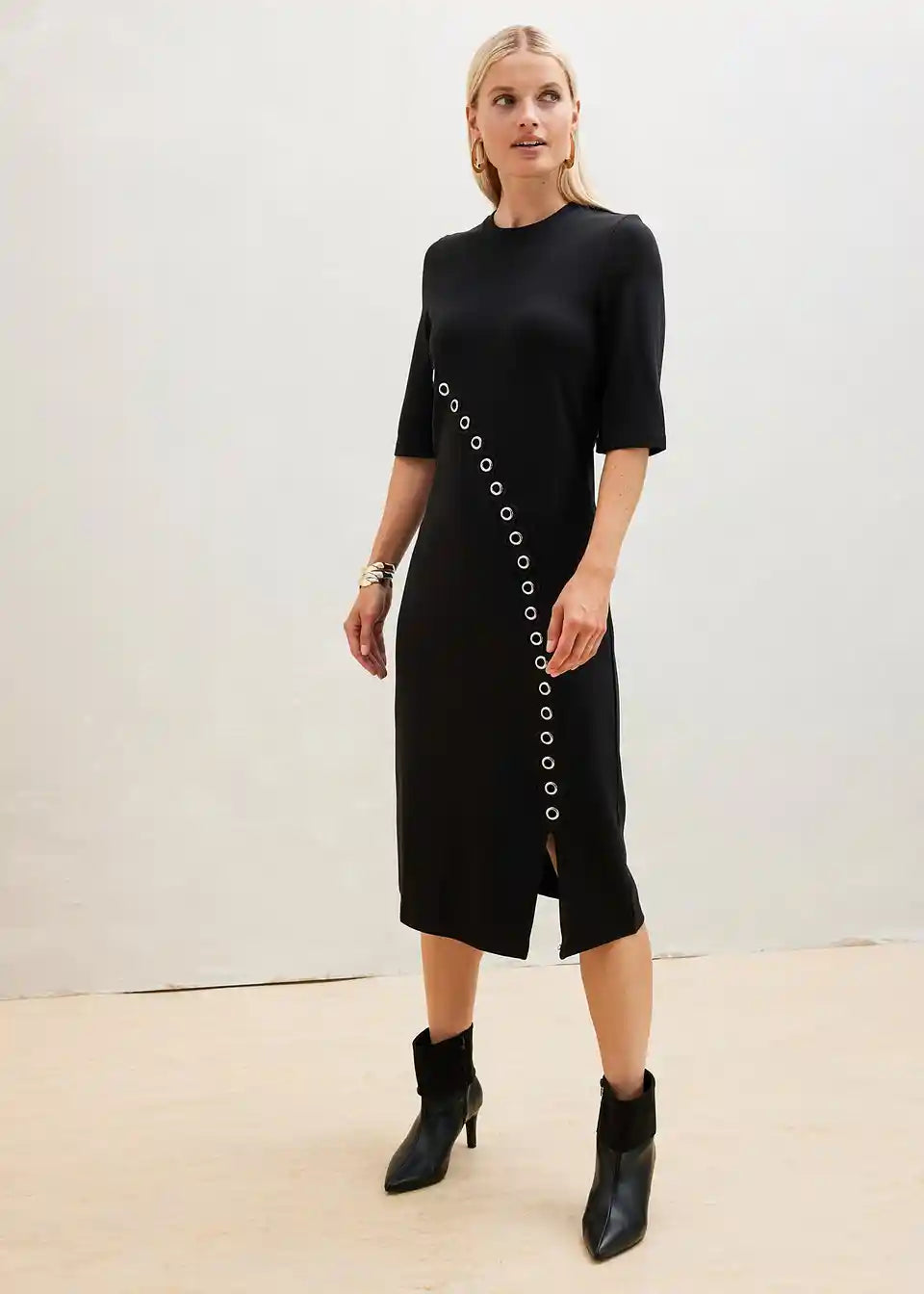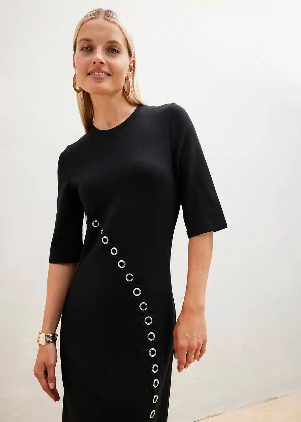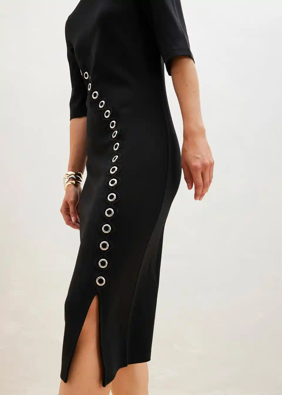 Figurbetontes Kleid mit toller Nieten-Optik und hohem Schlitz.
