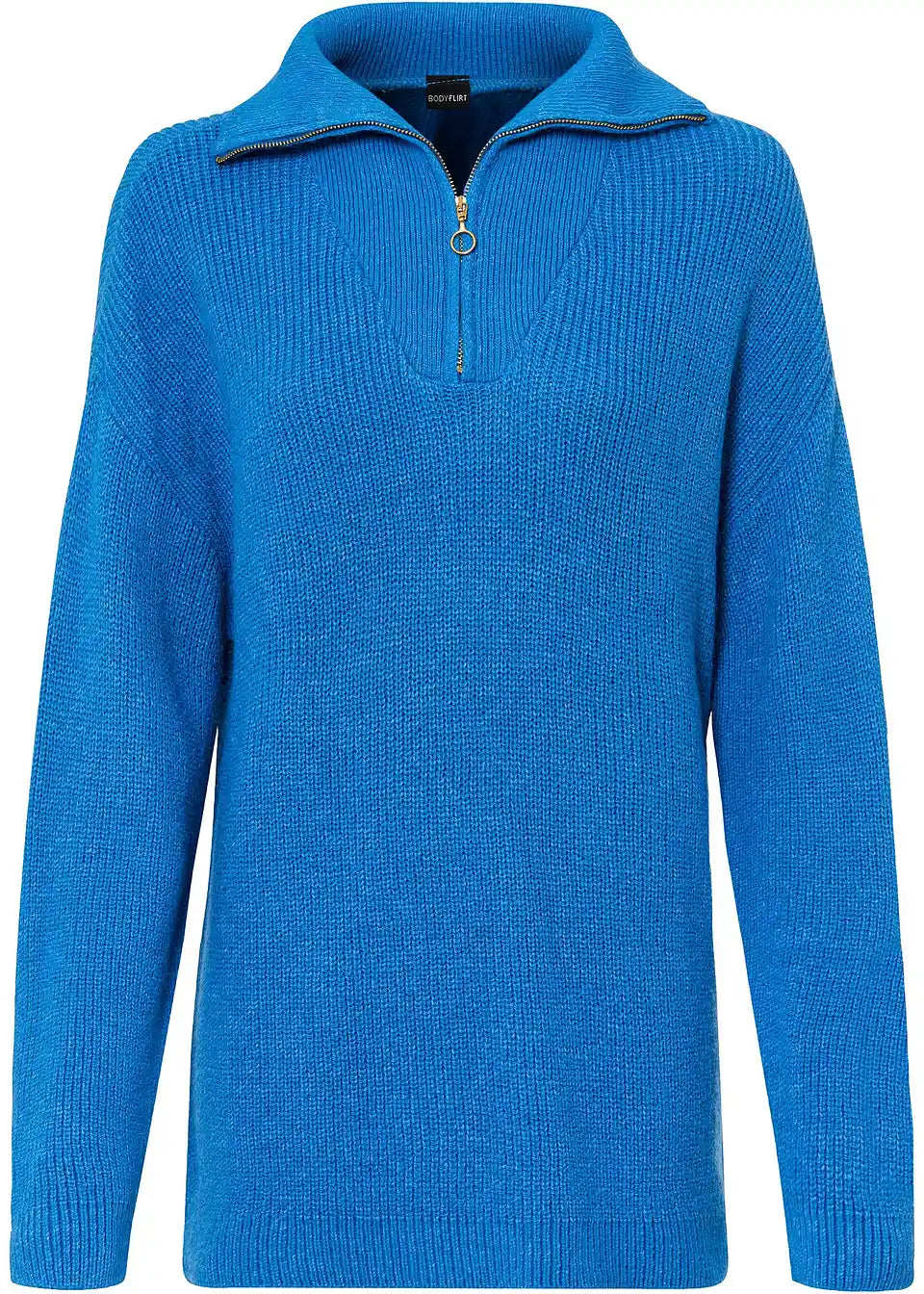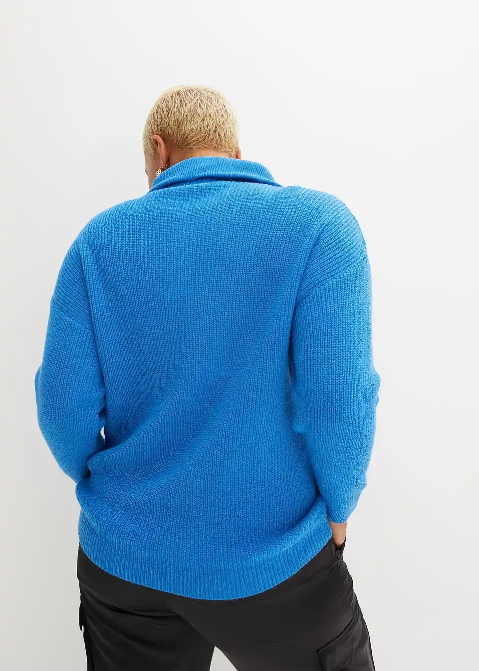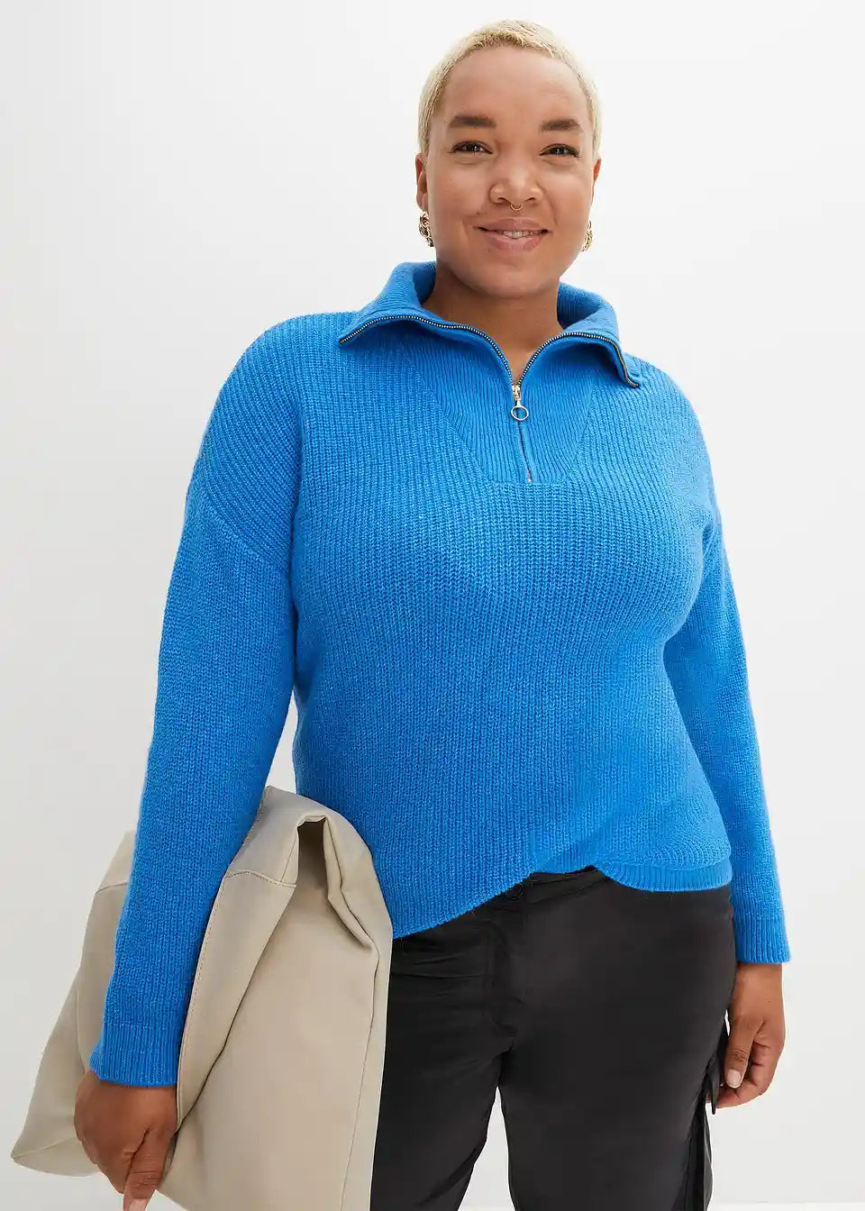 Figurumspielender Pullover mit Reißverschluss und Stehkragen.