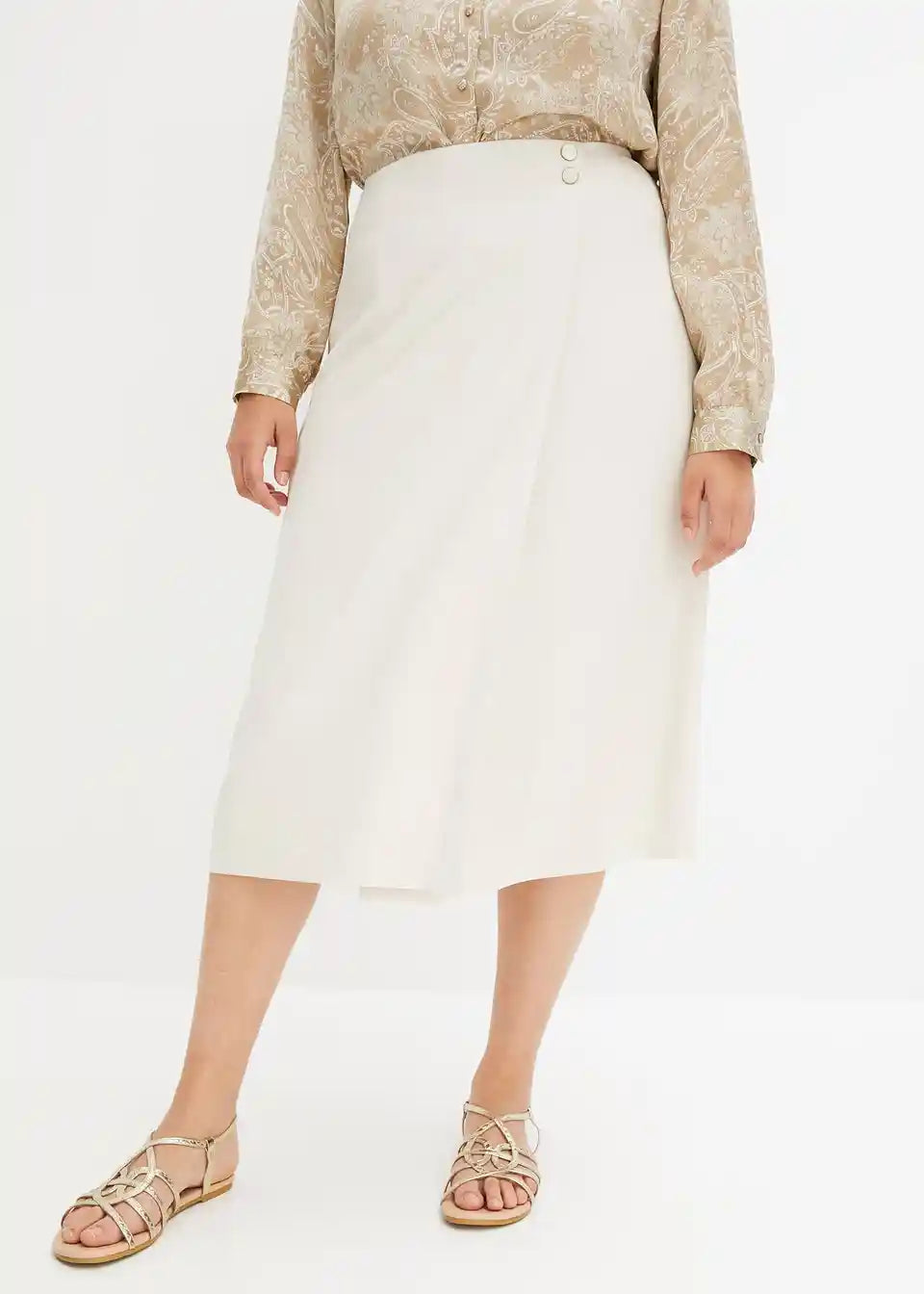 modischer Rock in Wickeloptik mit dekorativen Knöpfen oben am Bund