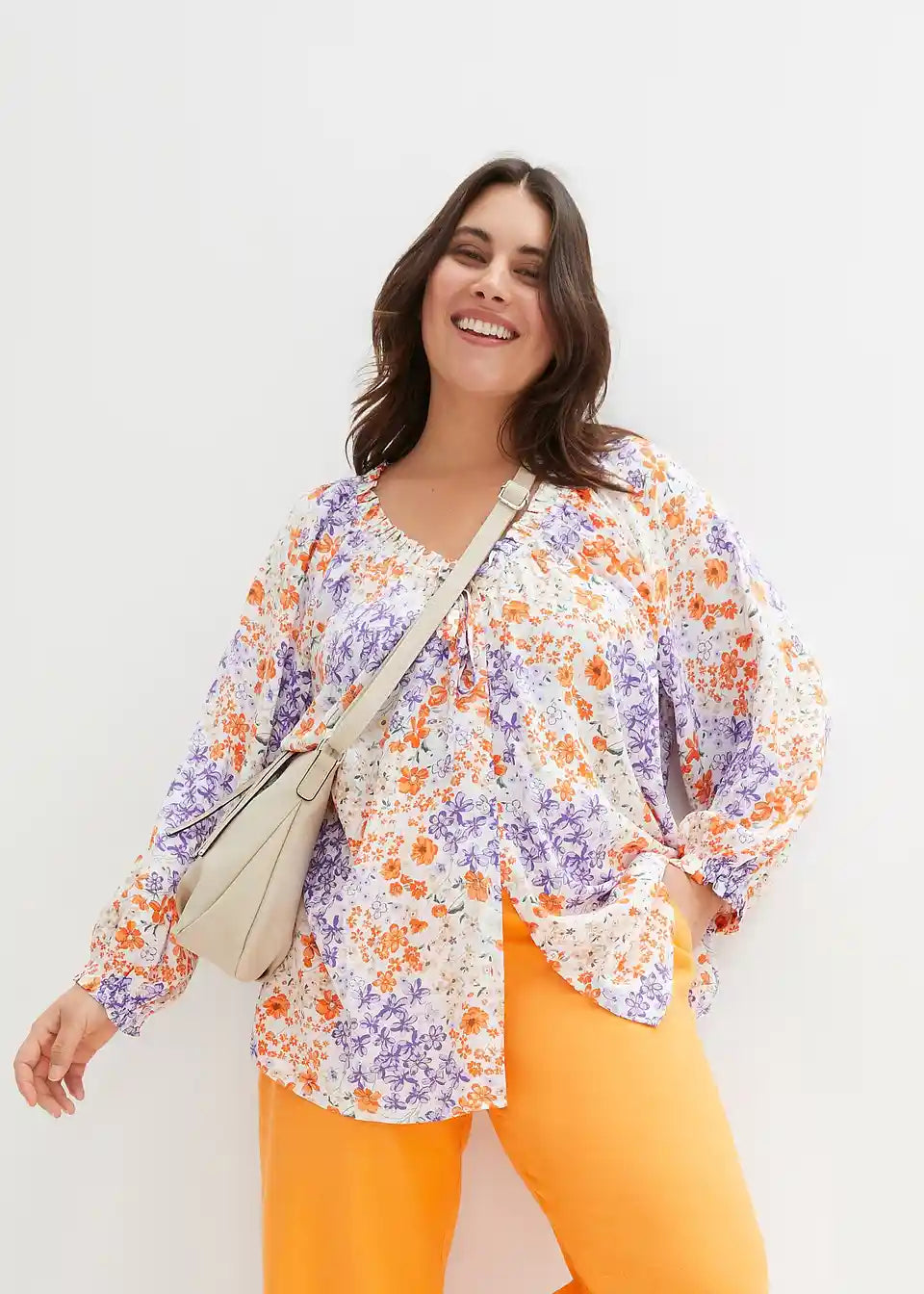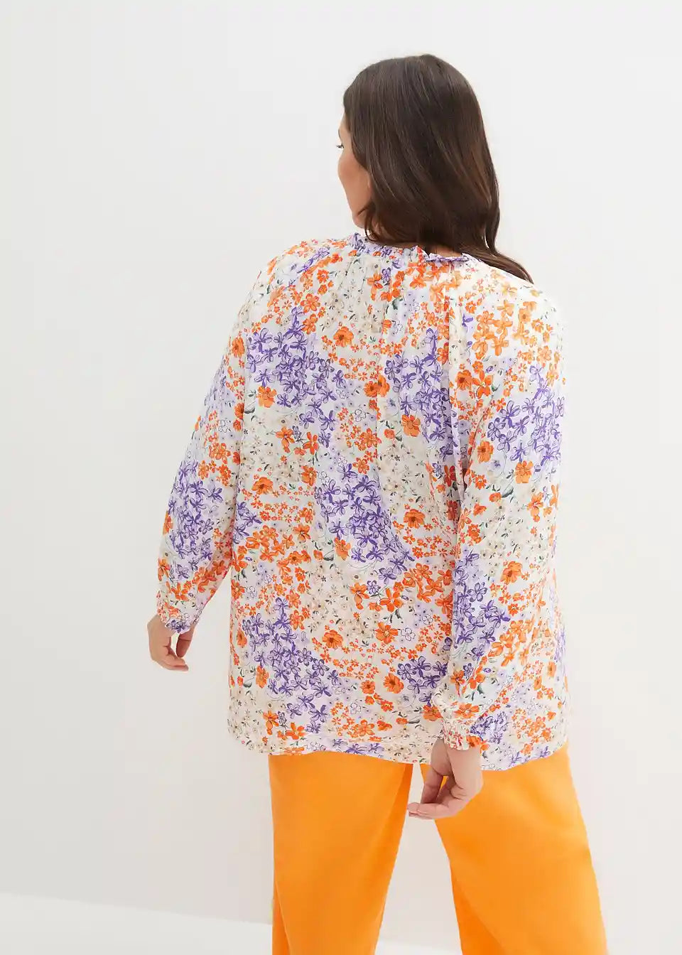 Lässig geschnittene Strukturbluse mit Rüschen und floralem Druck