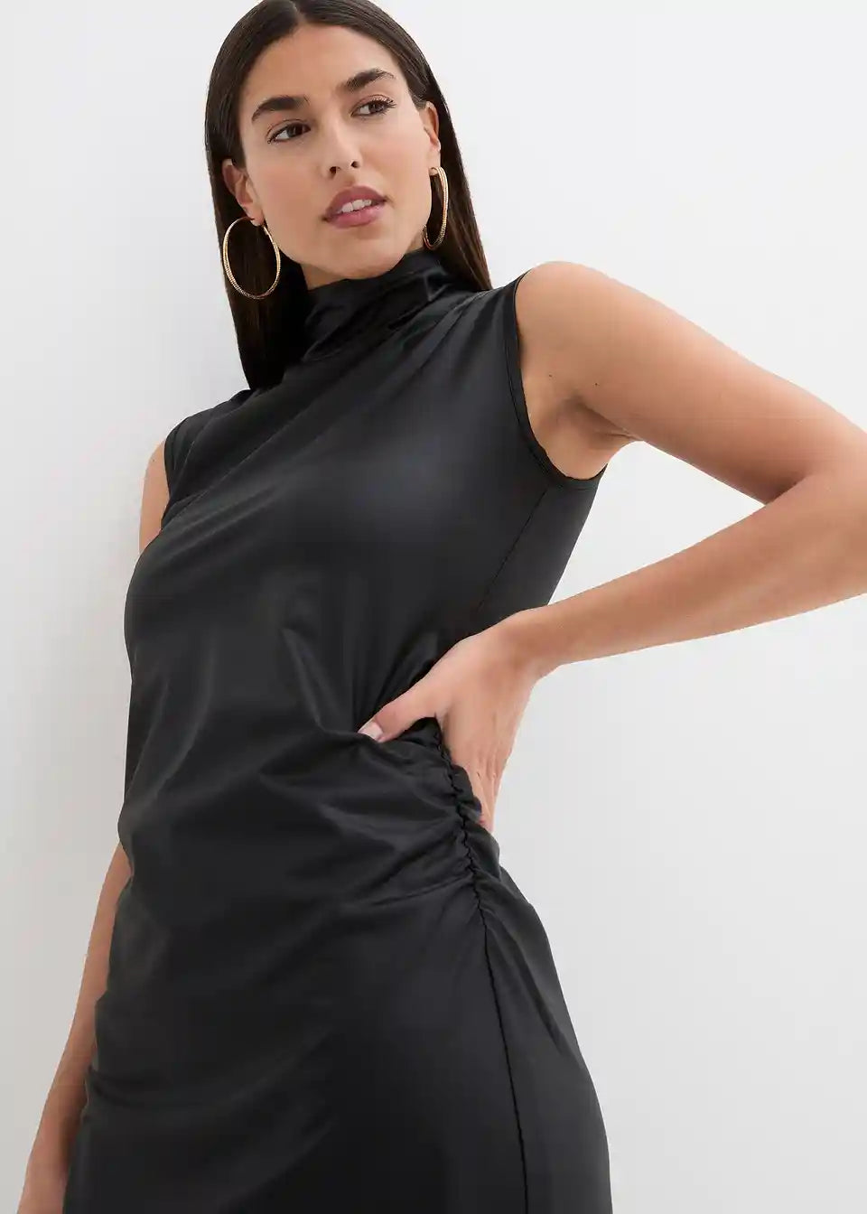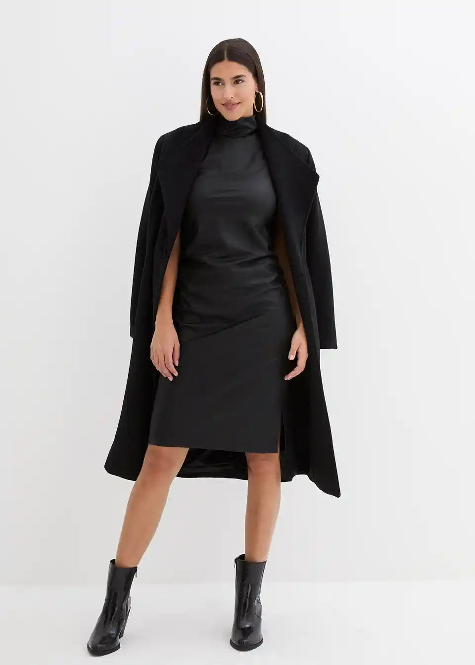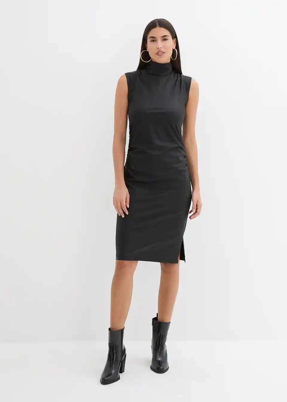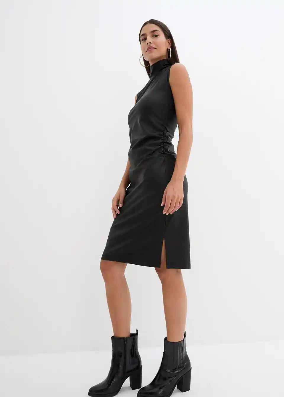 figurbetontes Lederimitat-Kleid mit Drapierung