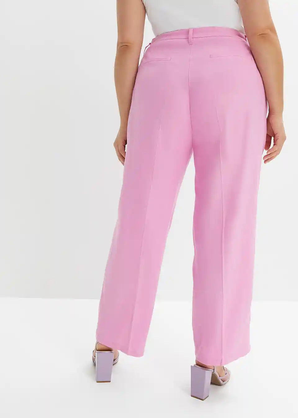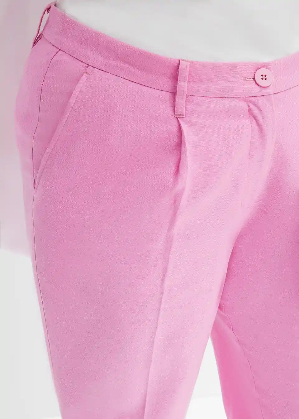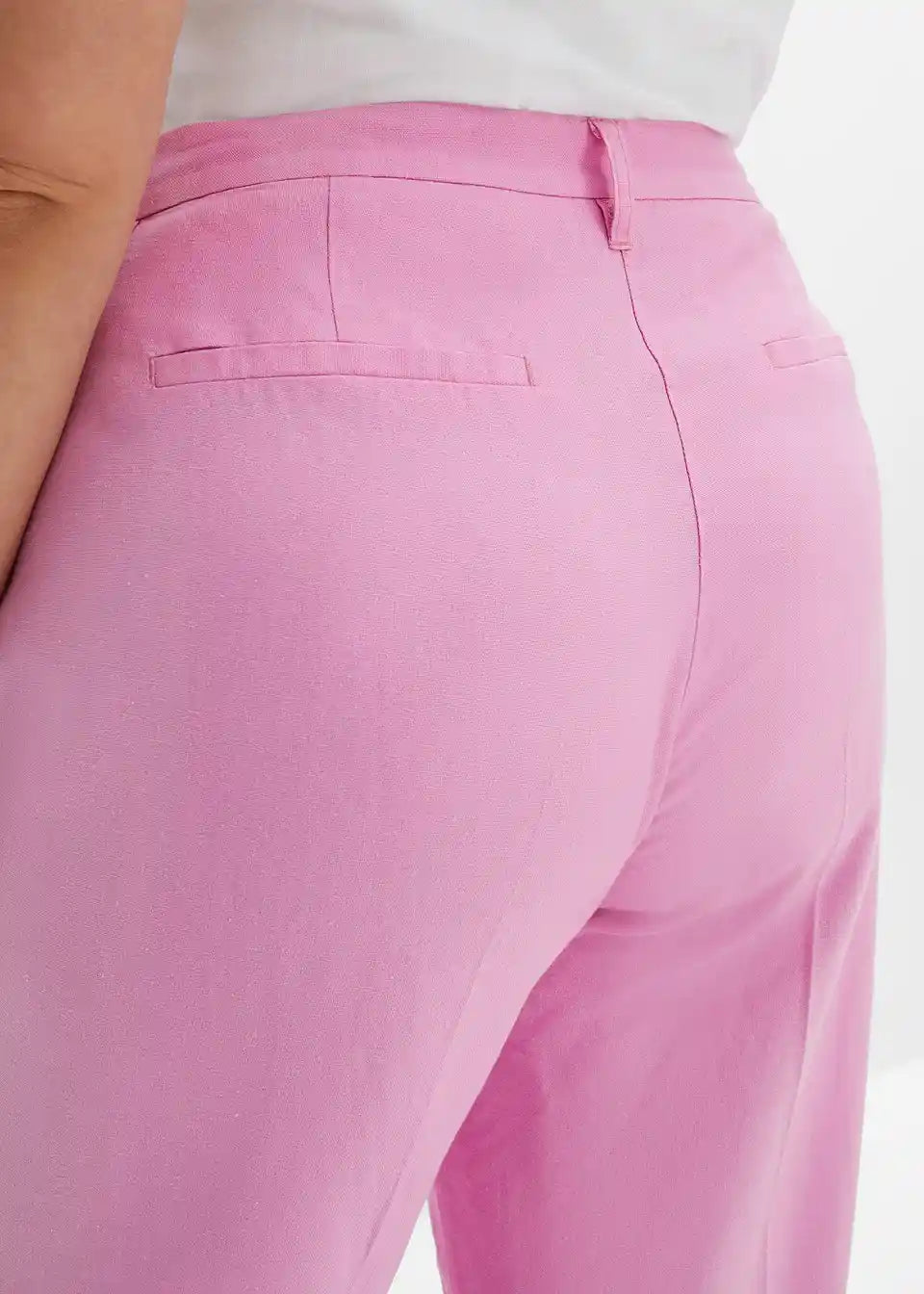 Modische Leinenhose mit zwei Fake-Paspeltaschen hinten.
