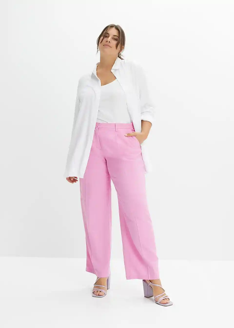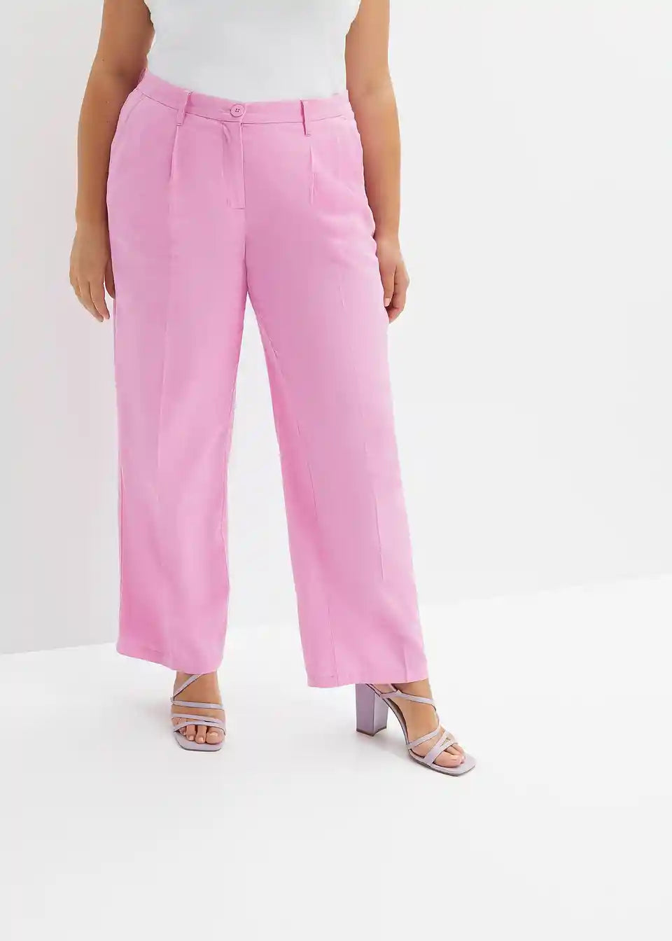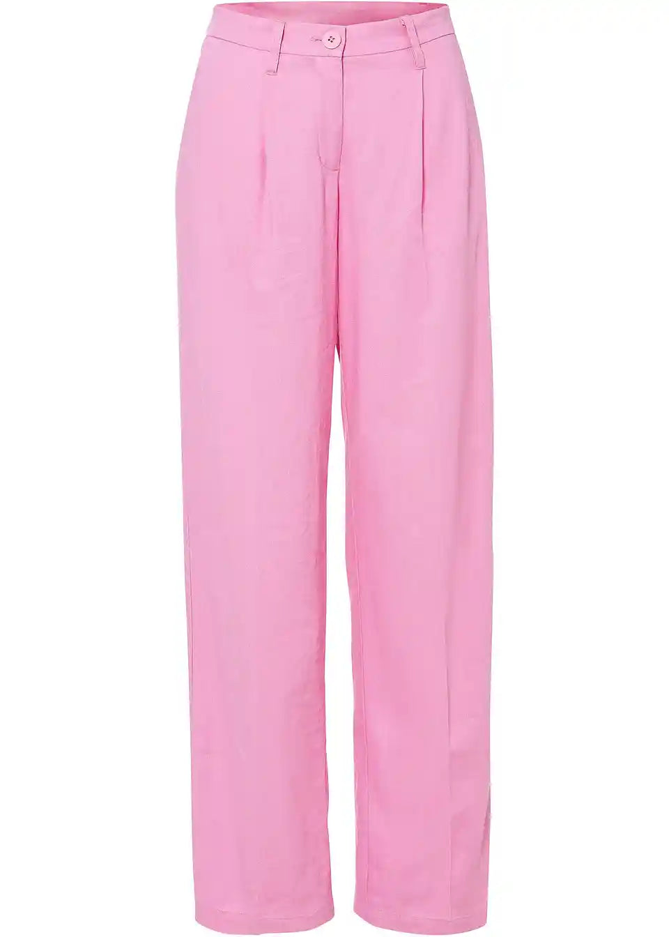 Modische Leinenhose mit zwei Fake-Paspeltaschen hinten.