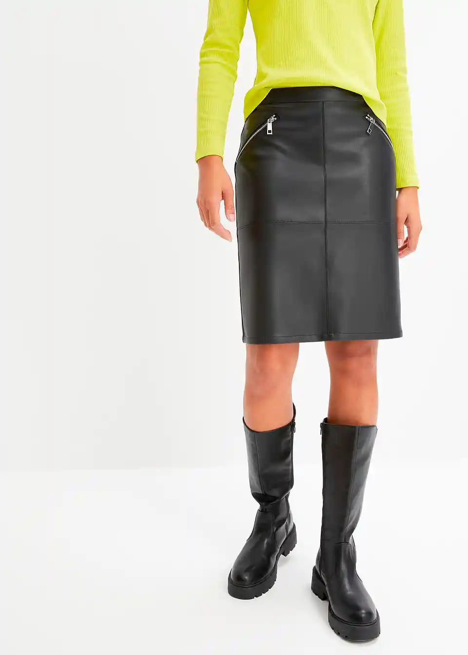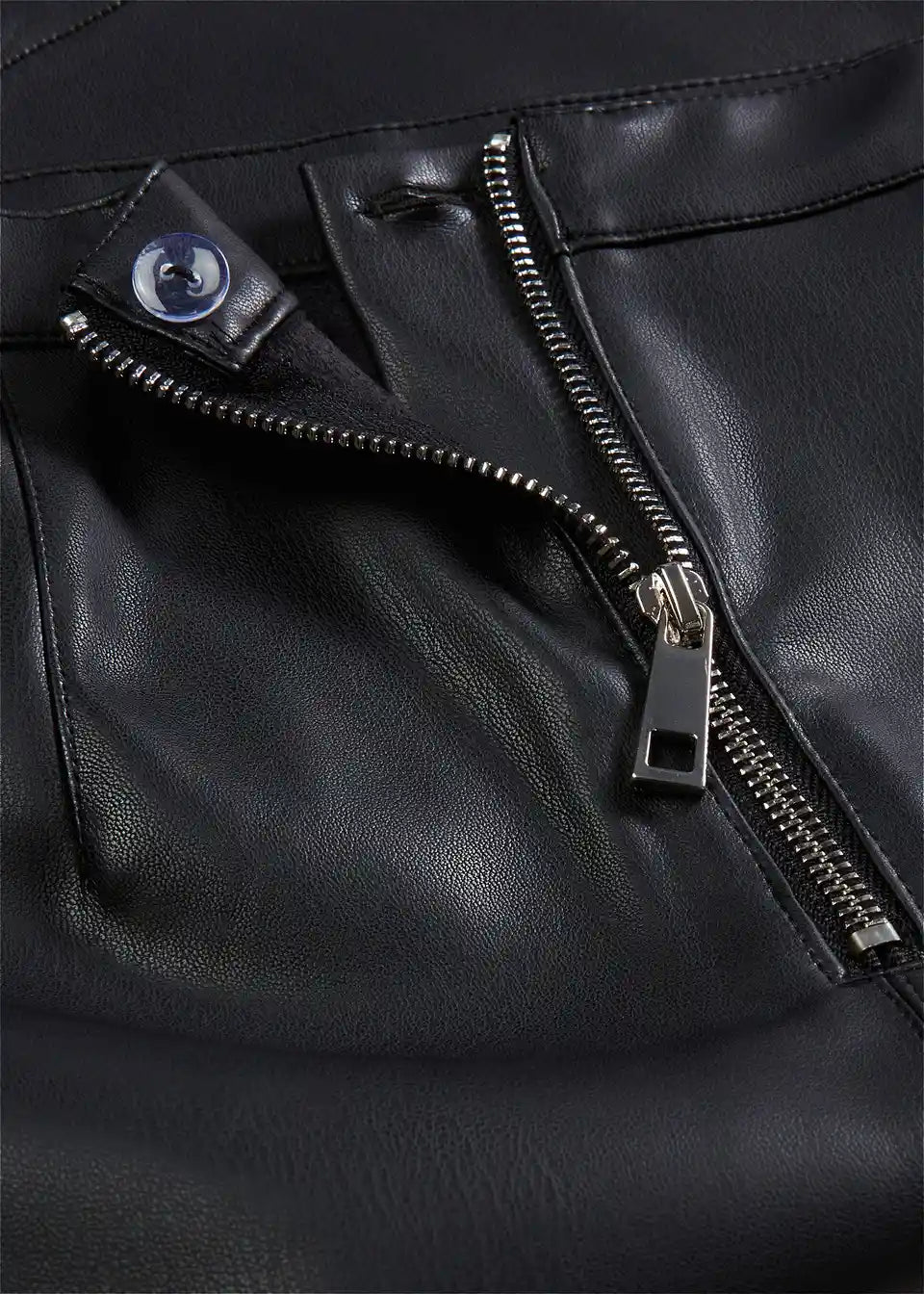 Stylischer Lederimitat-Minirock mit dekorativen Taschen.