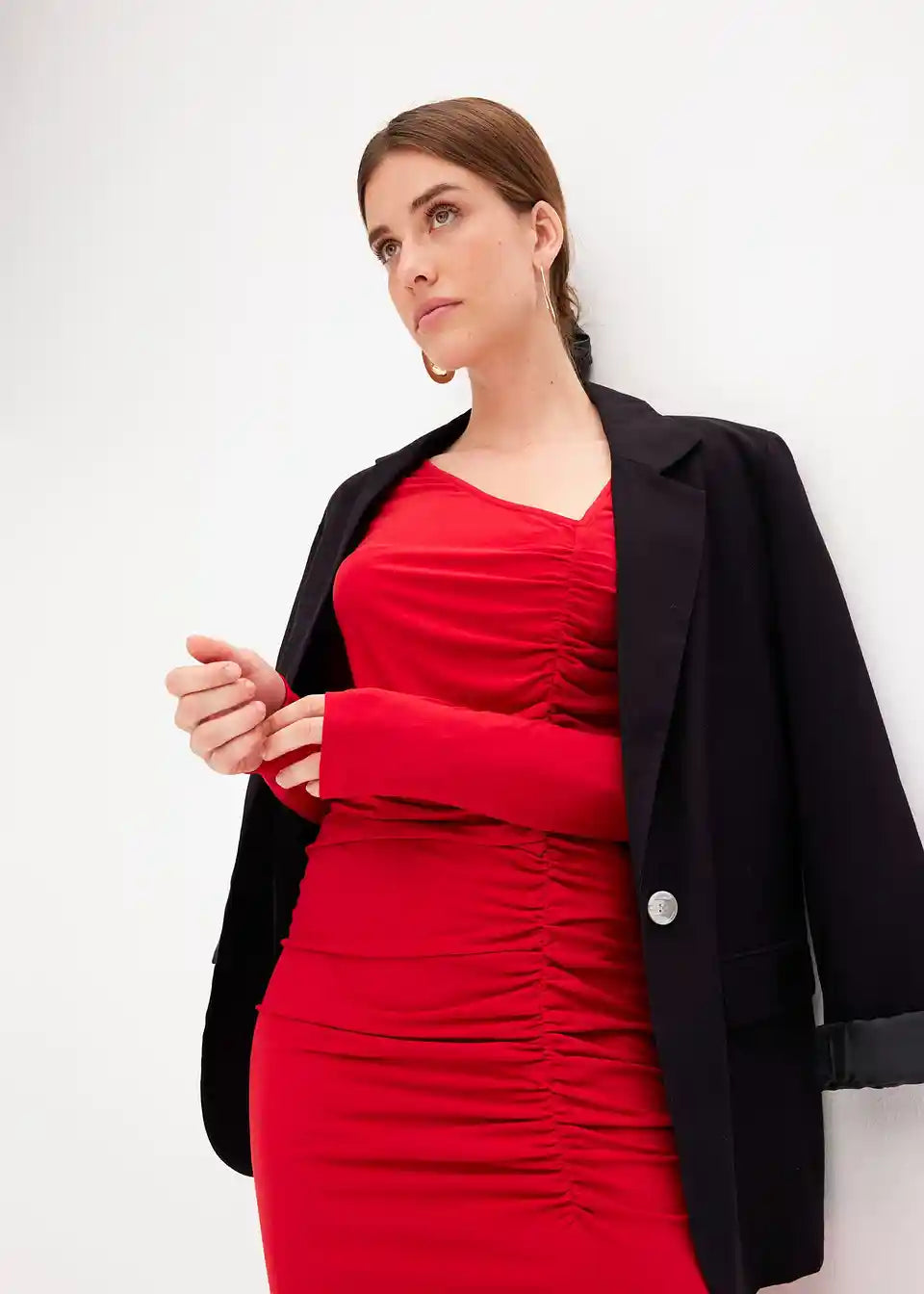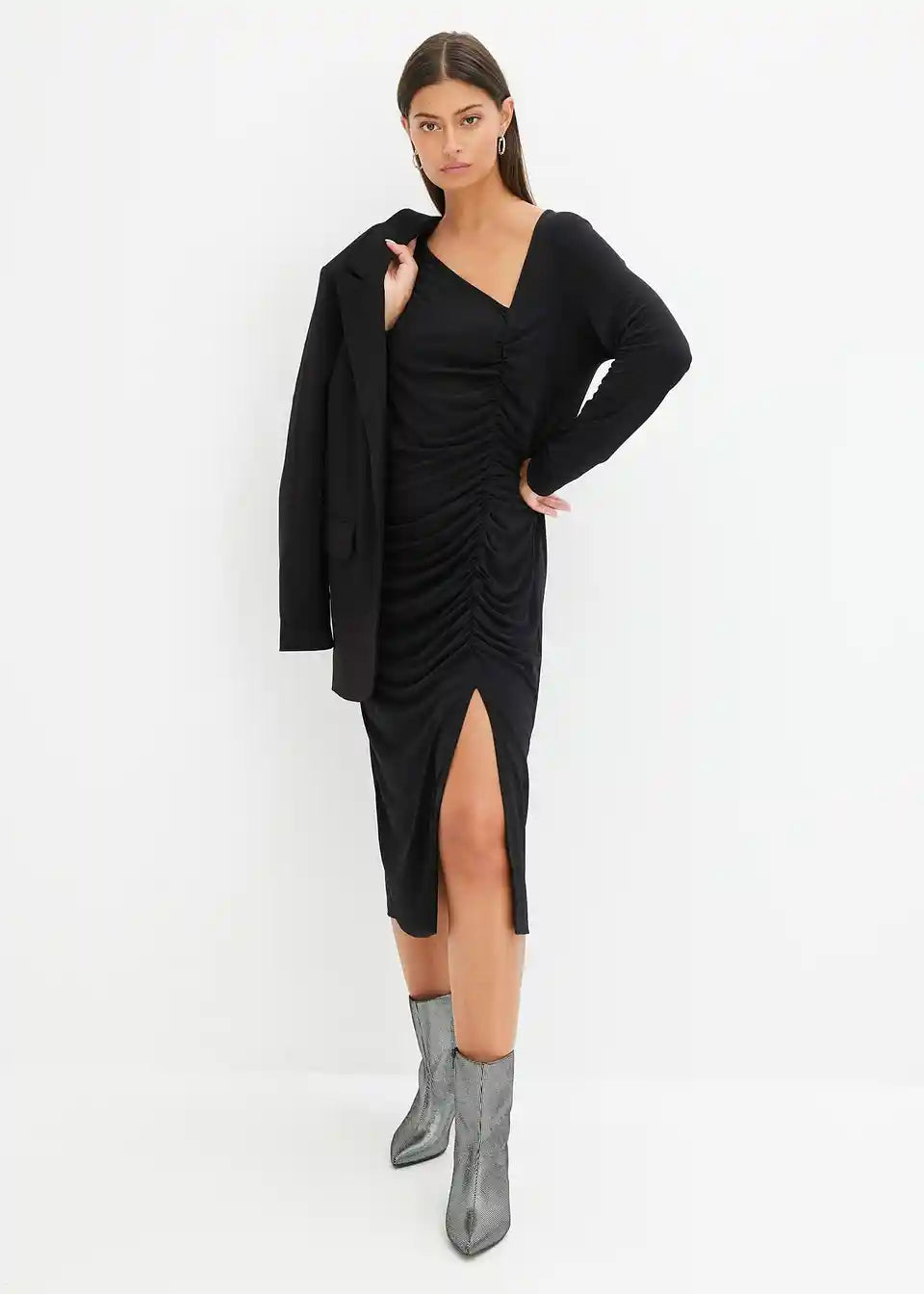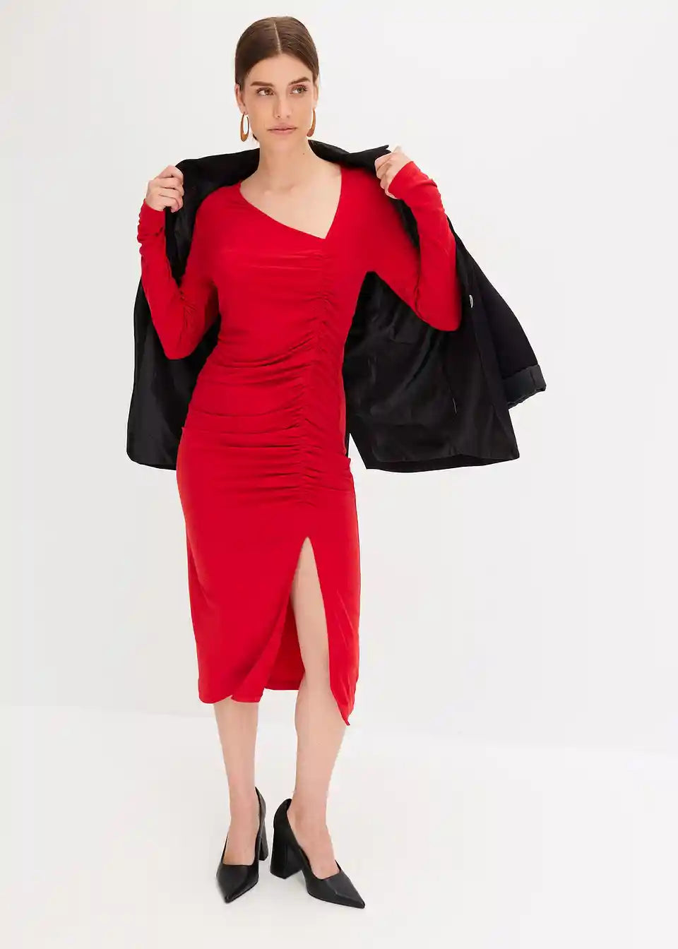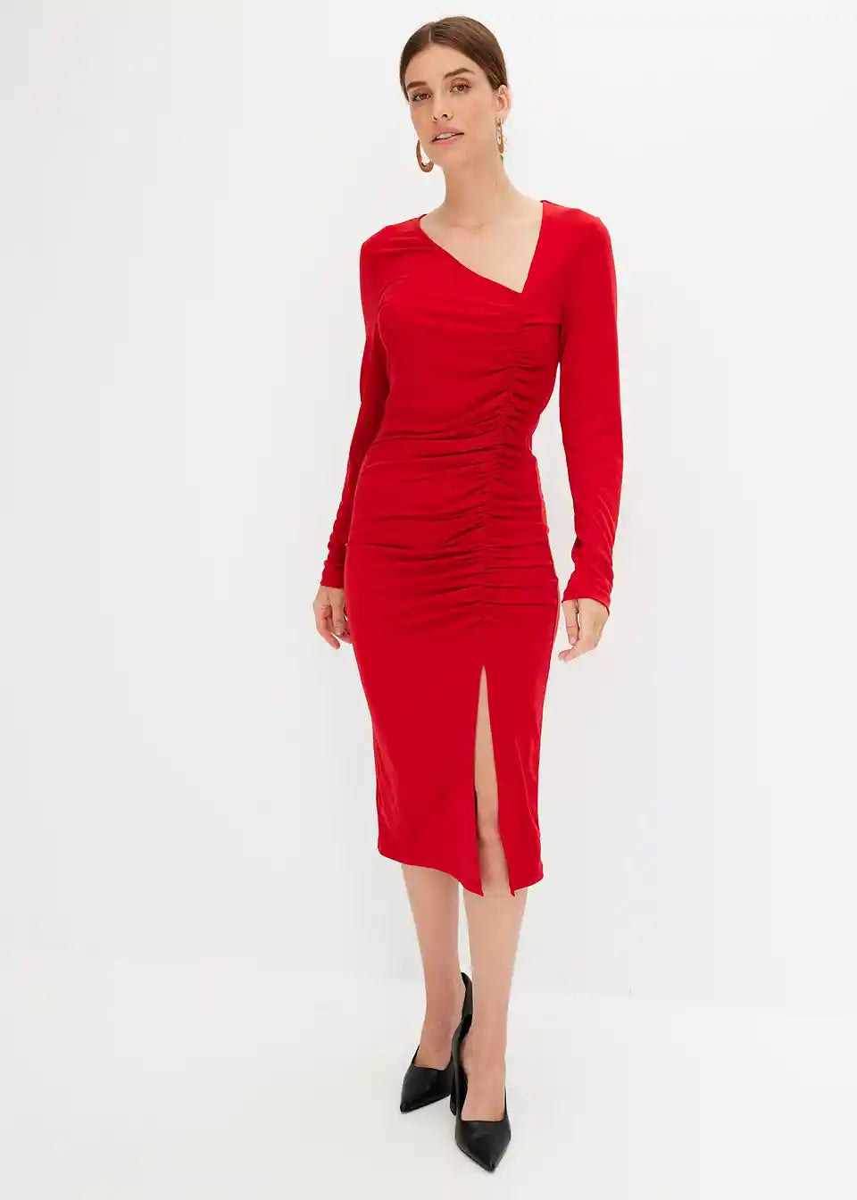 Figurschmeichelndes Kleid mit asymmetrischem Ausschnitt