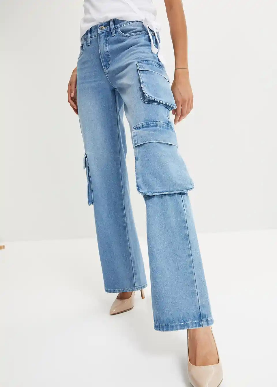 Trendy Wide Leg Jeans mit Cargo-Taschen