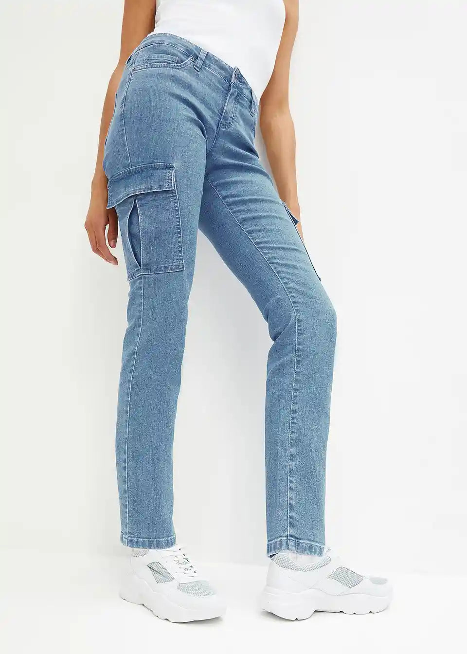 Modische Straight Leg Jeans mit aufgesetzten Cargo-Taschen