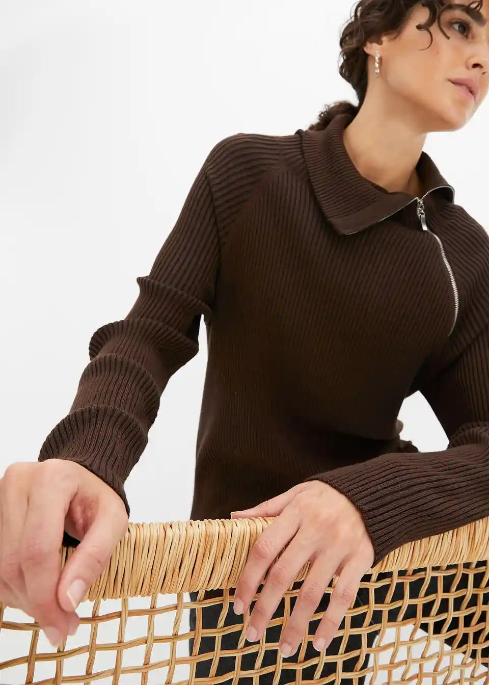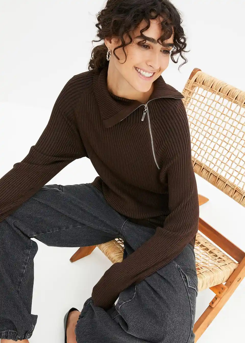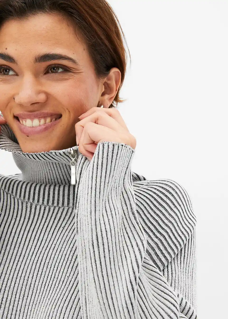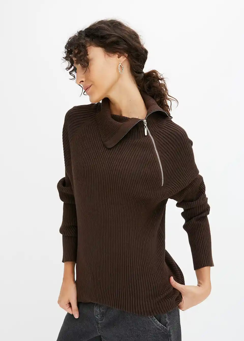 moderner Ripp-Pullover mit Reißverschluss