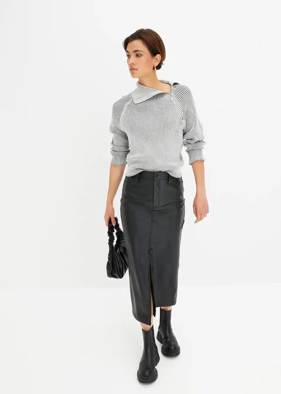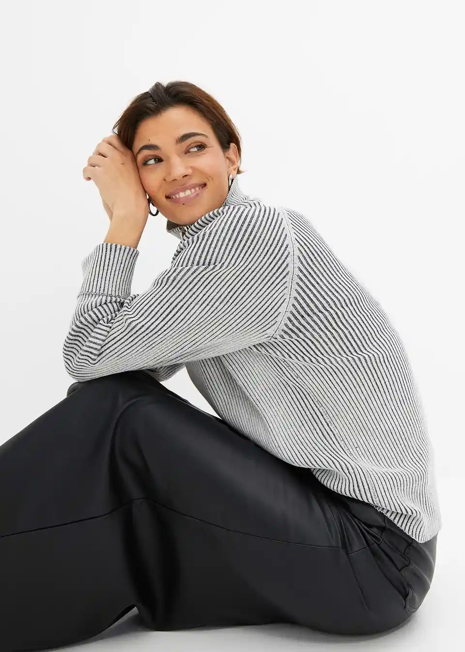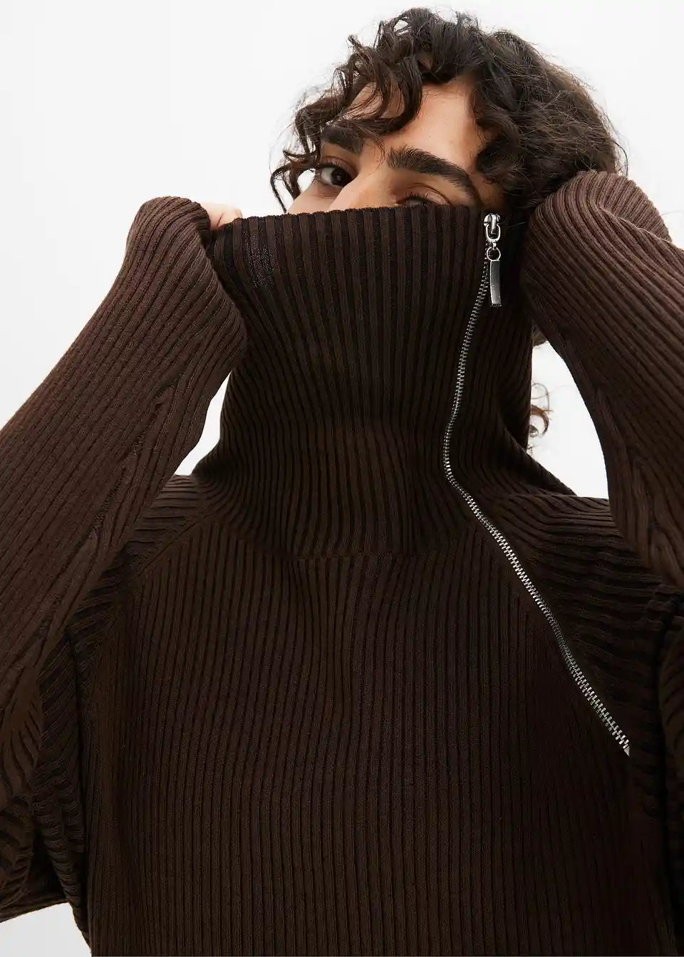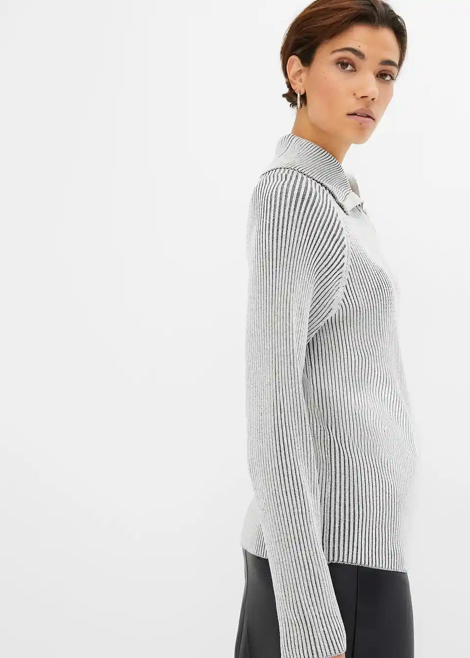 moderner Ripp-Pullover mit Reißverschluss