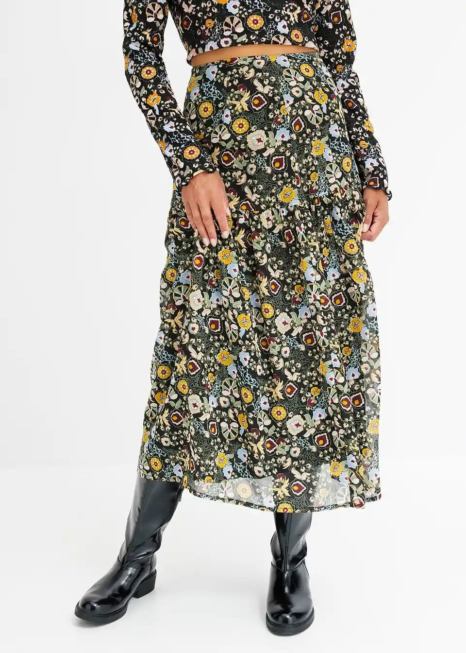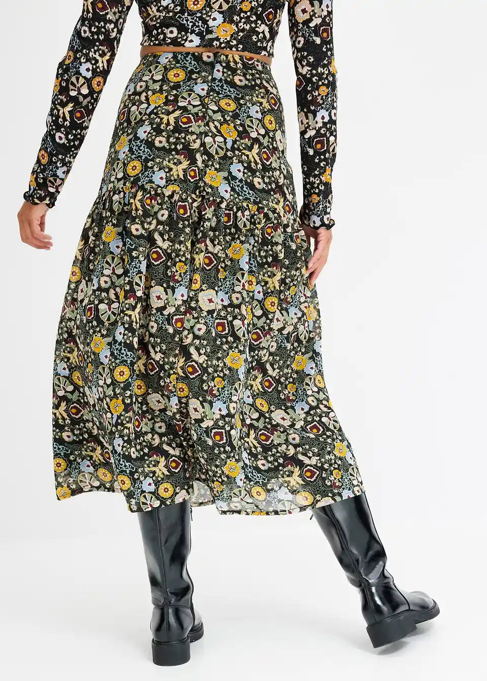 Midirock aus Chiffon mit Volants und floralem Print