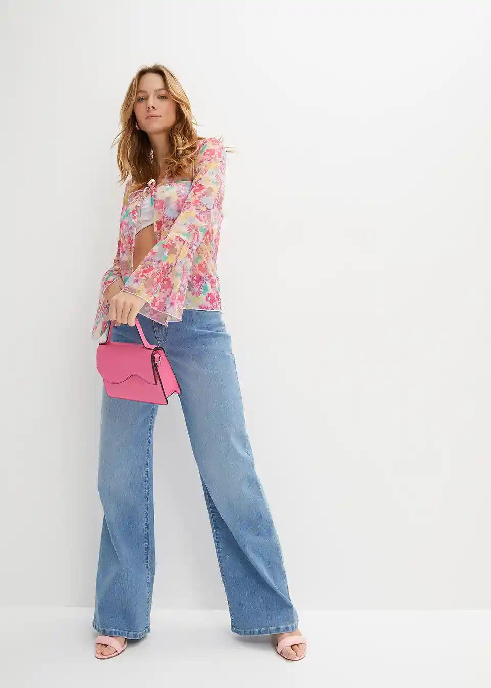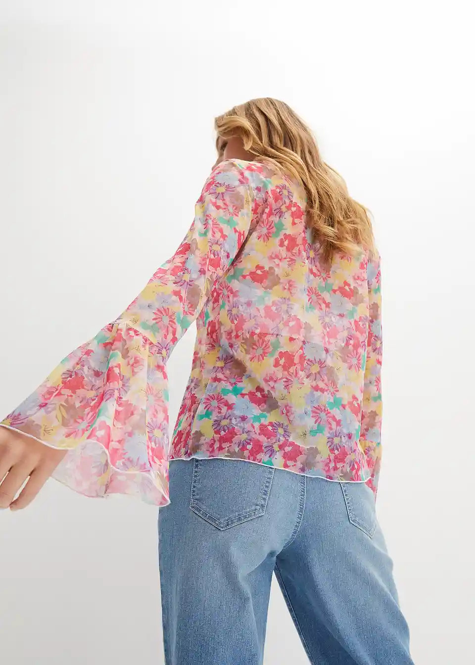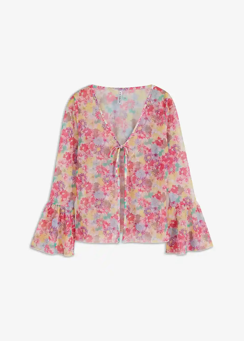 Trendige Netz-Shirtjacke mit Bindedetail und ausgestellten Ärmeln
