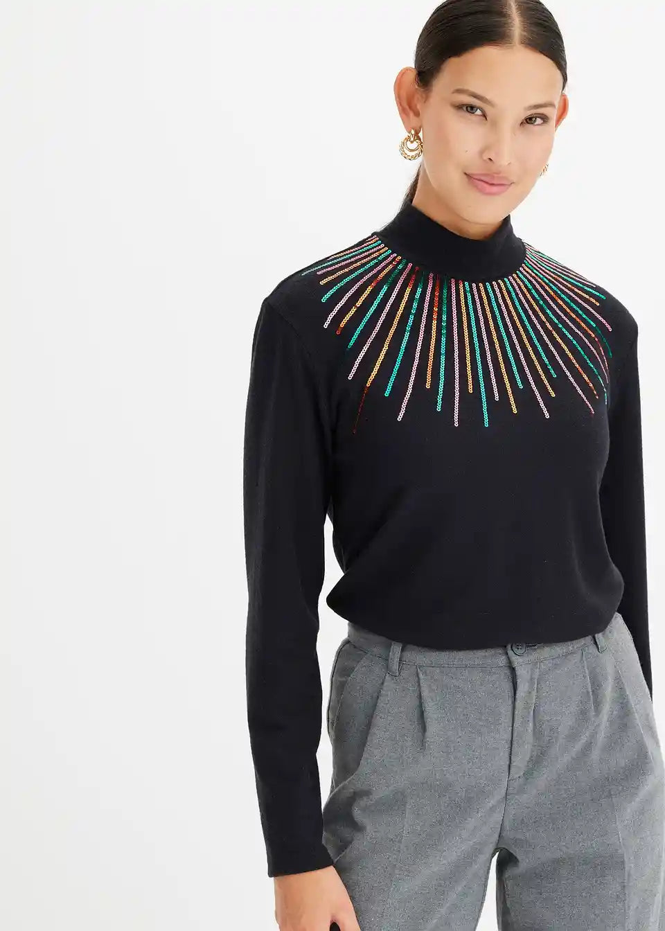 Bequem geschnittenes Langarmshirt mit Paillettendetail