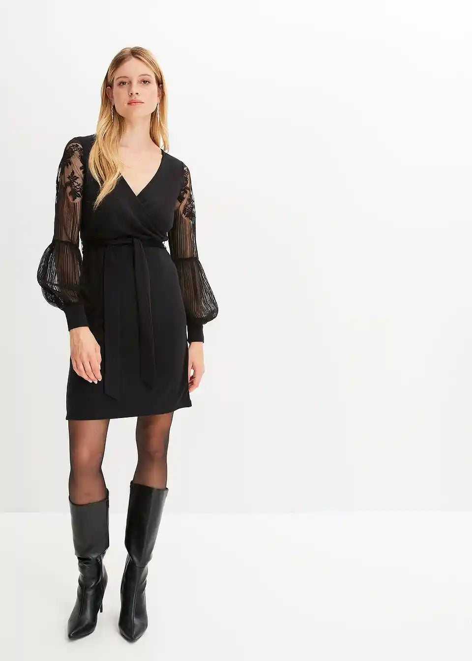 Jerseykleid mit Spitzenärmeln