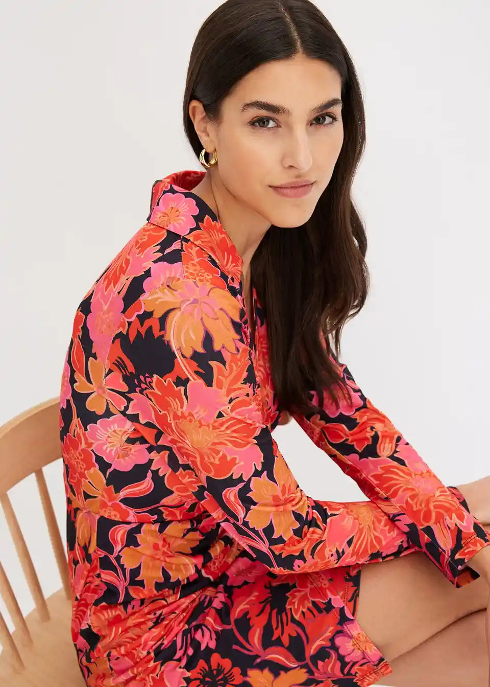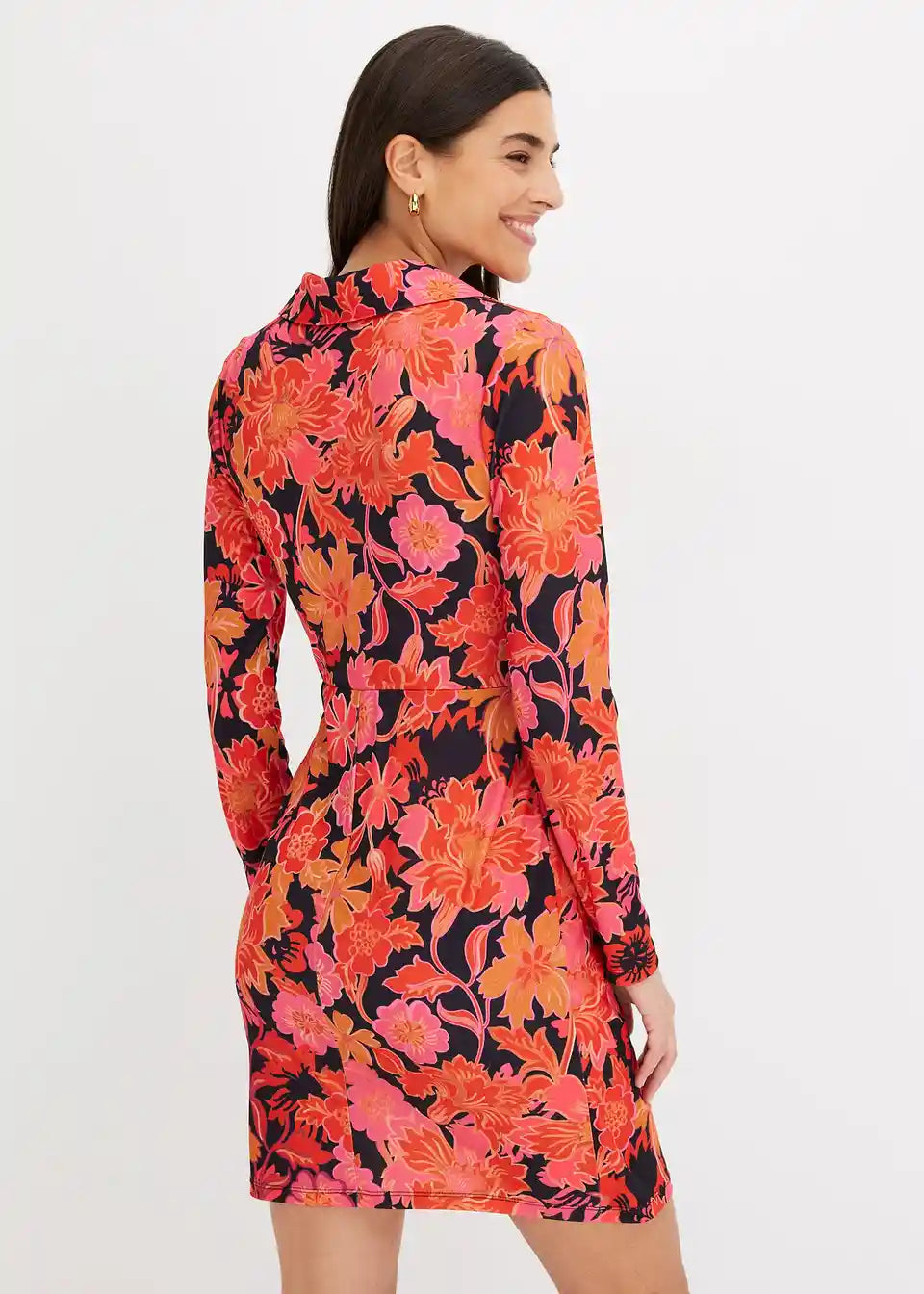 Ein tolles Farbenfrohes Kleid... es ist eher eng und kurz geschnitten. Das Material fühlt sich trotz langen Ärmeln recht angenehm an.