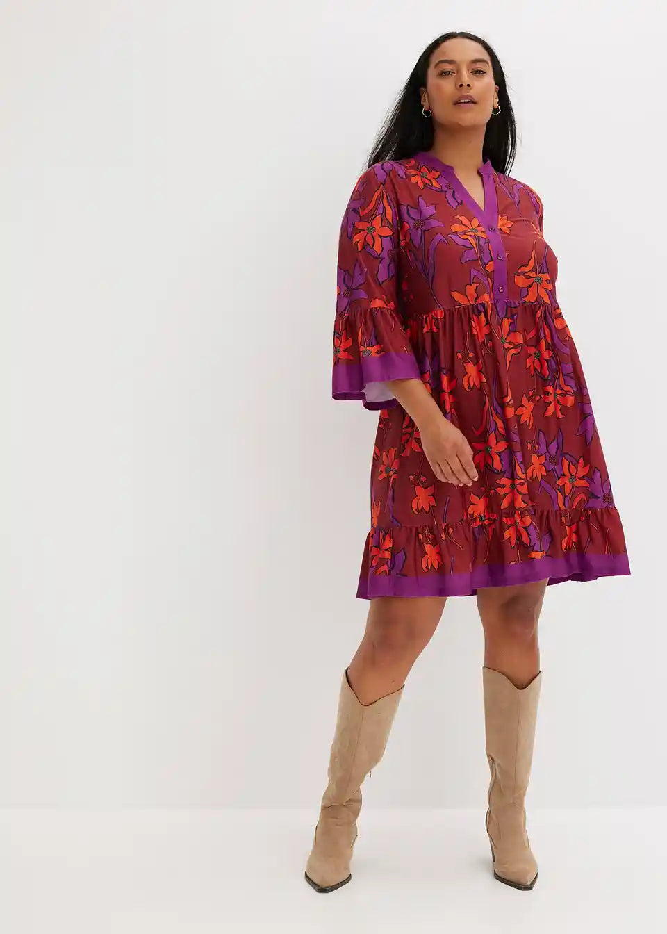 Modernes Kleid mit weitem Rock und Volantärmeln
