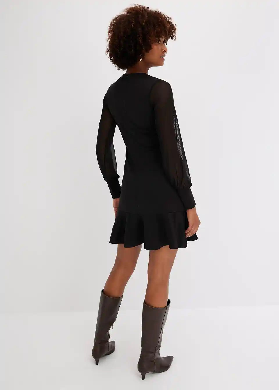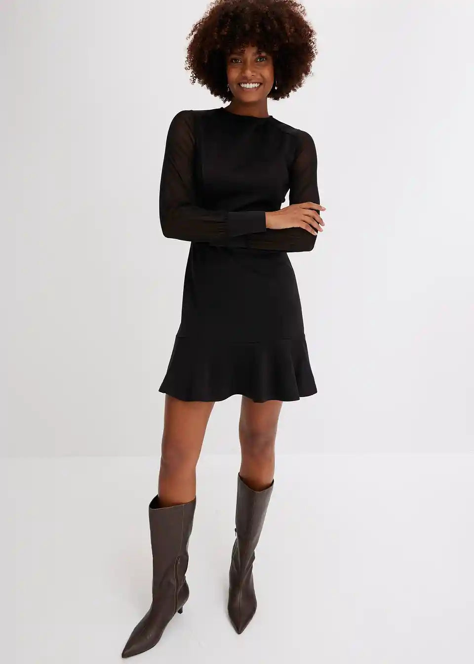 Modern und feminin: Minikleid mit Volant aus fester Scuba Qualität und luftigen Mesh-Ärmel.
