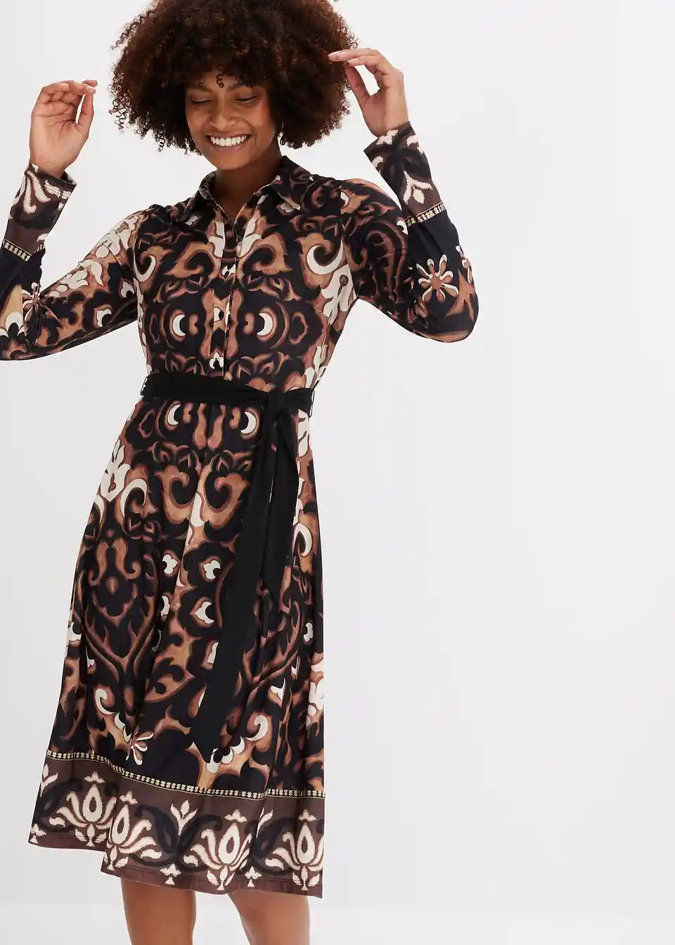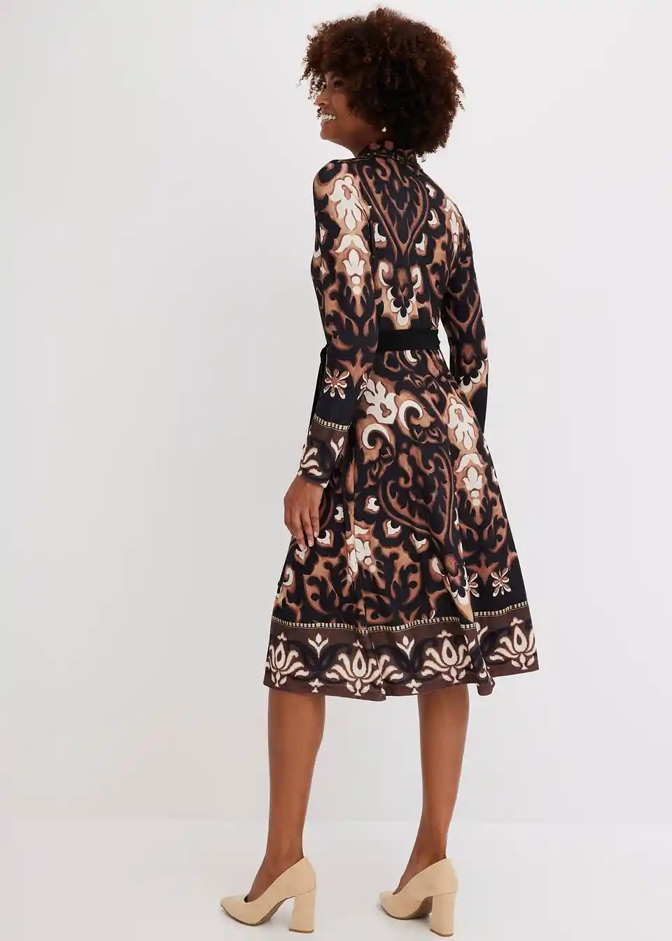 Modern und feminin: Jersey-Kleid mit Stehkragen und Bindedetail