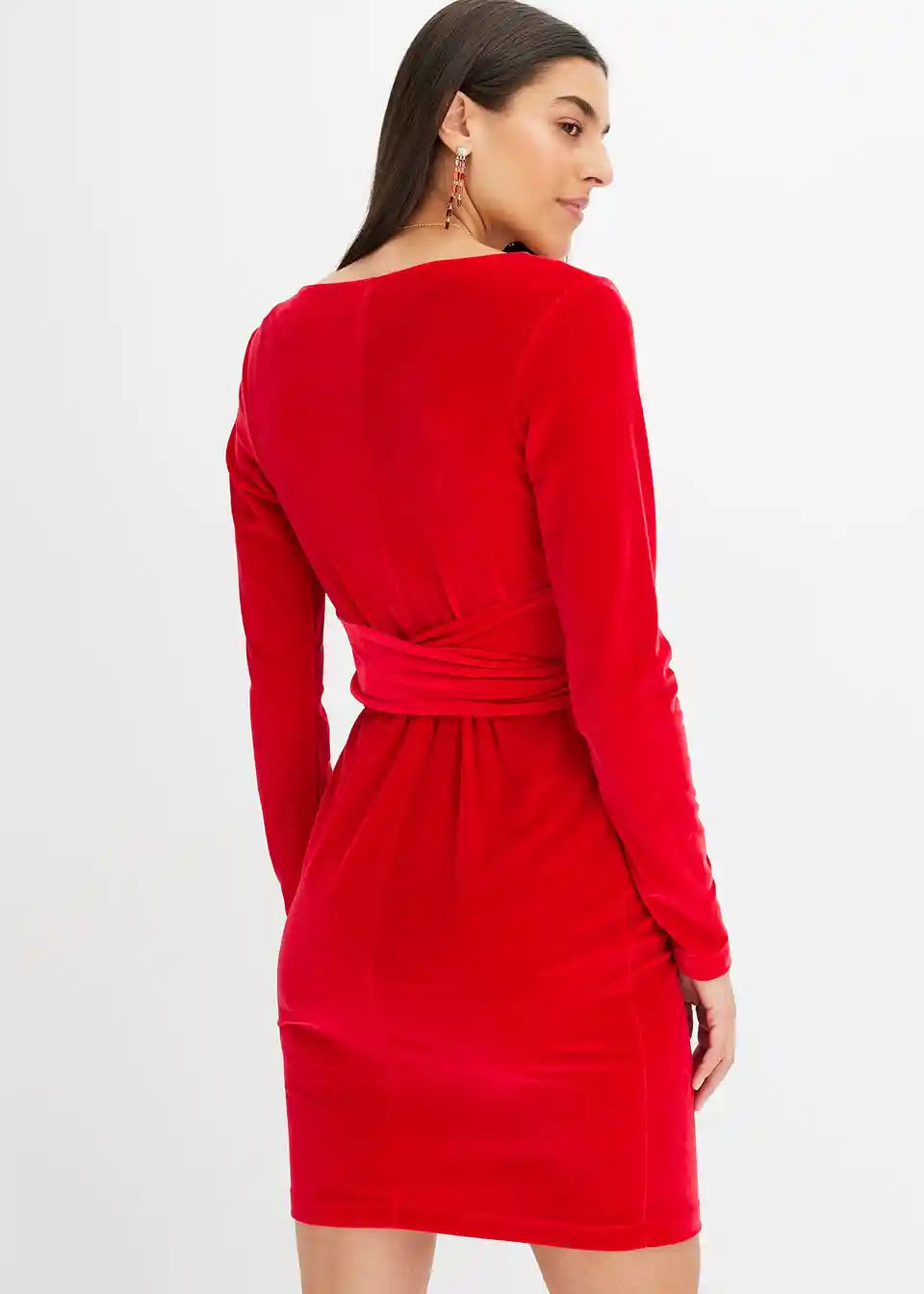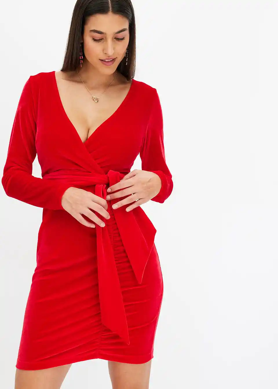 Modern und feminin: Minikleid aus weichem Samt in Wickelt-Optik mit Drapierung