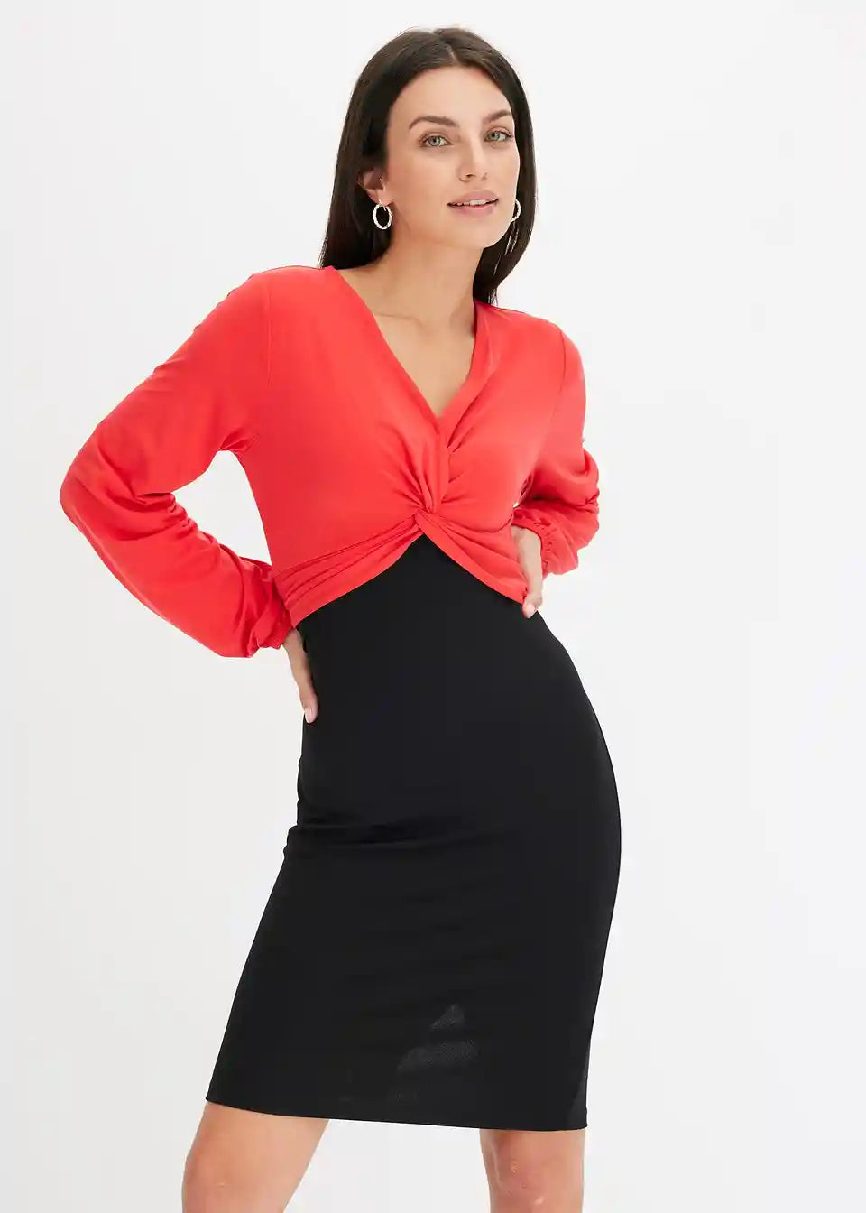 Modern und feminin: Minikleid in 2-Teile-Optik mit Knotendetail.