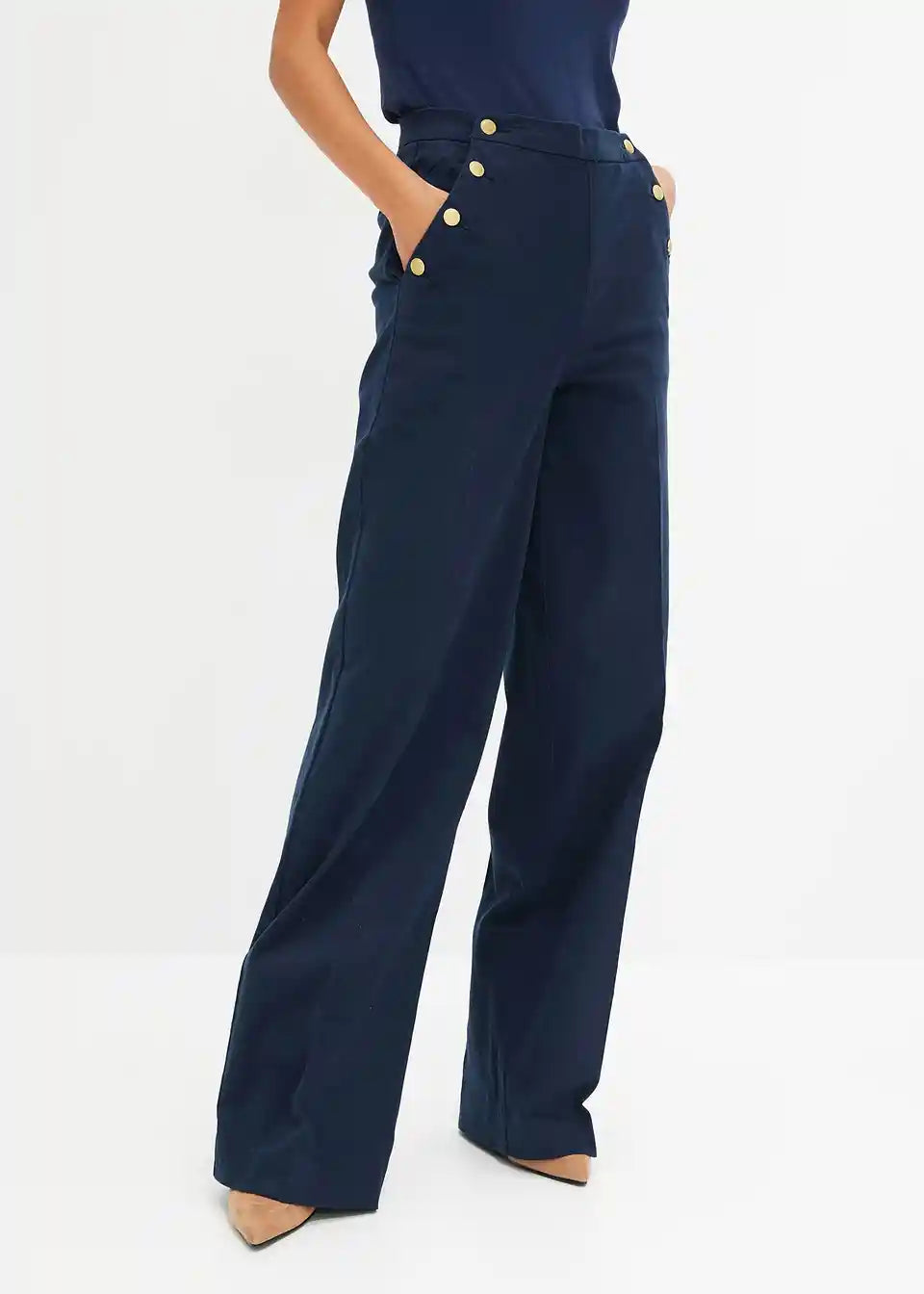 Wideleg-Hose mit Goldknöpfen