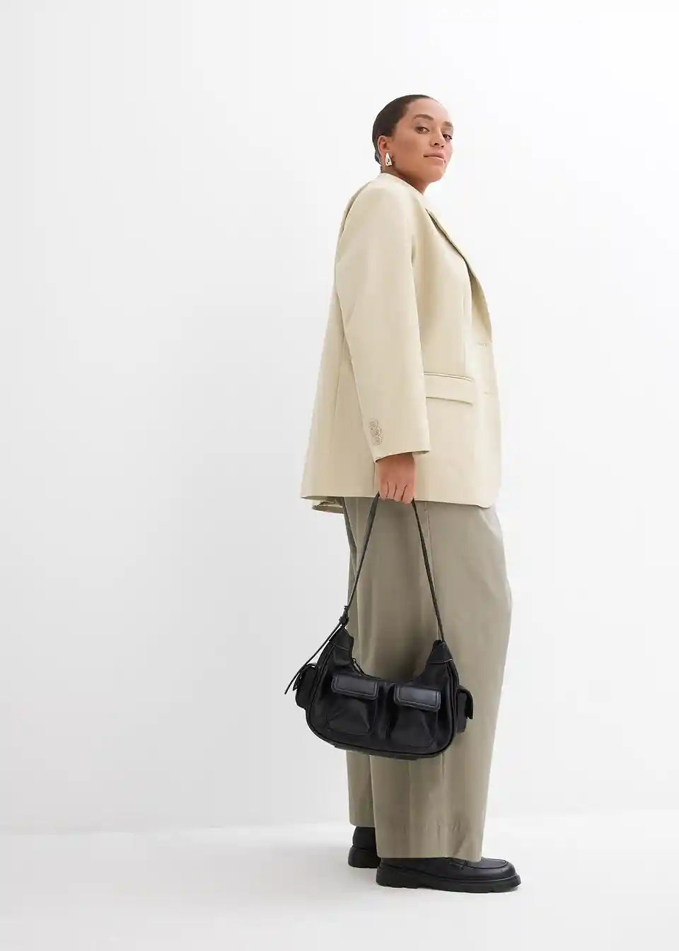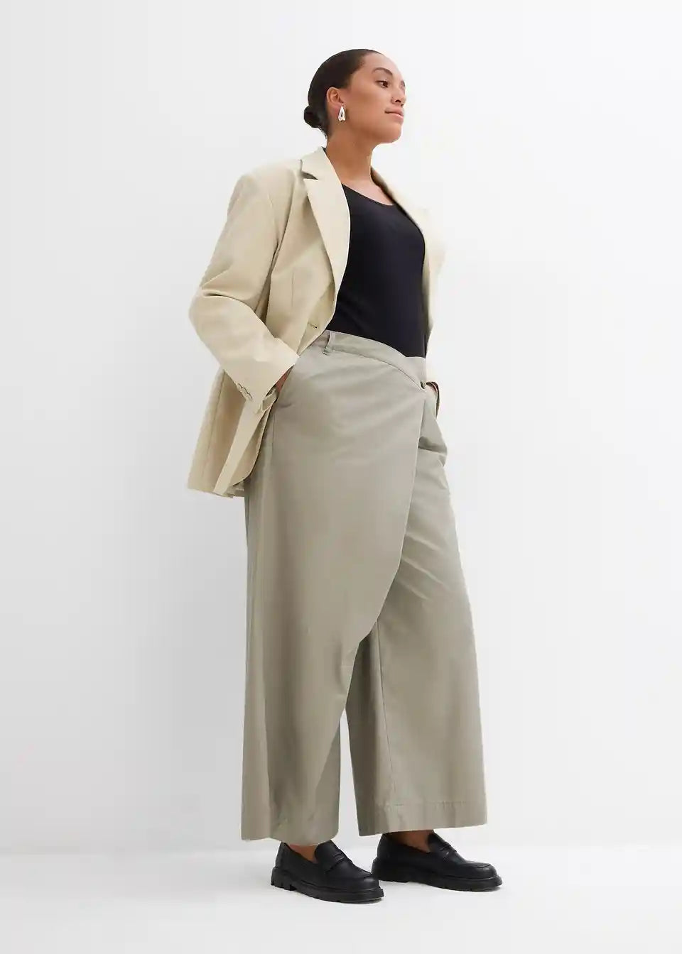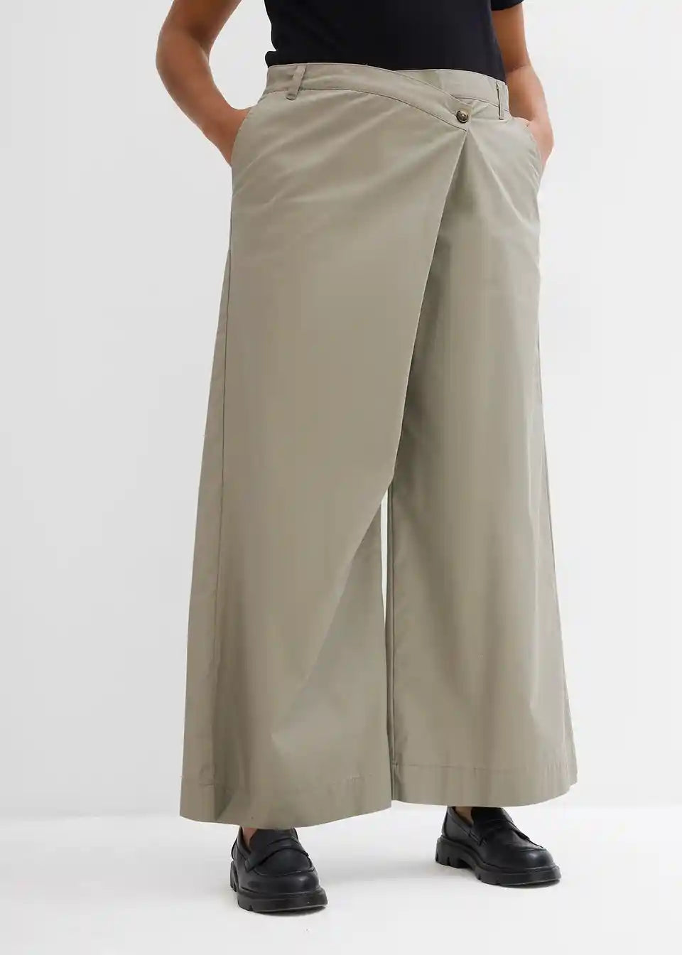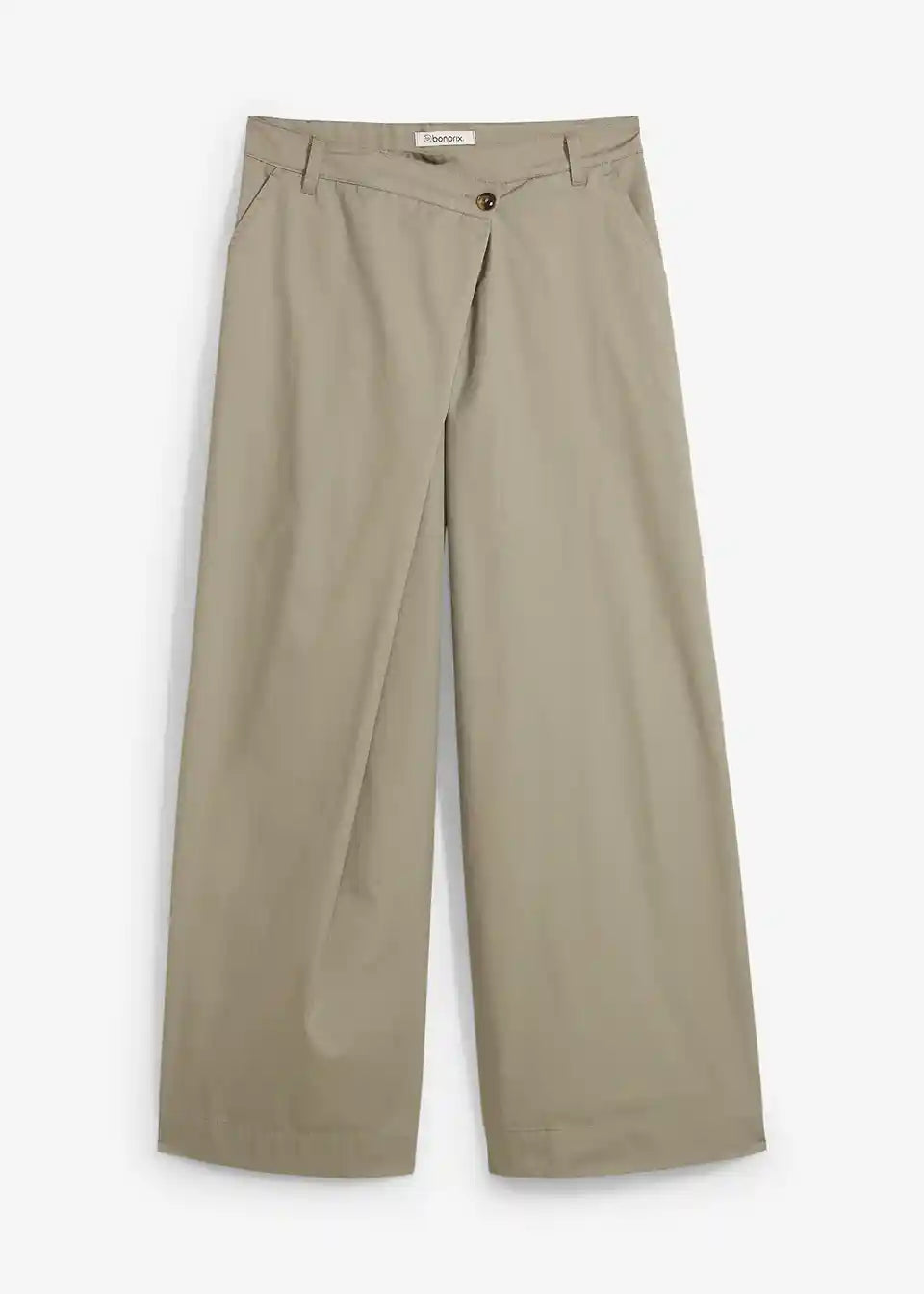 Marlenehose mit weitem Bein und asymmetrischem Knopfverschluss