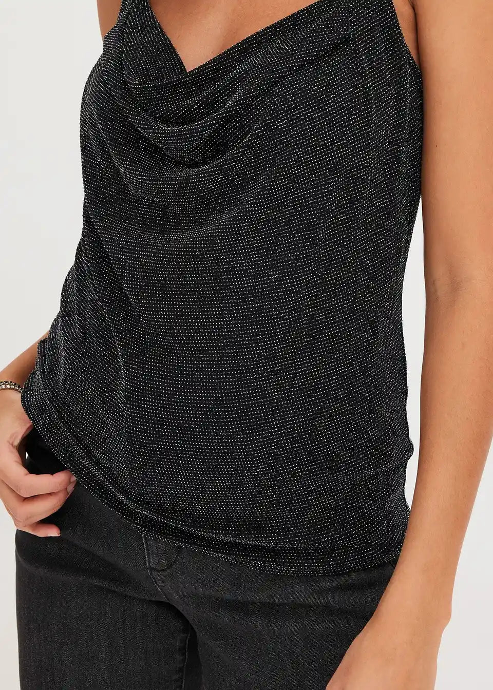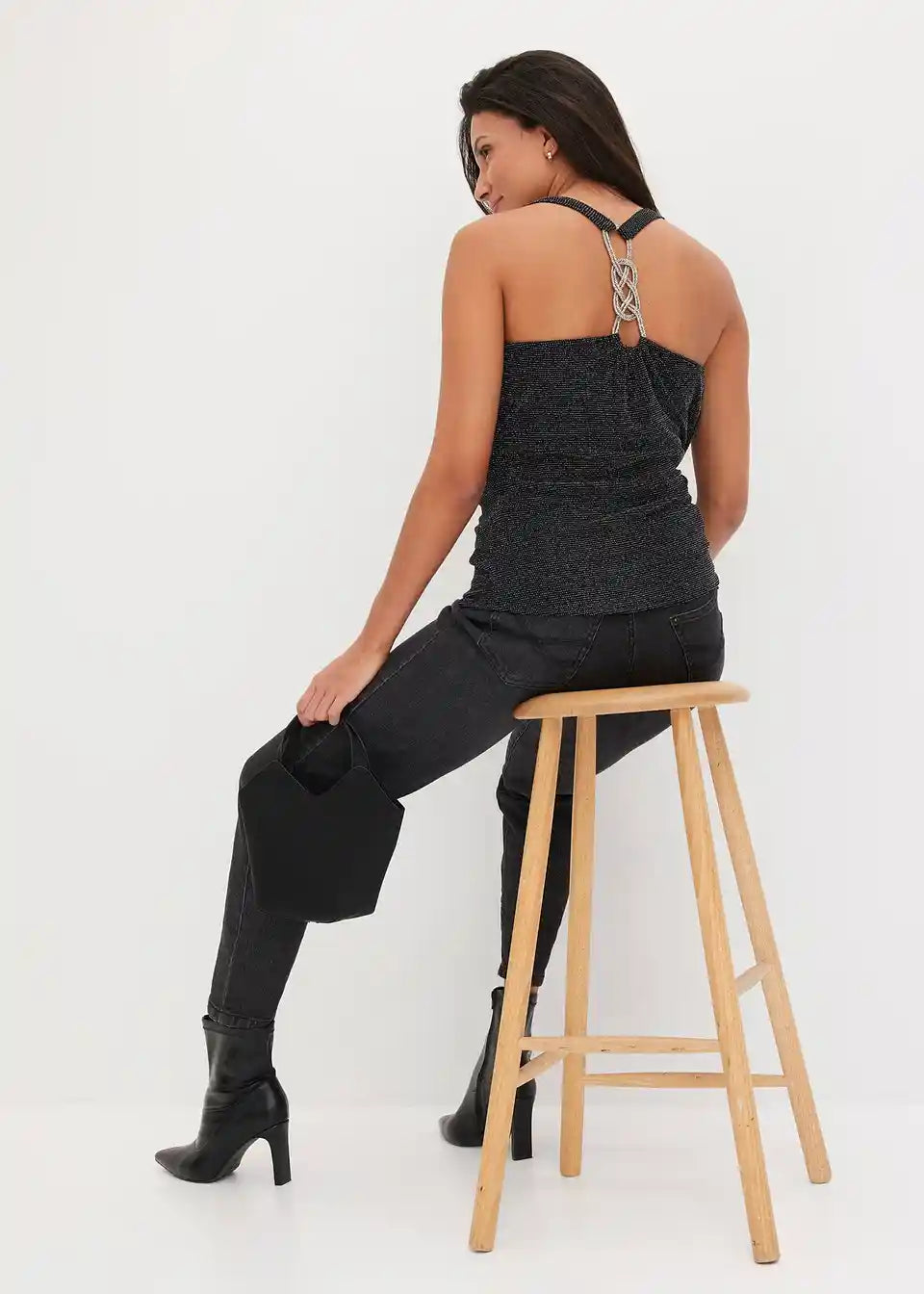Stylisches Top mit tollem Glitzer-Knoten-Accessoire am Rückenausschnitt