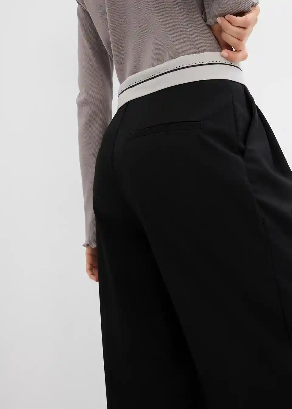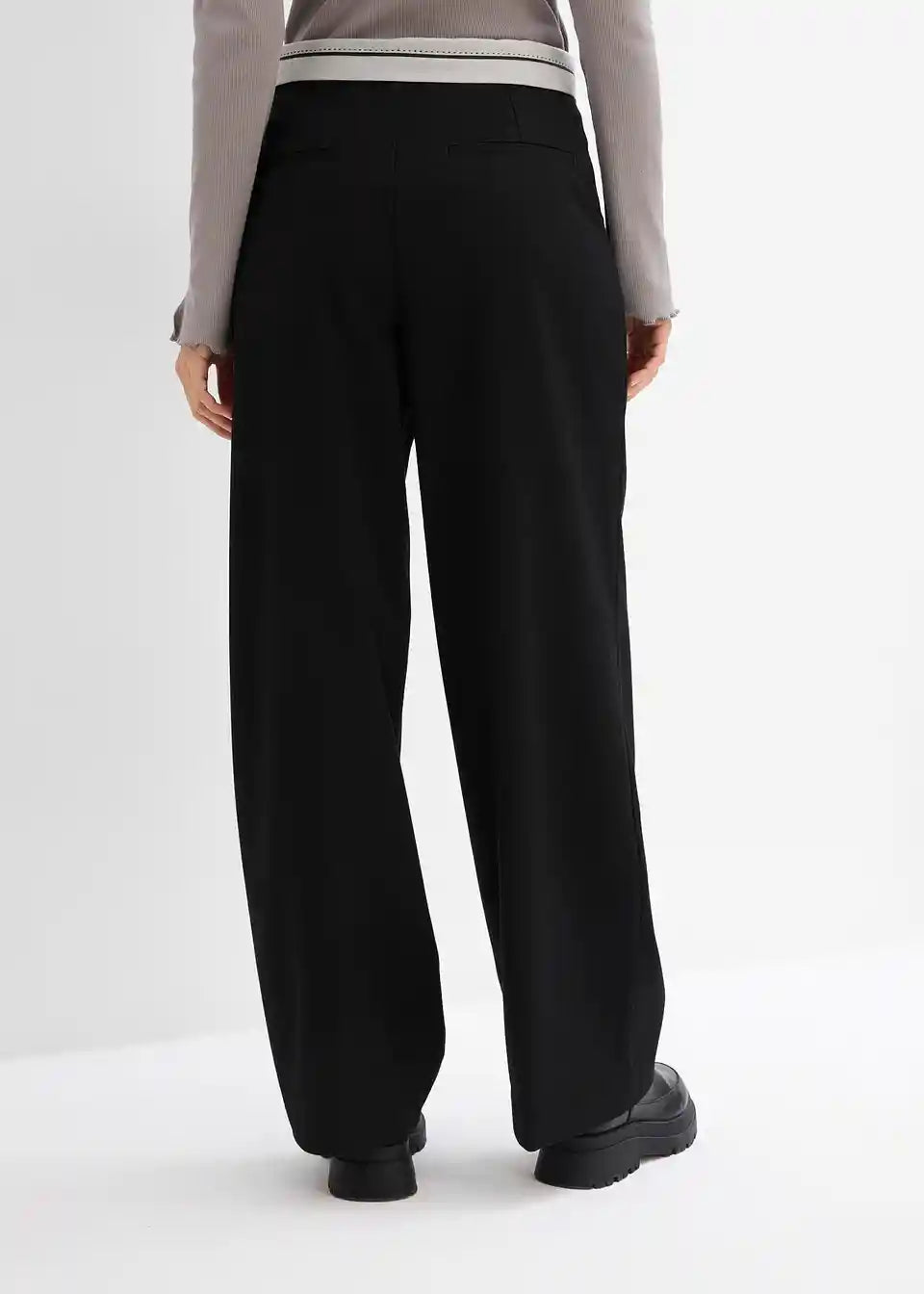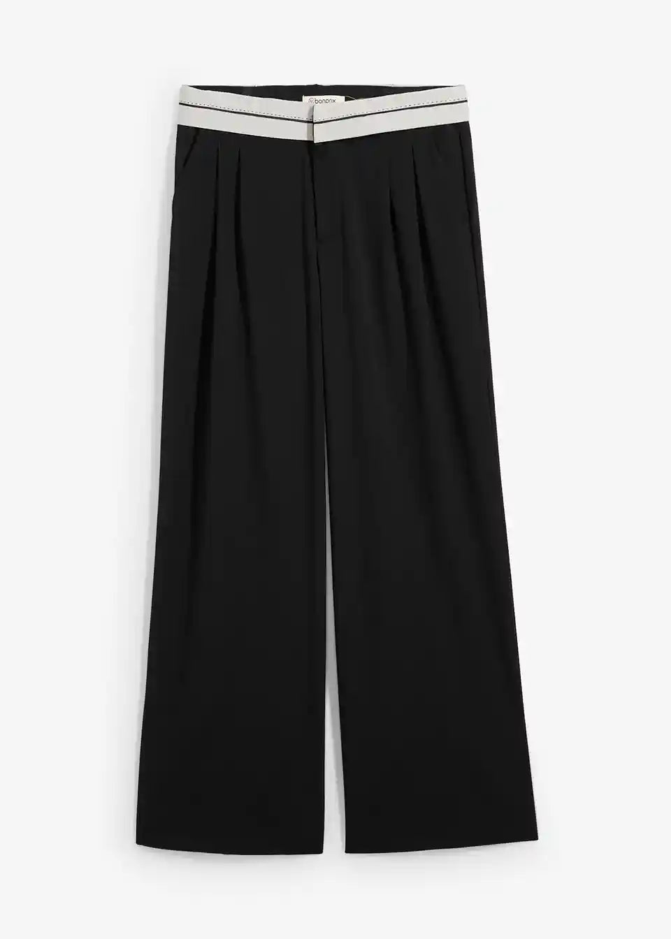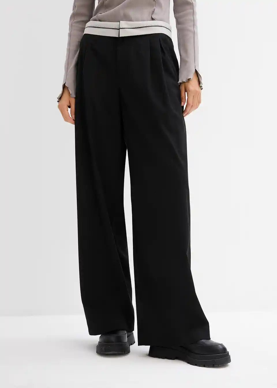 Fließende Bundfaltenhose mit Kontrastbund und weitem Bein