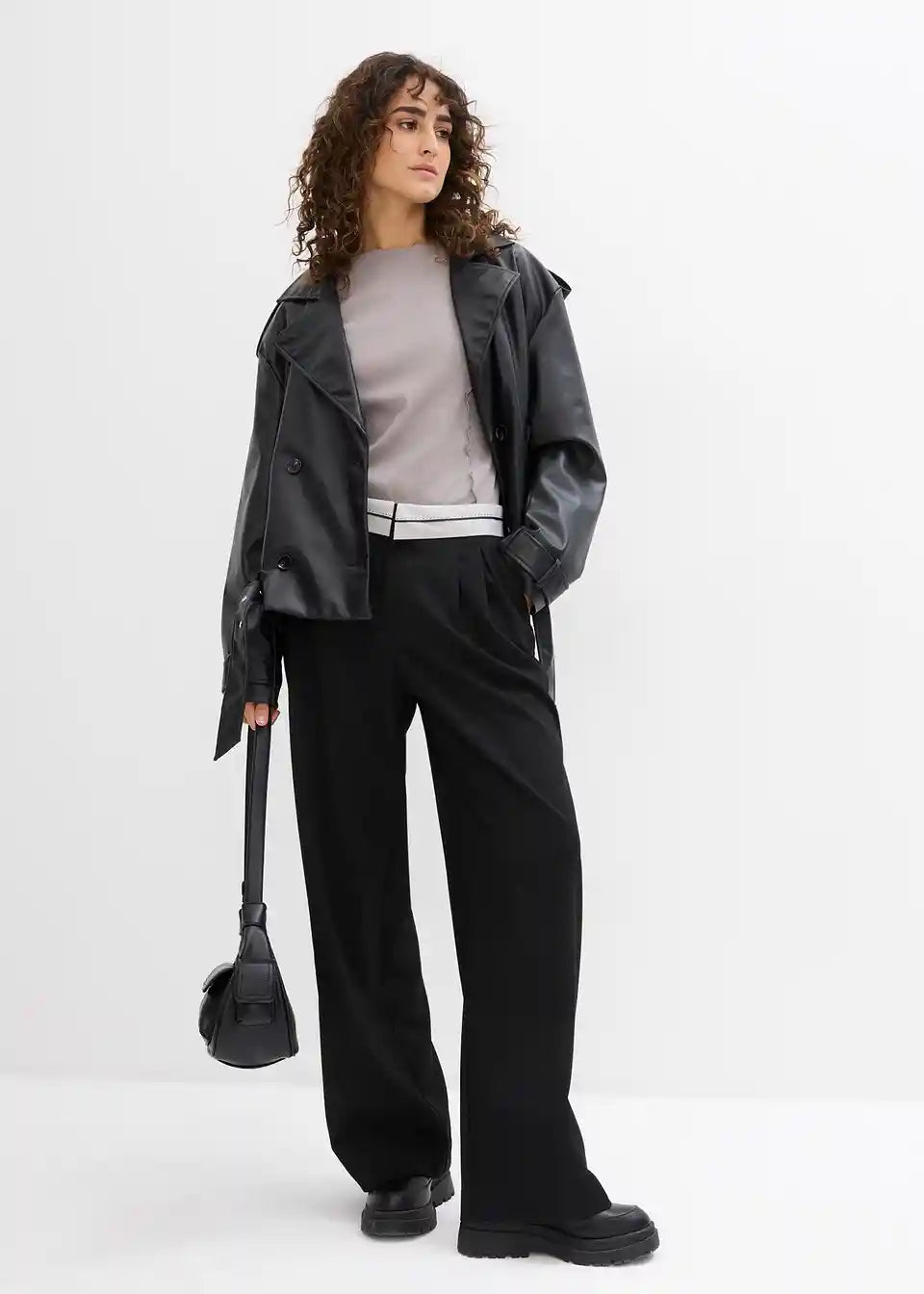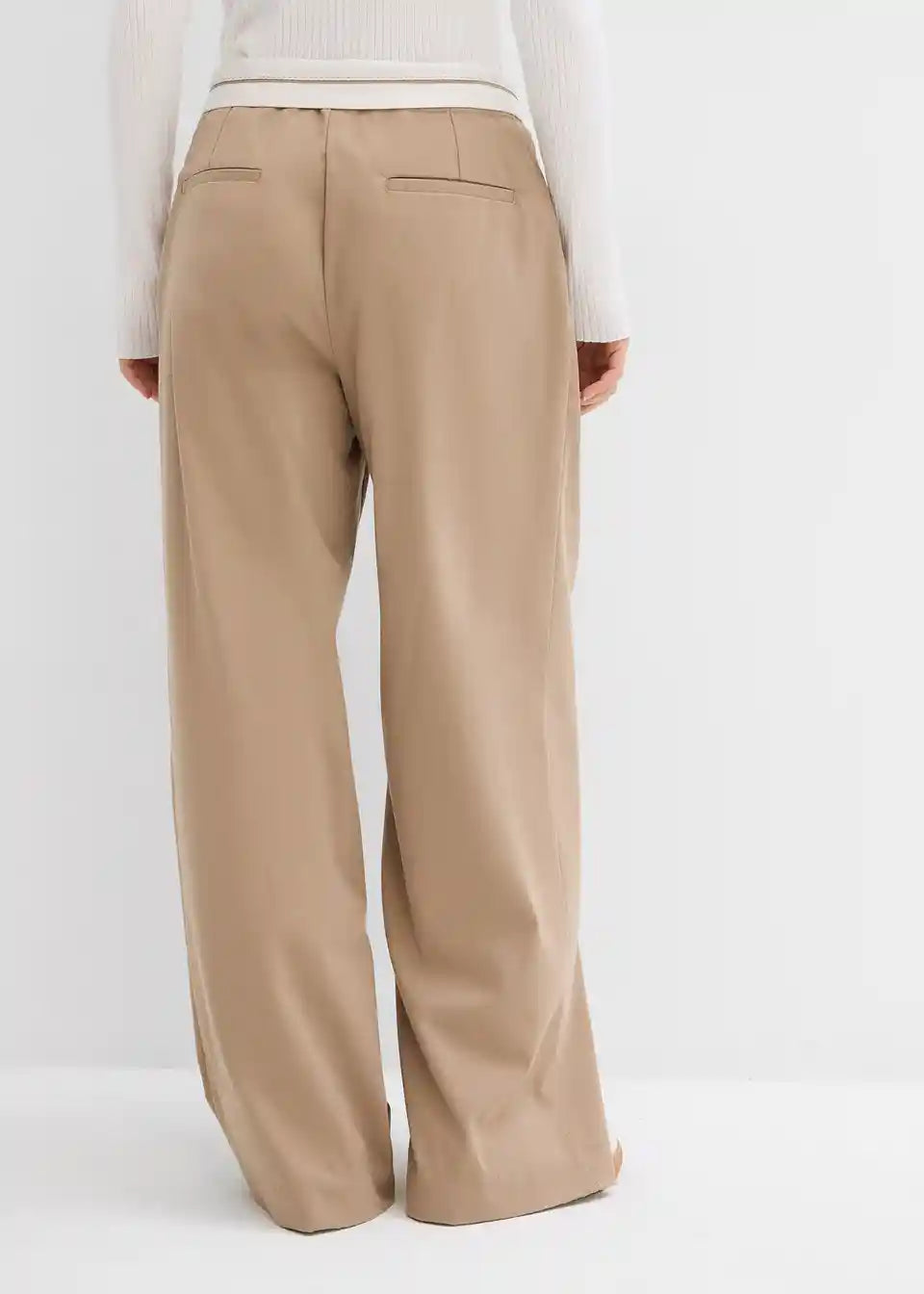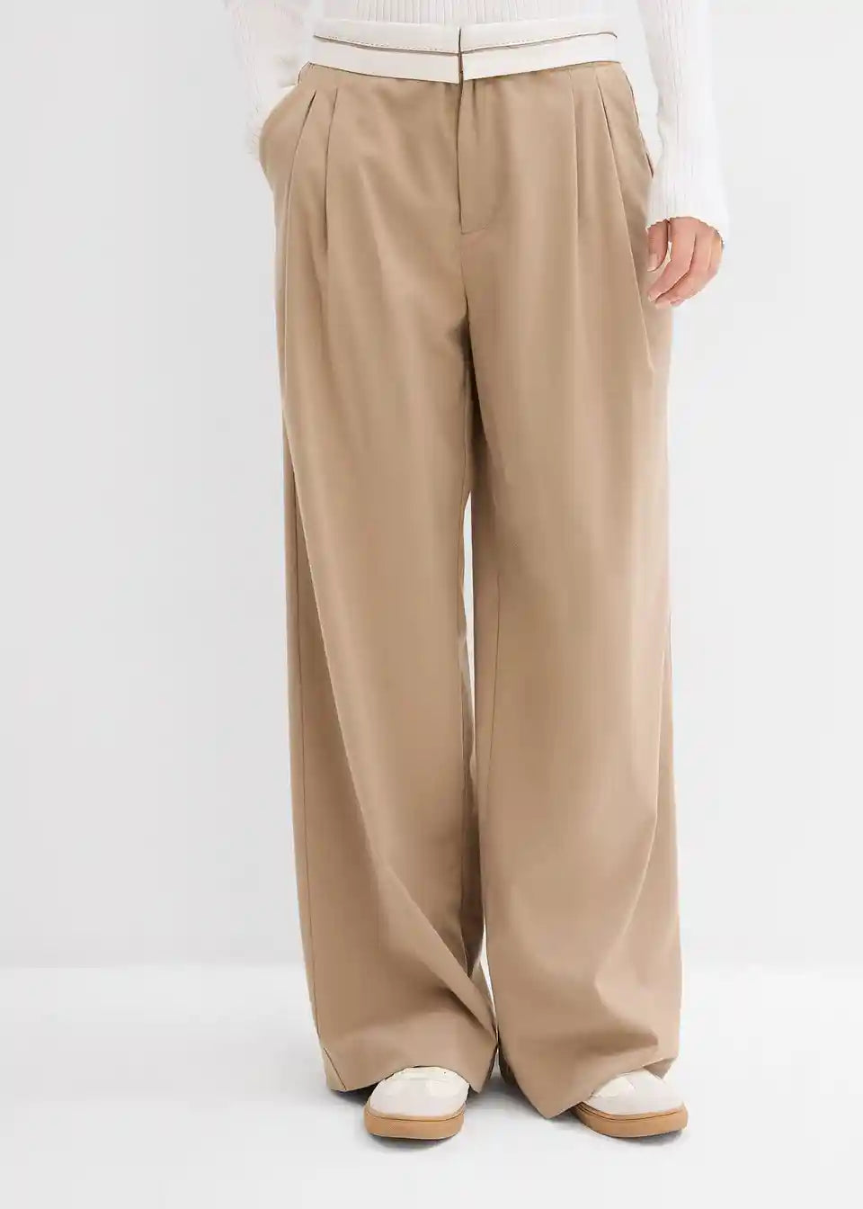 Fließende Bundfaltenhose mit Kontrastbund und weitem Bein