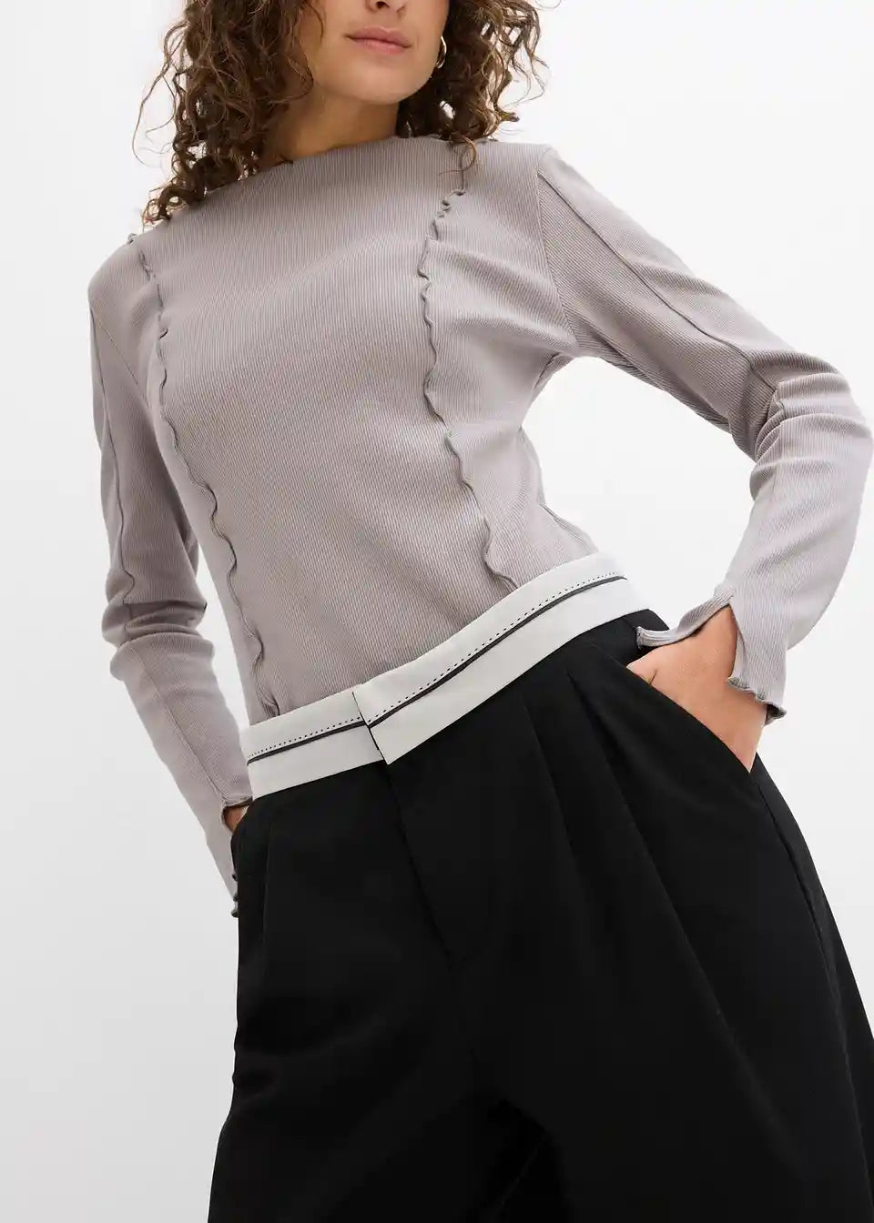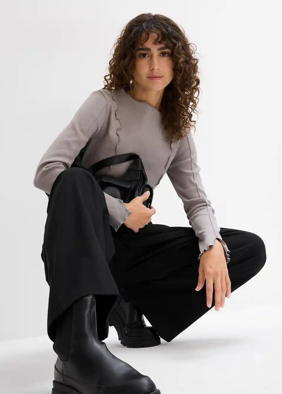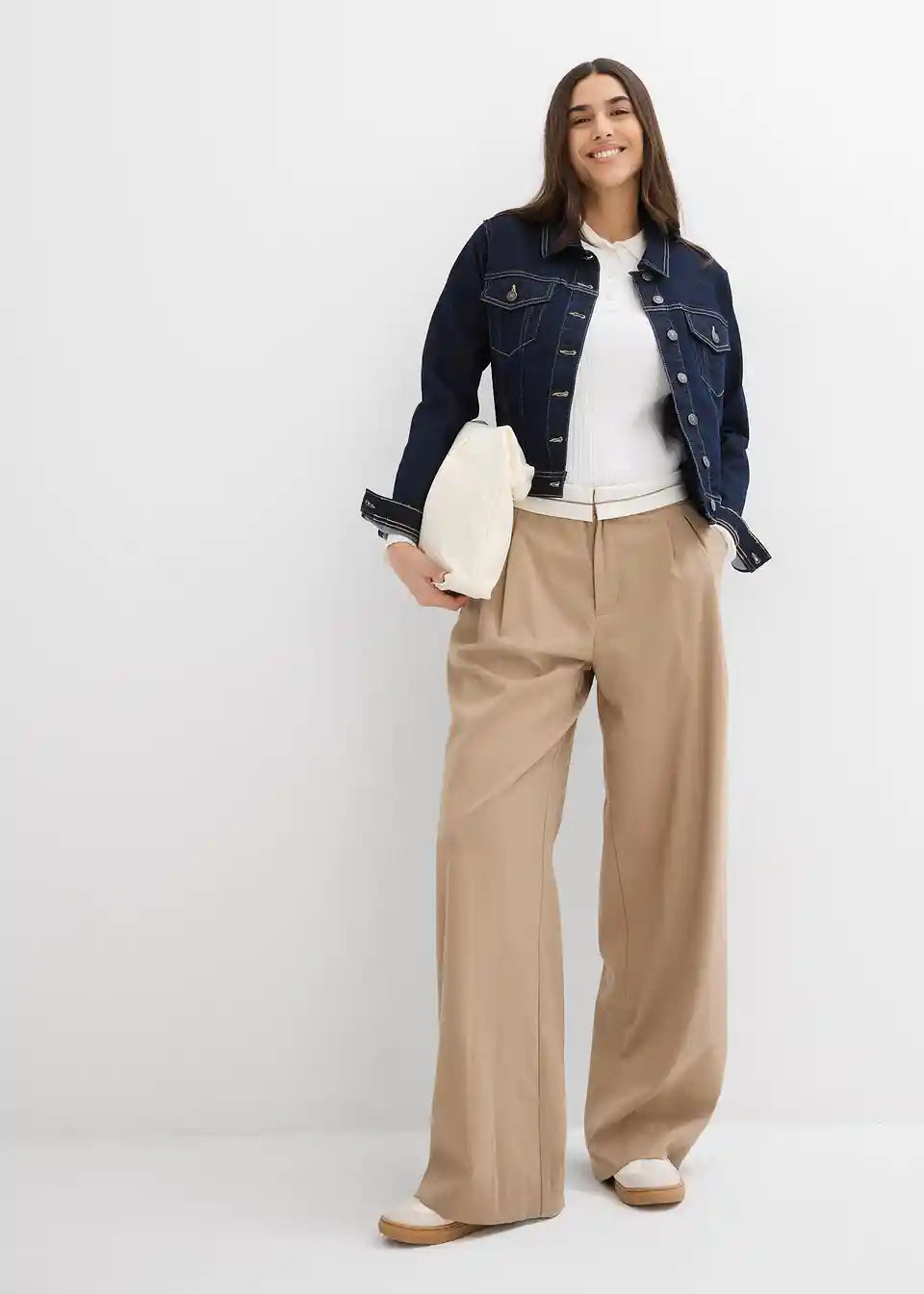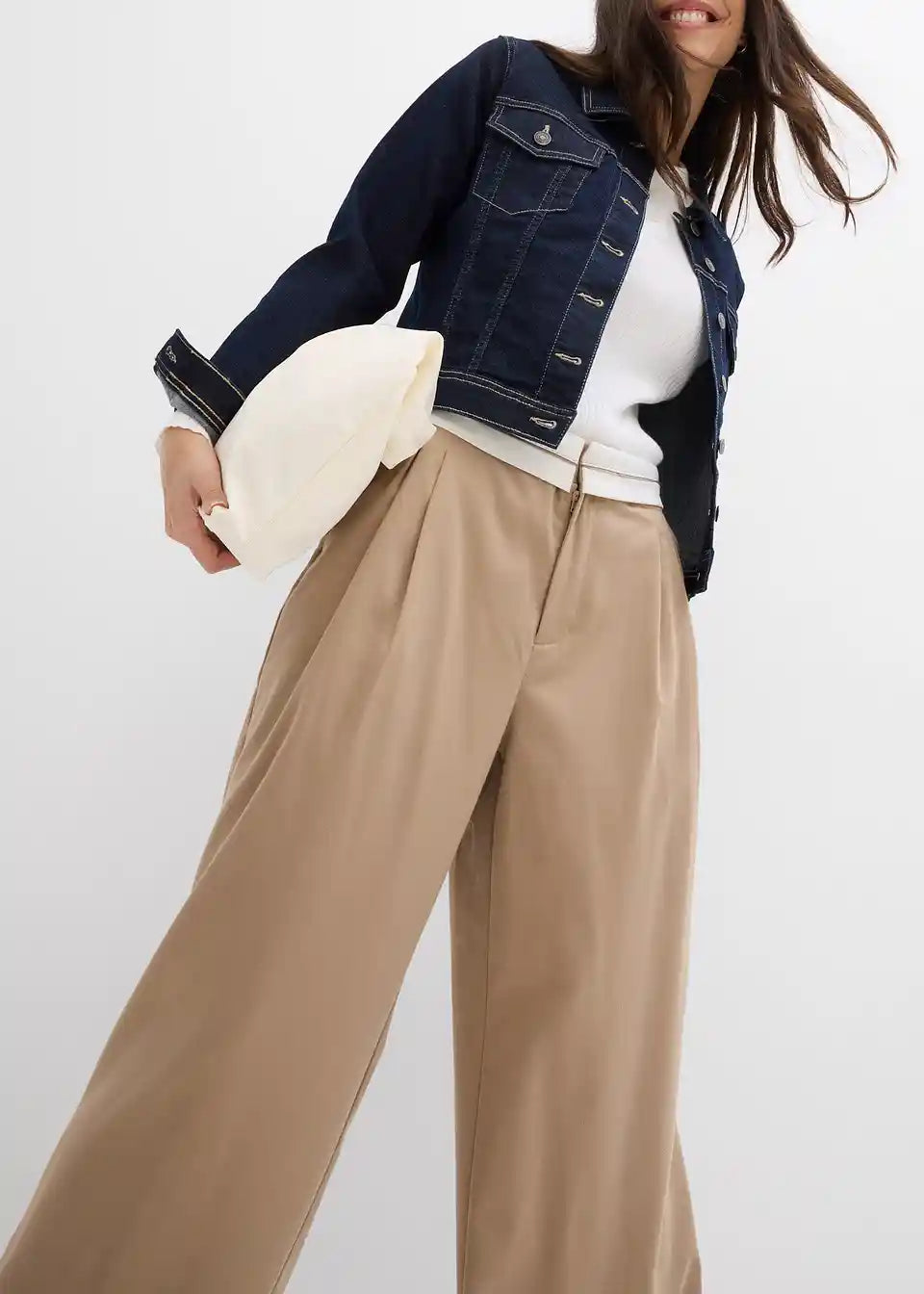 Fließende Bundfaltenhose mit Kontrastbund und weitem Bein