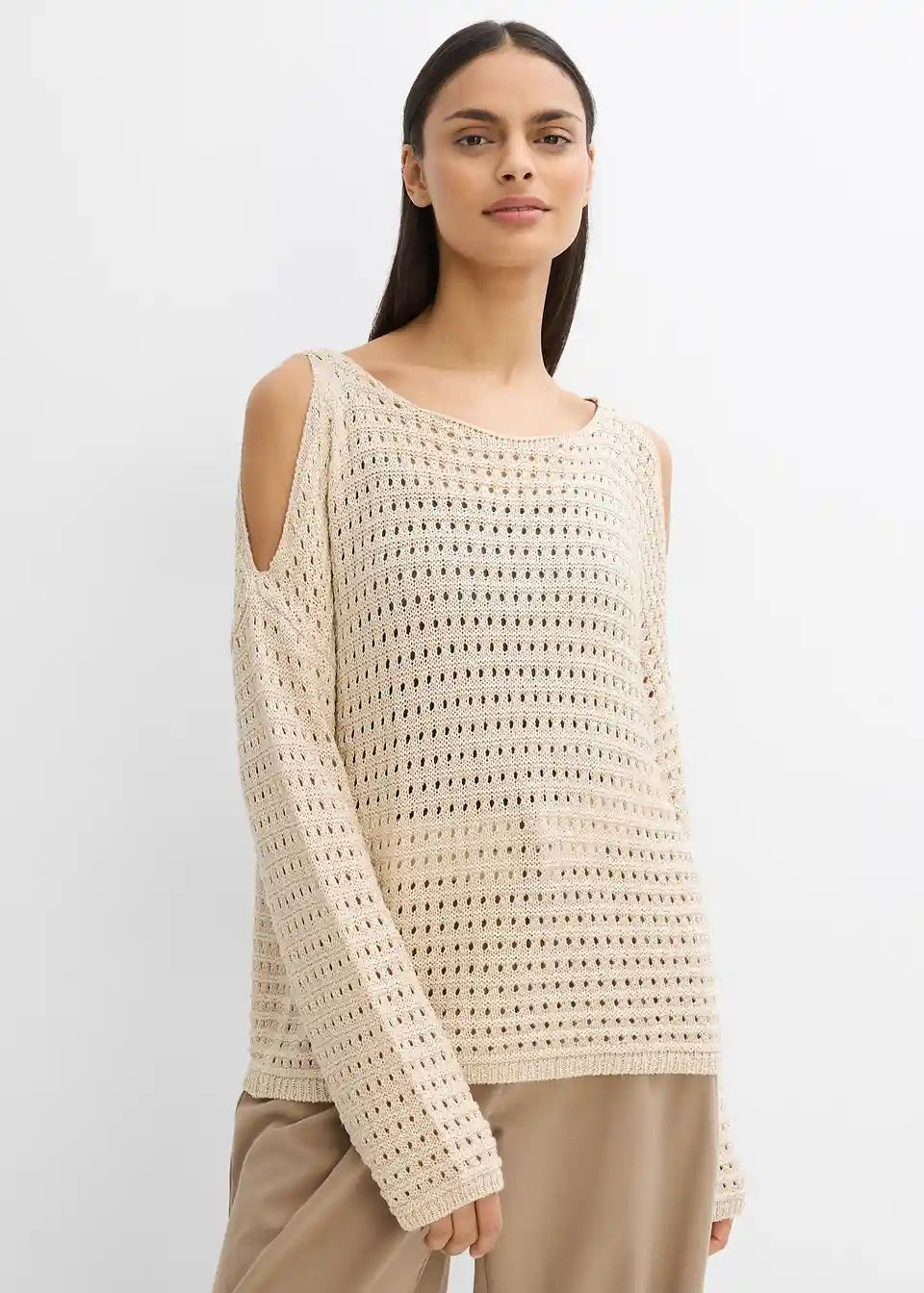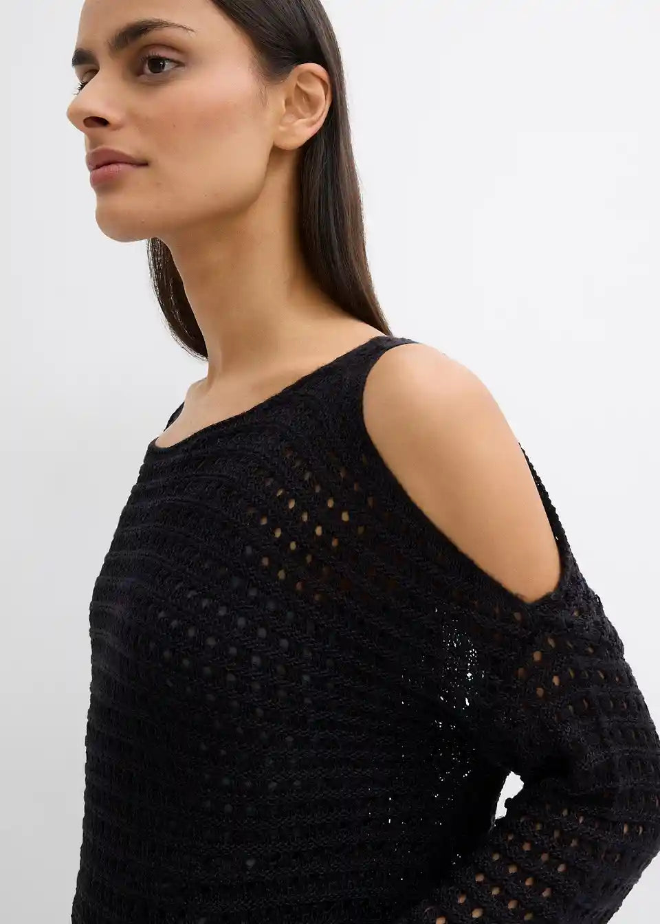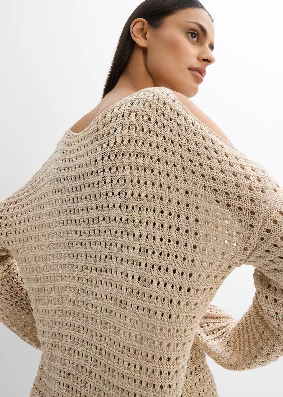 Modischer Boxy-Pullover aus Lochspitze mit Cut-Outs