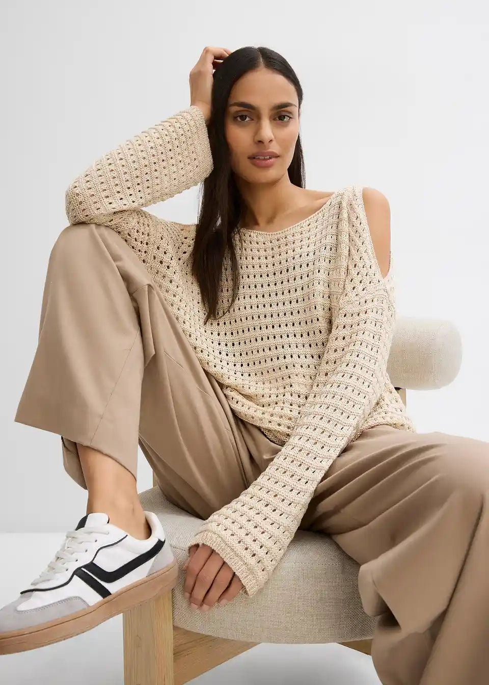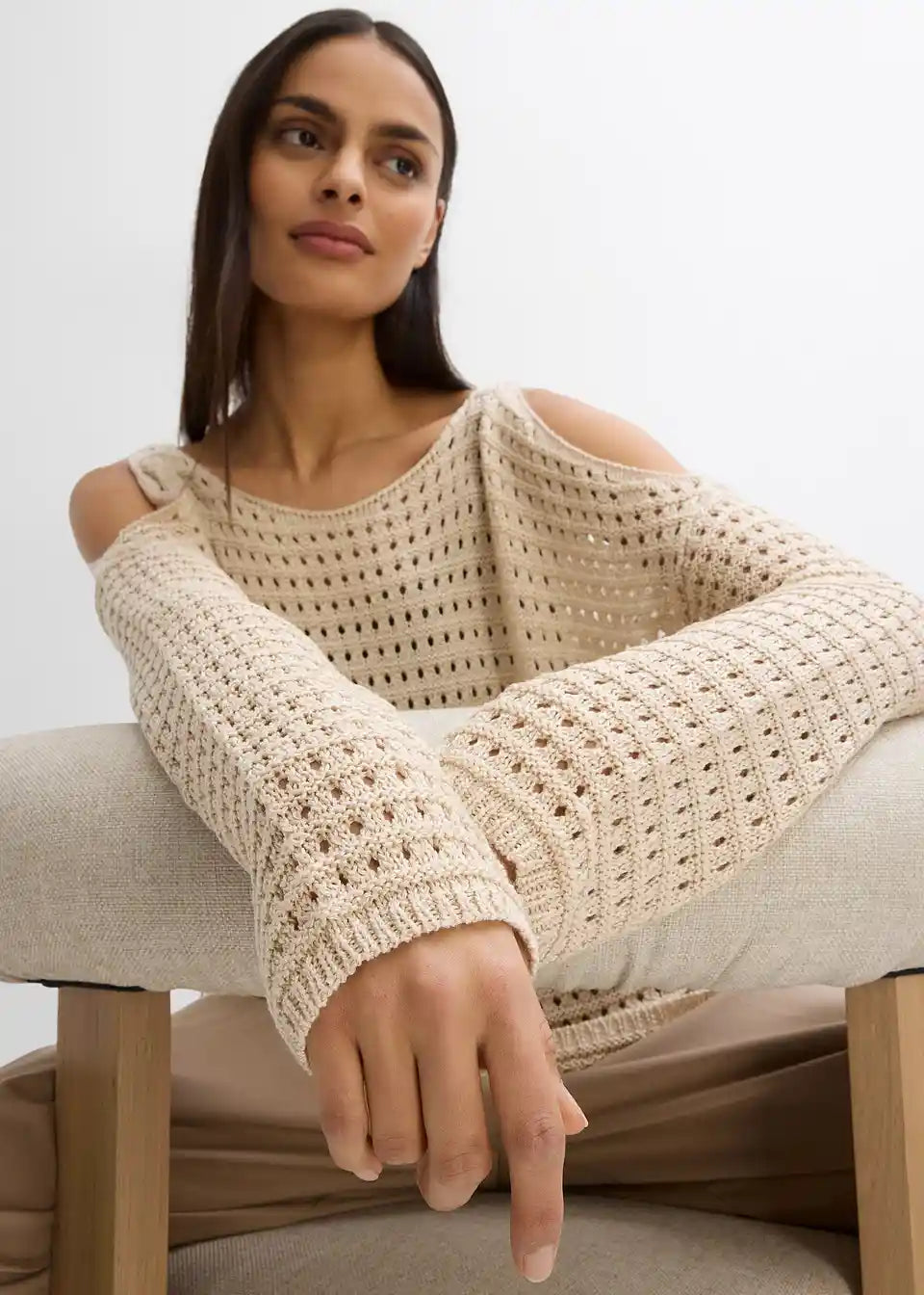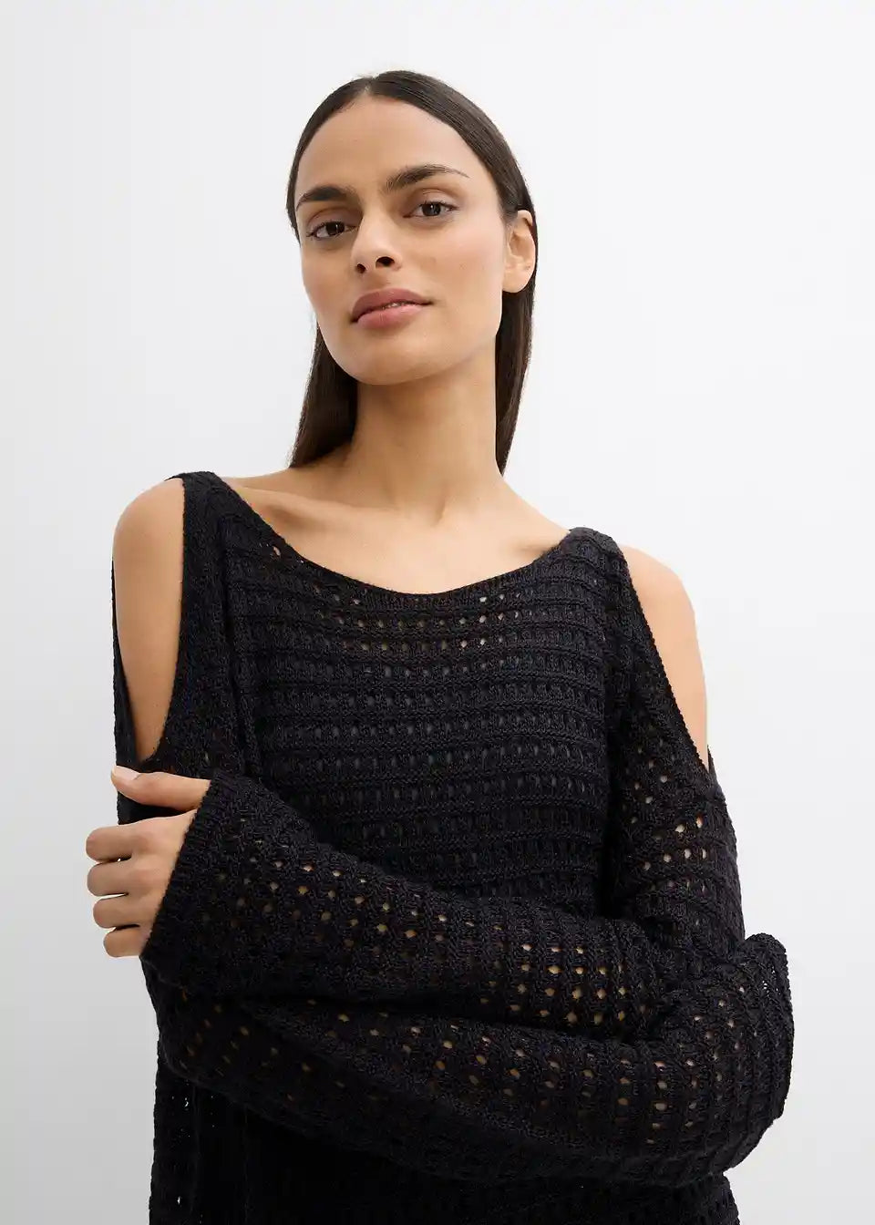 Modischer Boxy-Pullover aus Lochspitze mit Cut-Outs