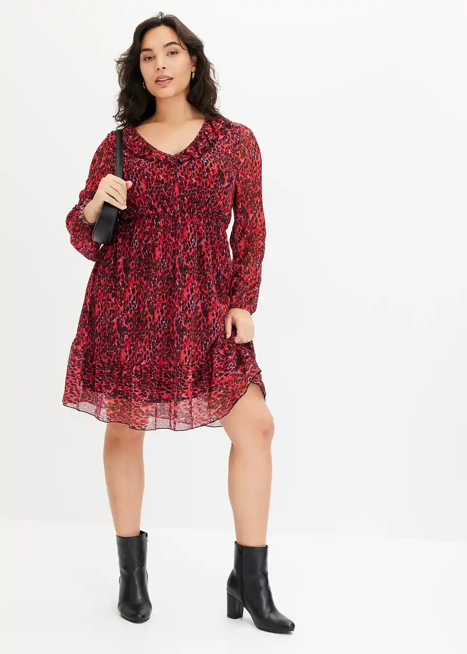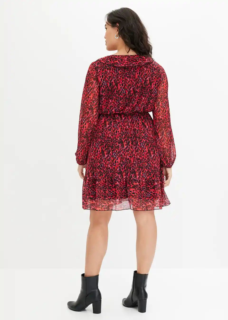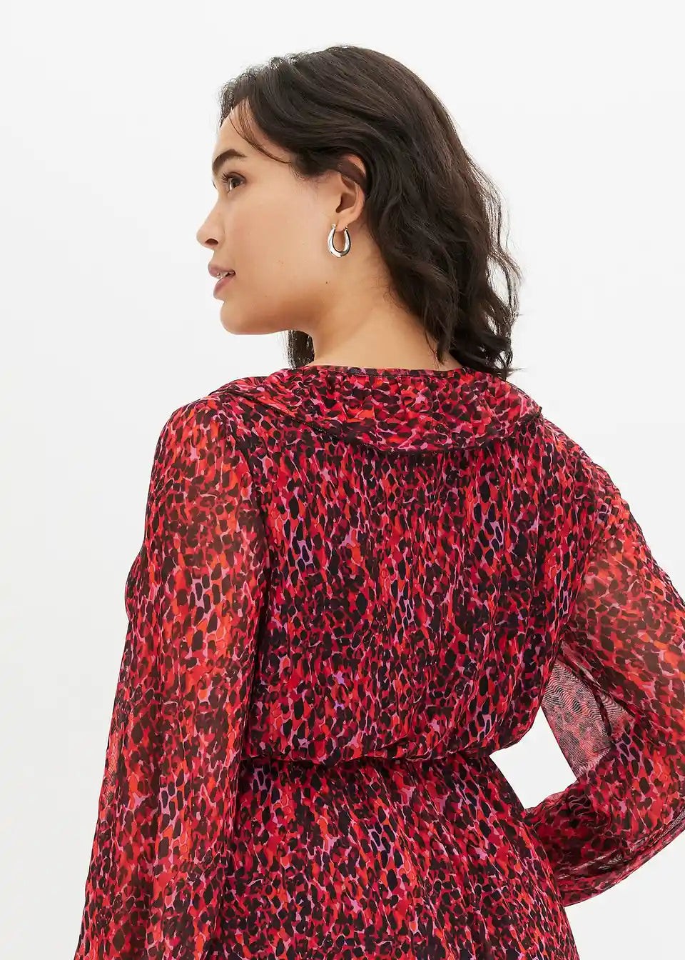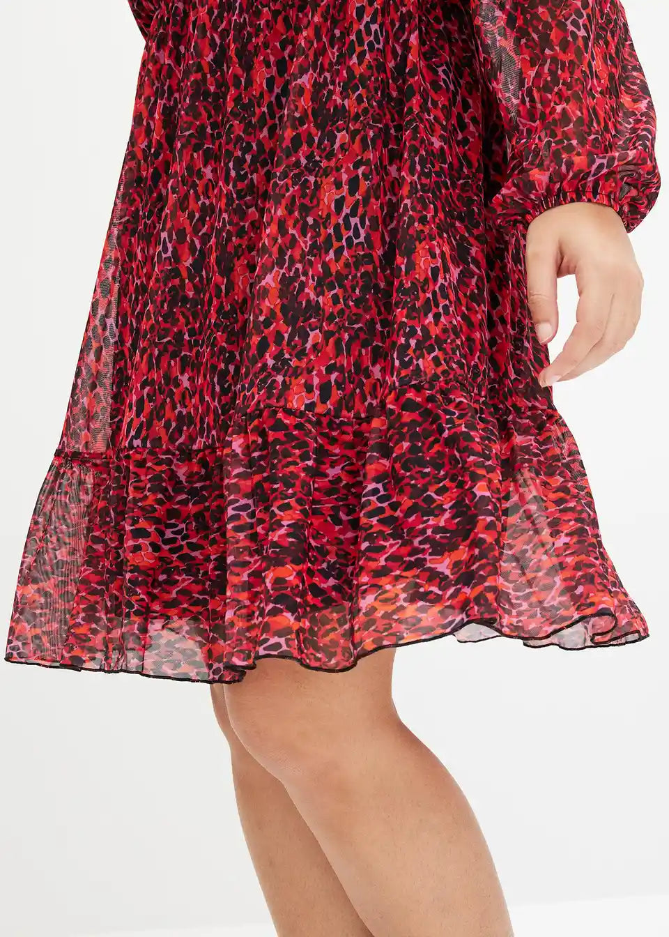 bedrucktes Mesh-Kleid mit Volants