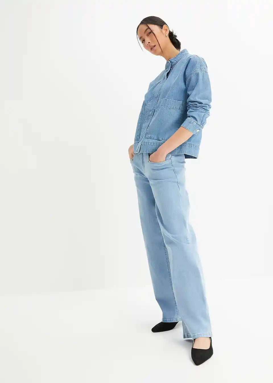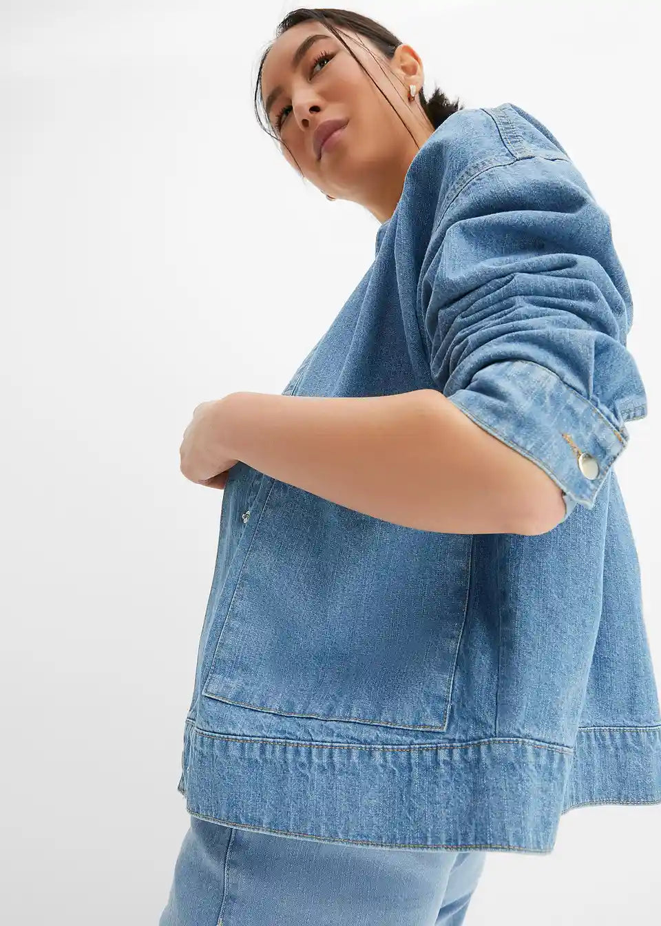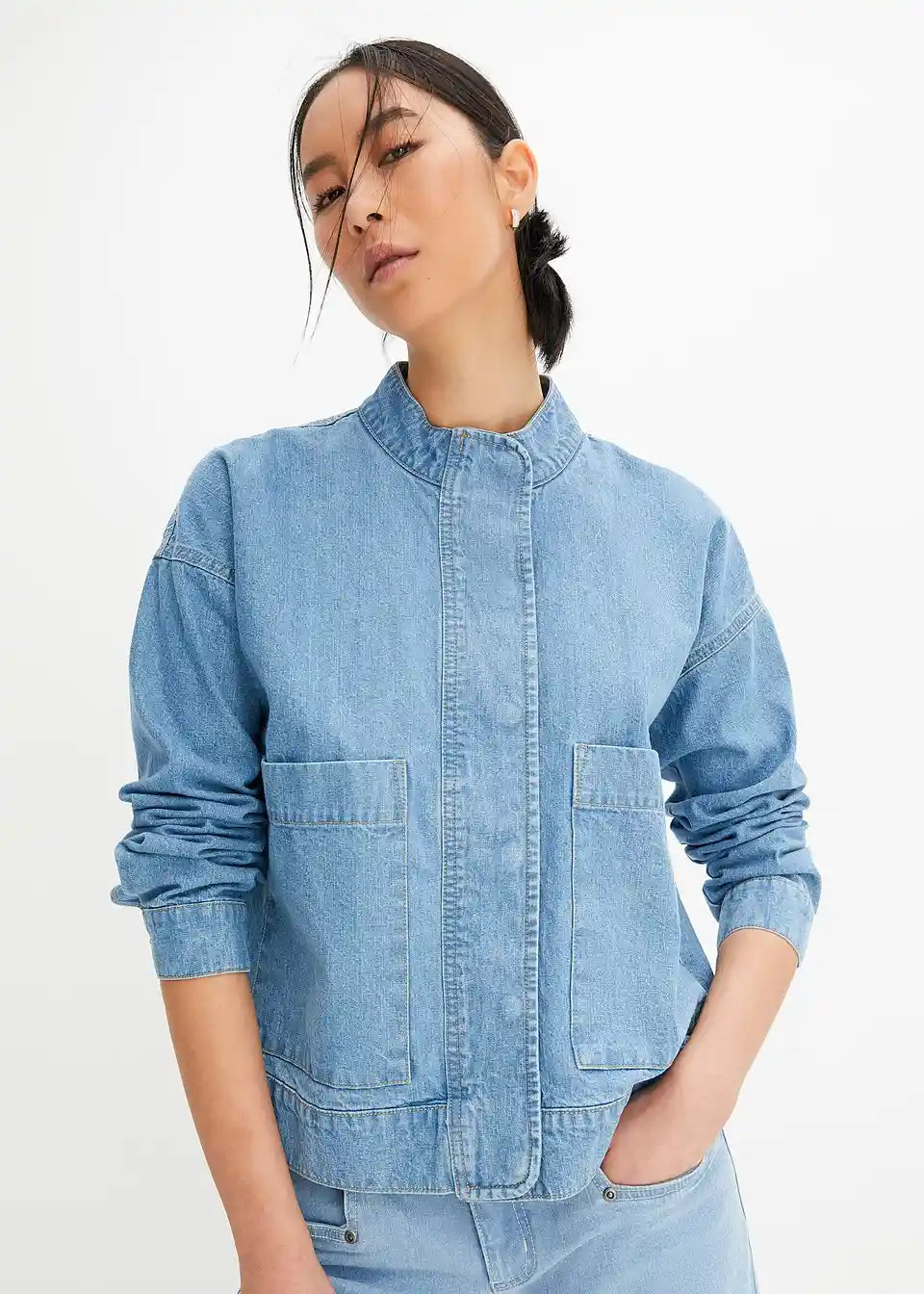 Kurze Jeansjacke mit Cargodetails fällt locker auf jeden Figurtypen