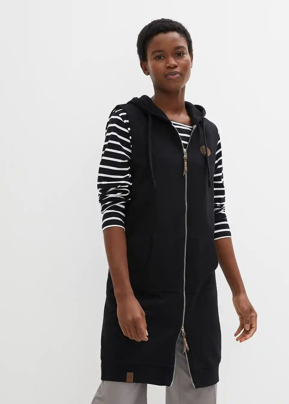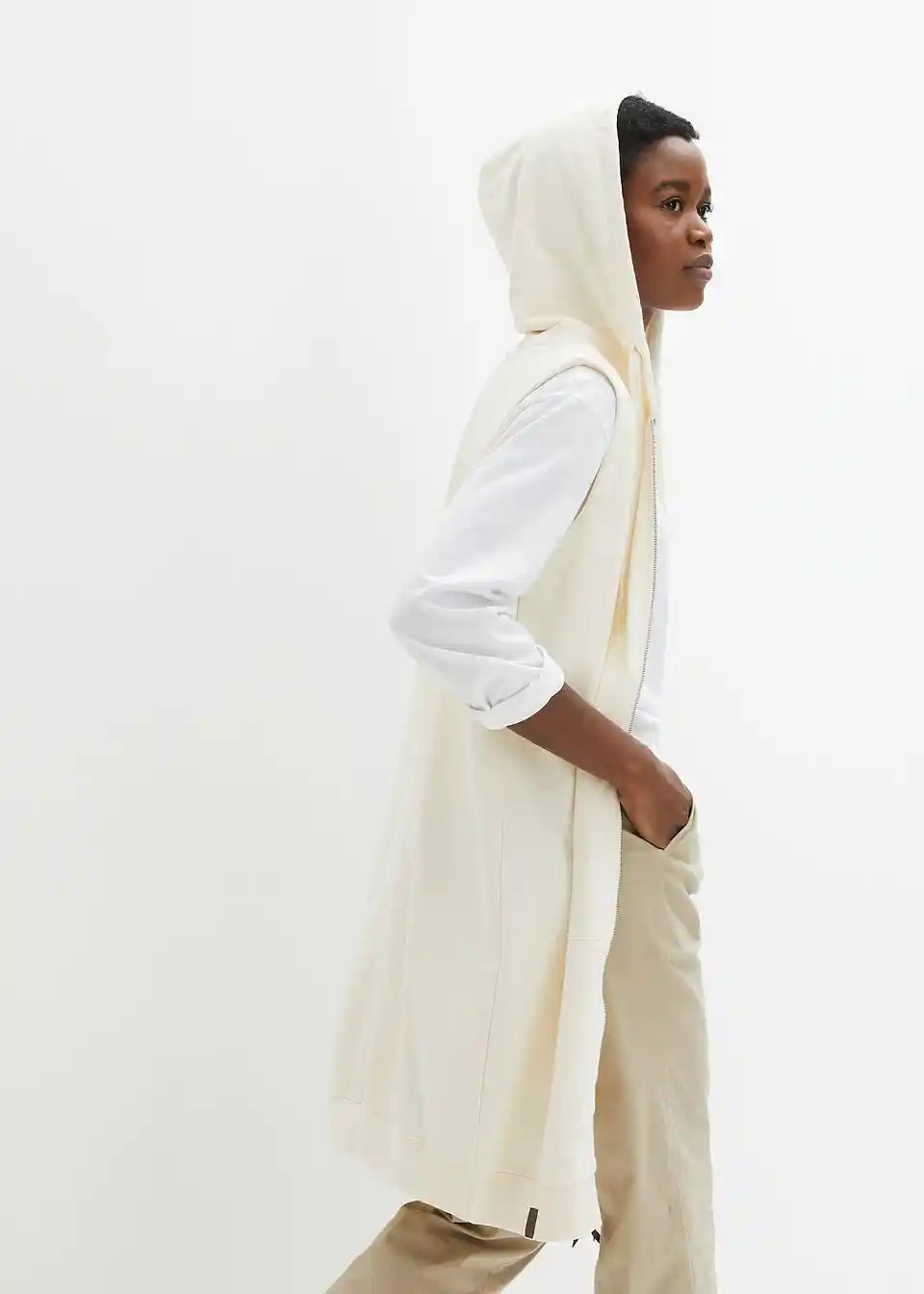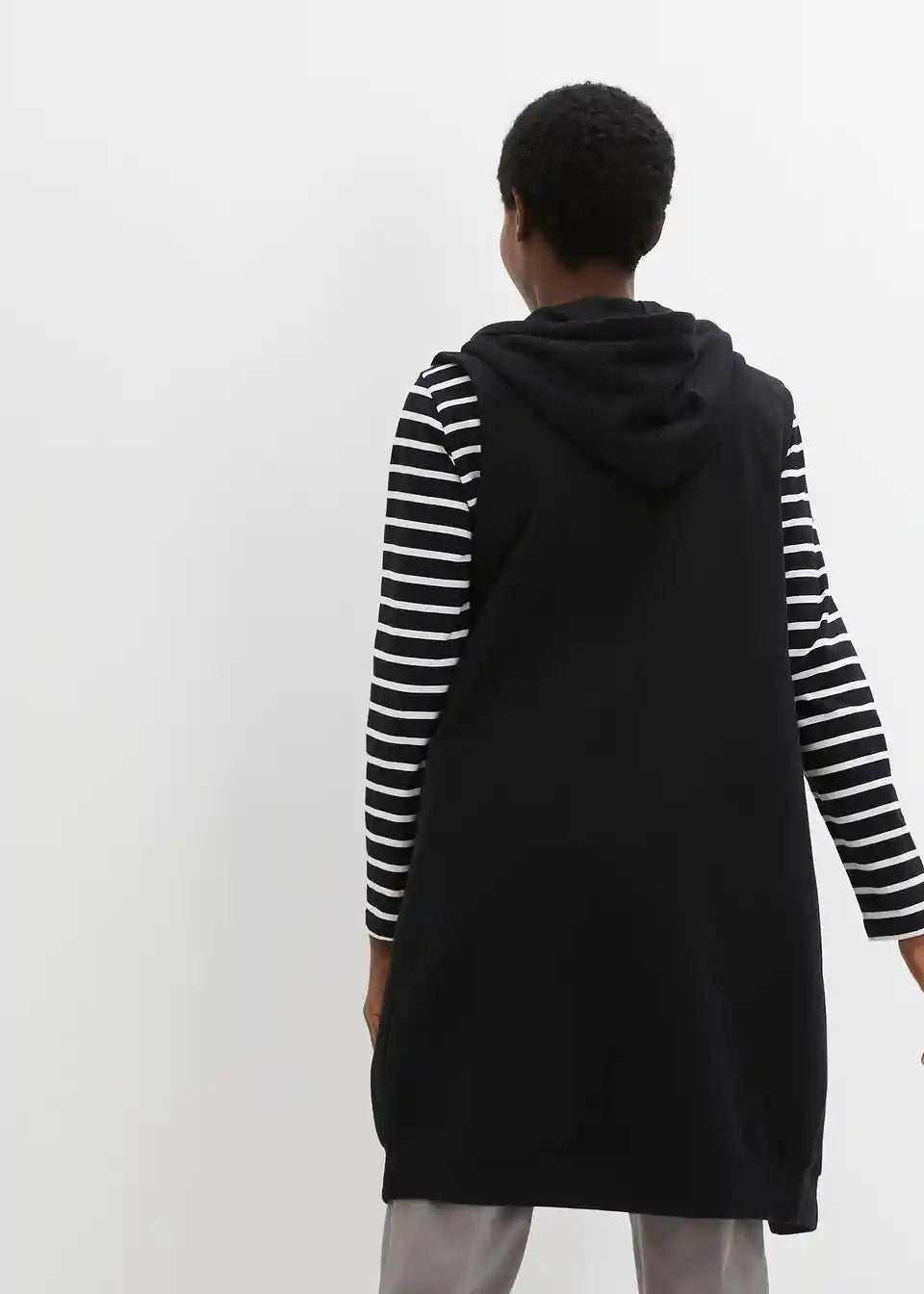 Long-Sweatweste mit Kapuze