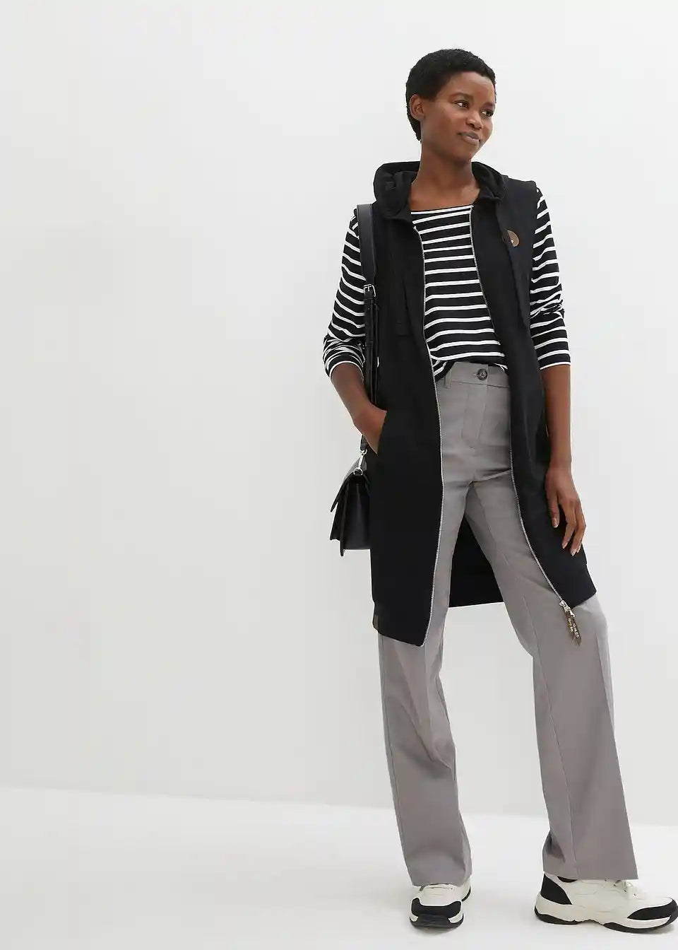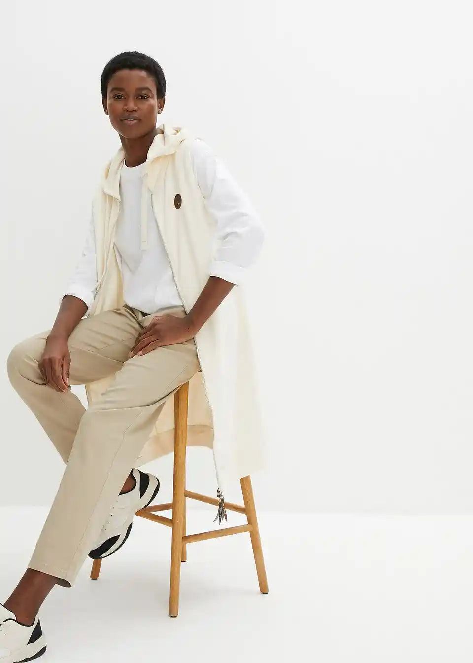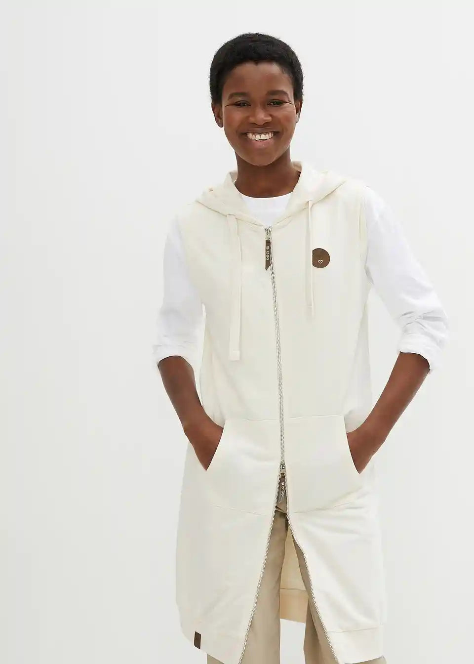 Long-Sweatweste mit Kapuze