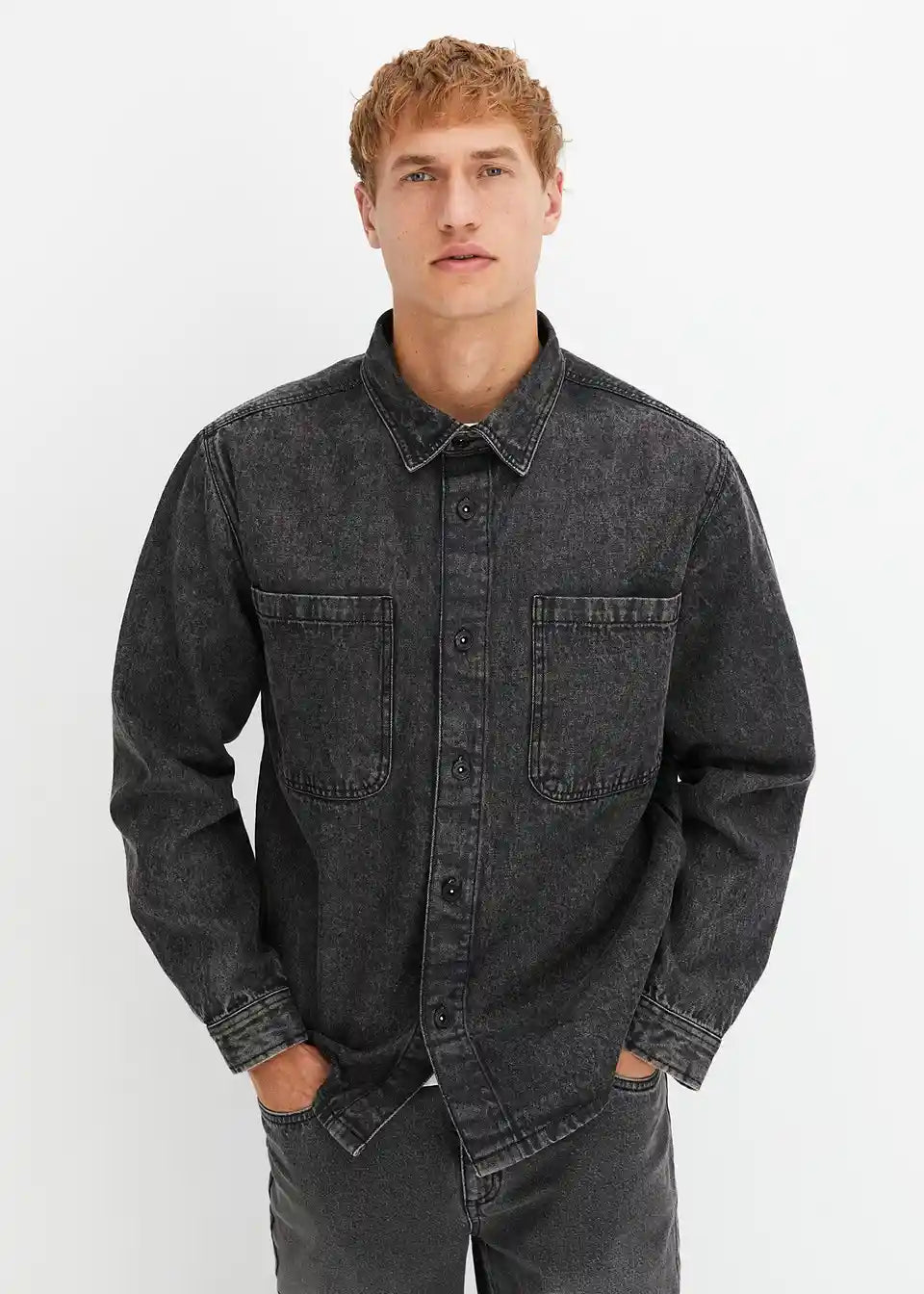 Jeans-Hemdjacke aus reiner Bio-Baumwolle, Oversized