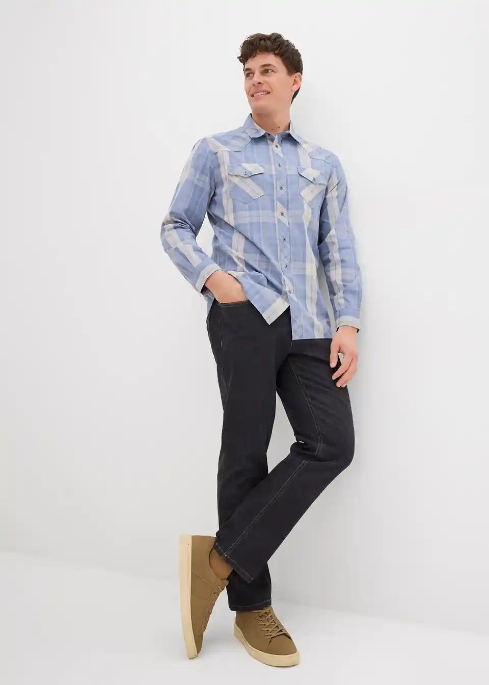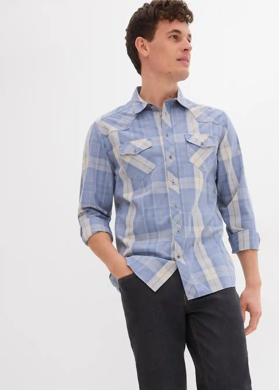 Modische Hemden im 2er Pack: 1x uni, 1x kariert