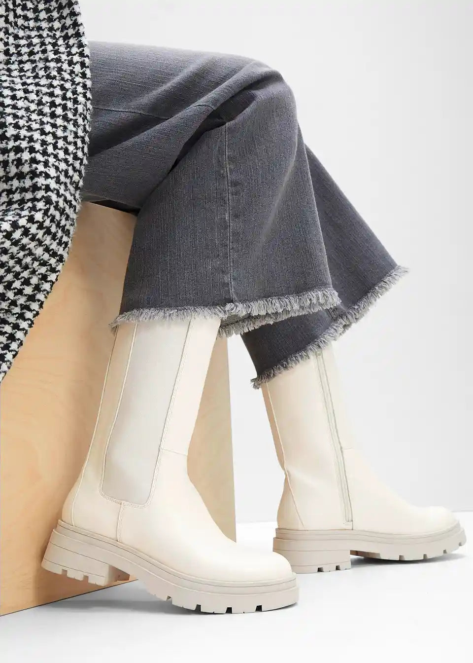 Schöner Stiefel, tolle Schafthöhe, gut verarbeitet. Länge passgenau, Weite vorn passgenau, aber an der Ferse ist der Stiefel viel zu weit, so dass der Stiefel bei jedem Schritt schlappt....schade!