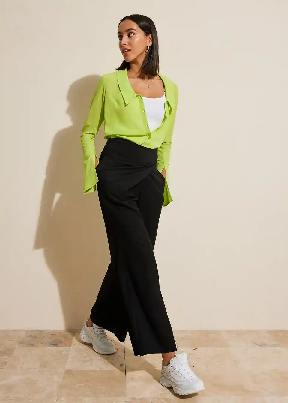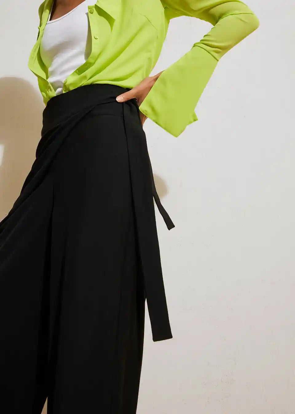 Hose mit asymmetrischer Optik vorne und seitlichem Verschluss.