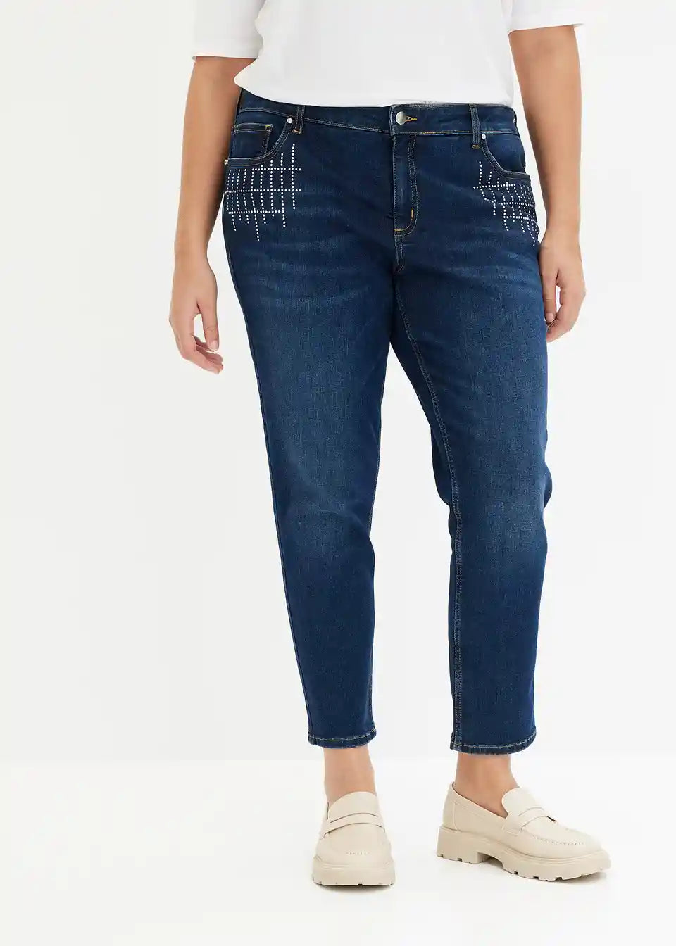 festliche Jeans mit Strass-Applikation vorne an den Taschen