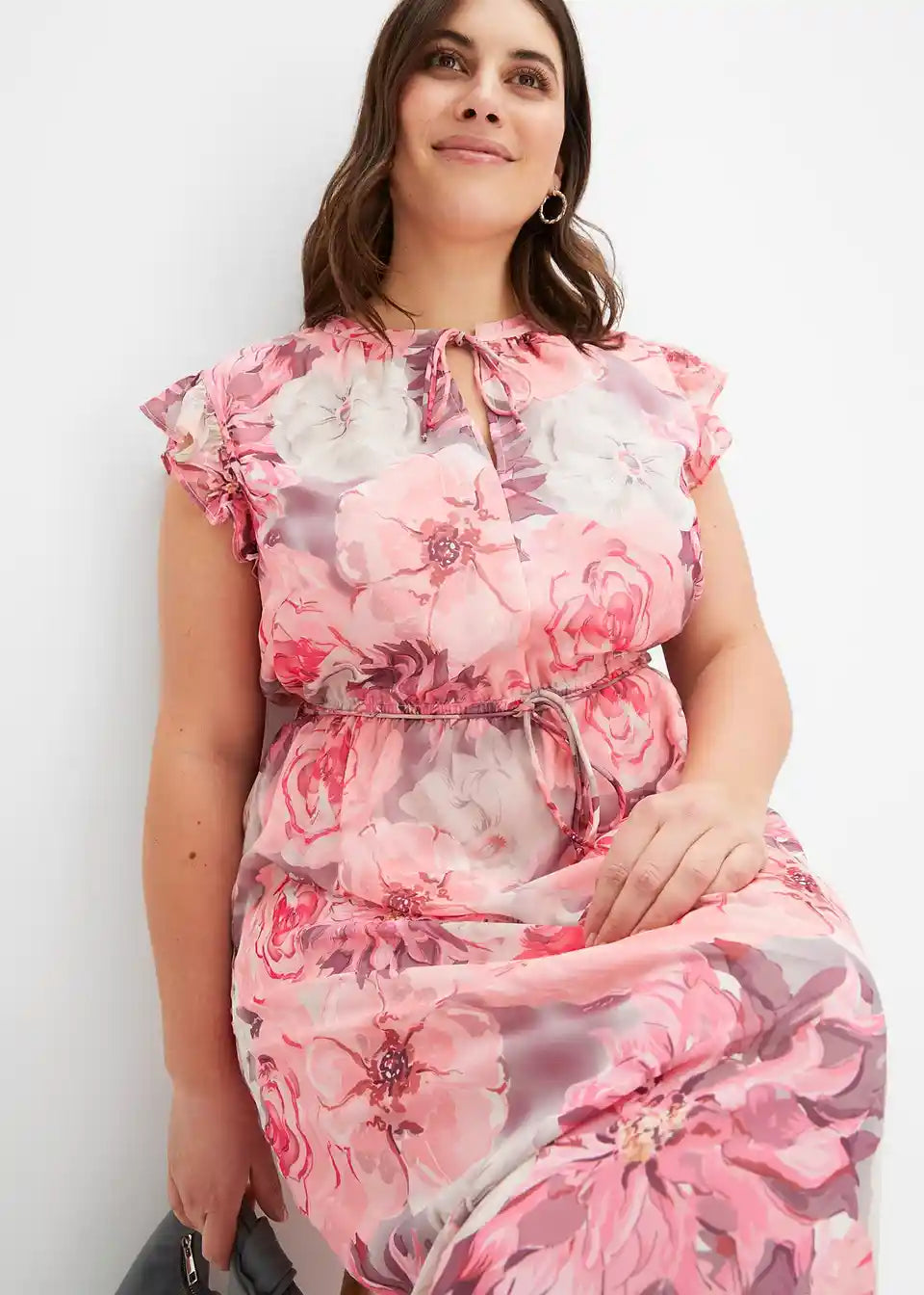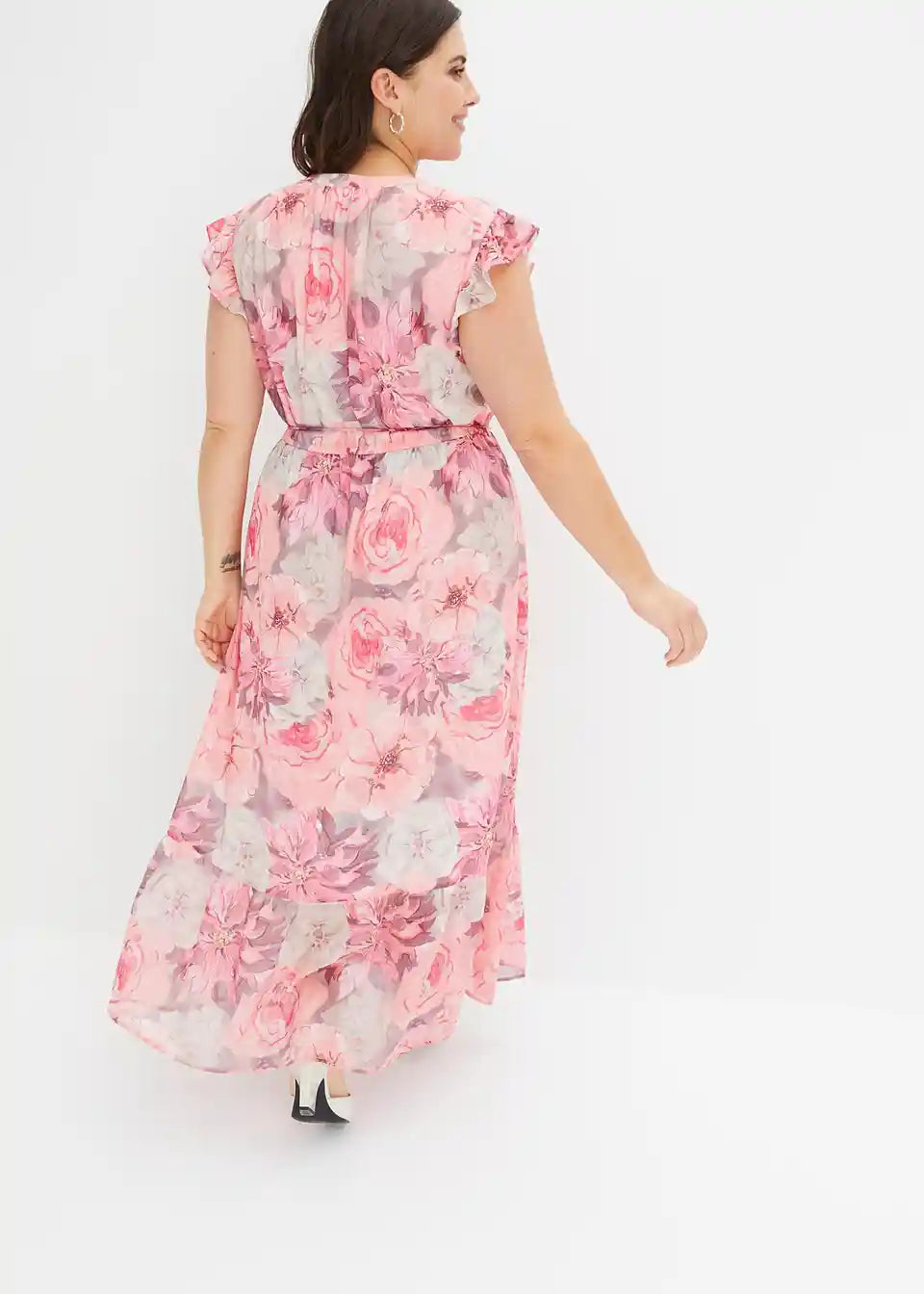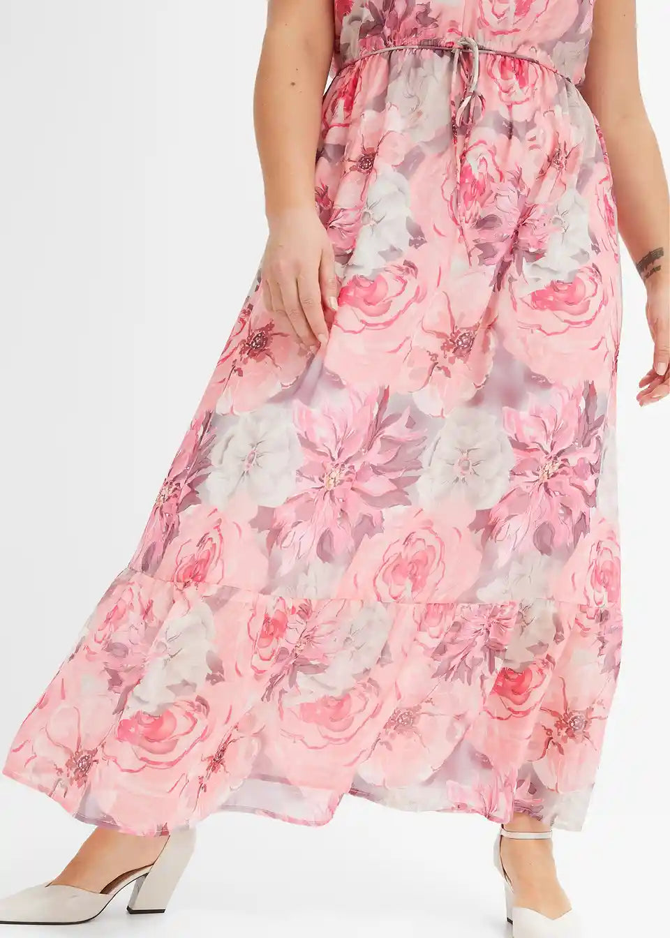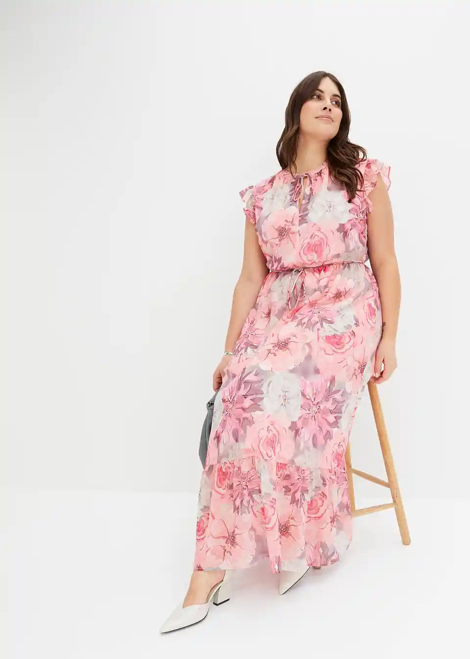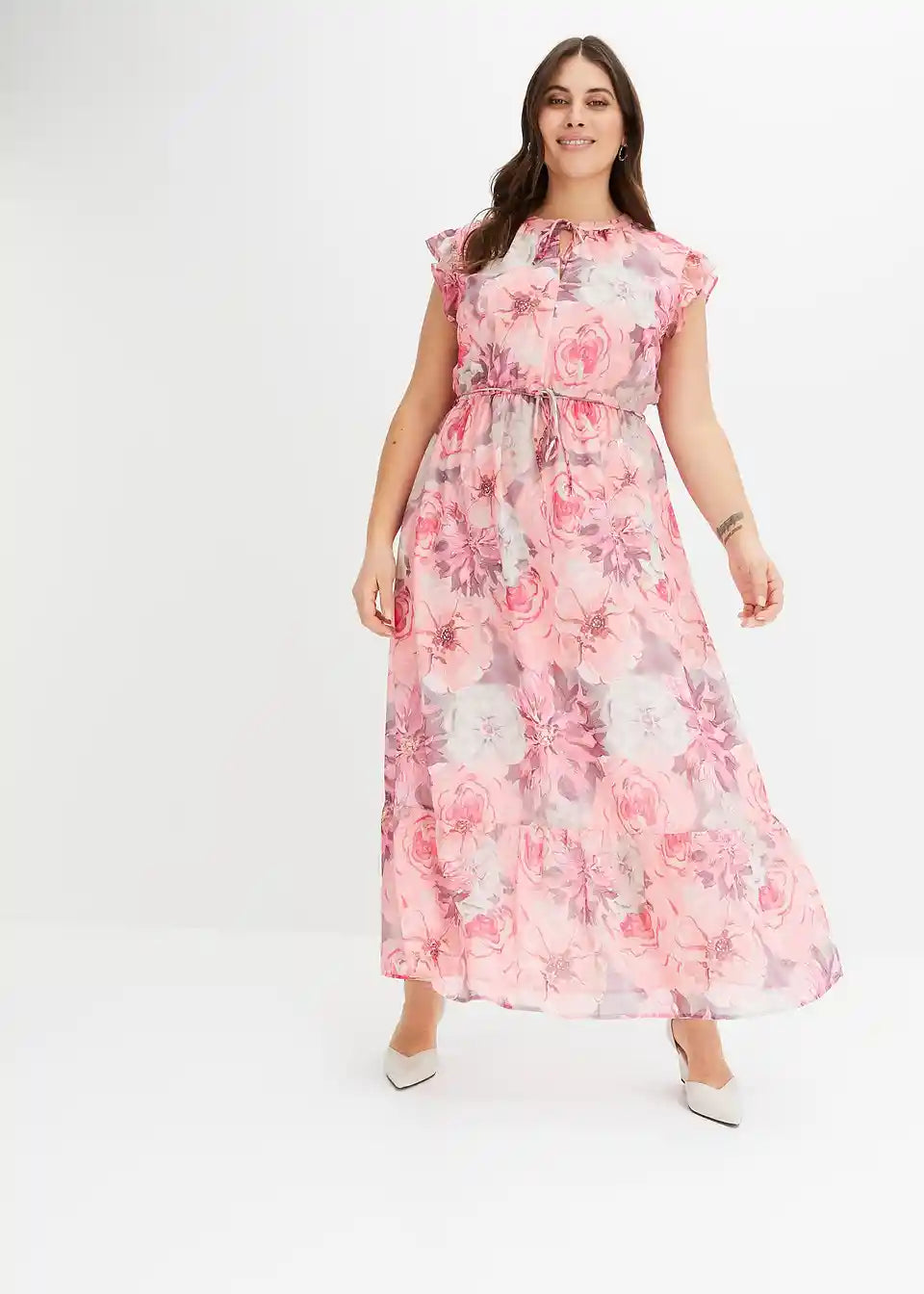 Feminines Maxikleid mit schönen Volants und Bindegürtel