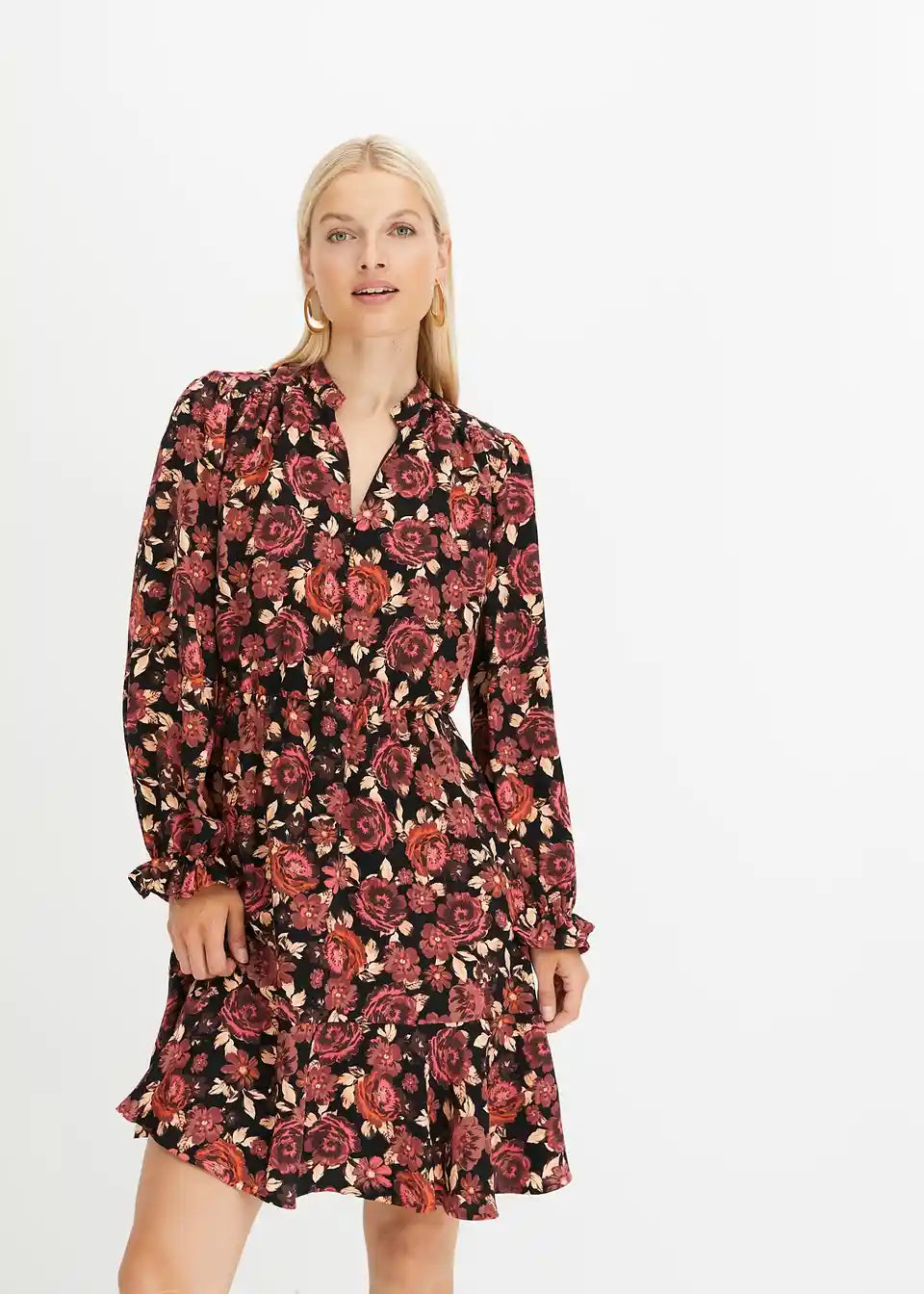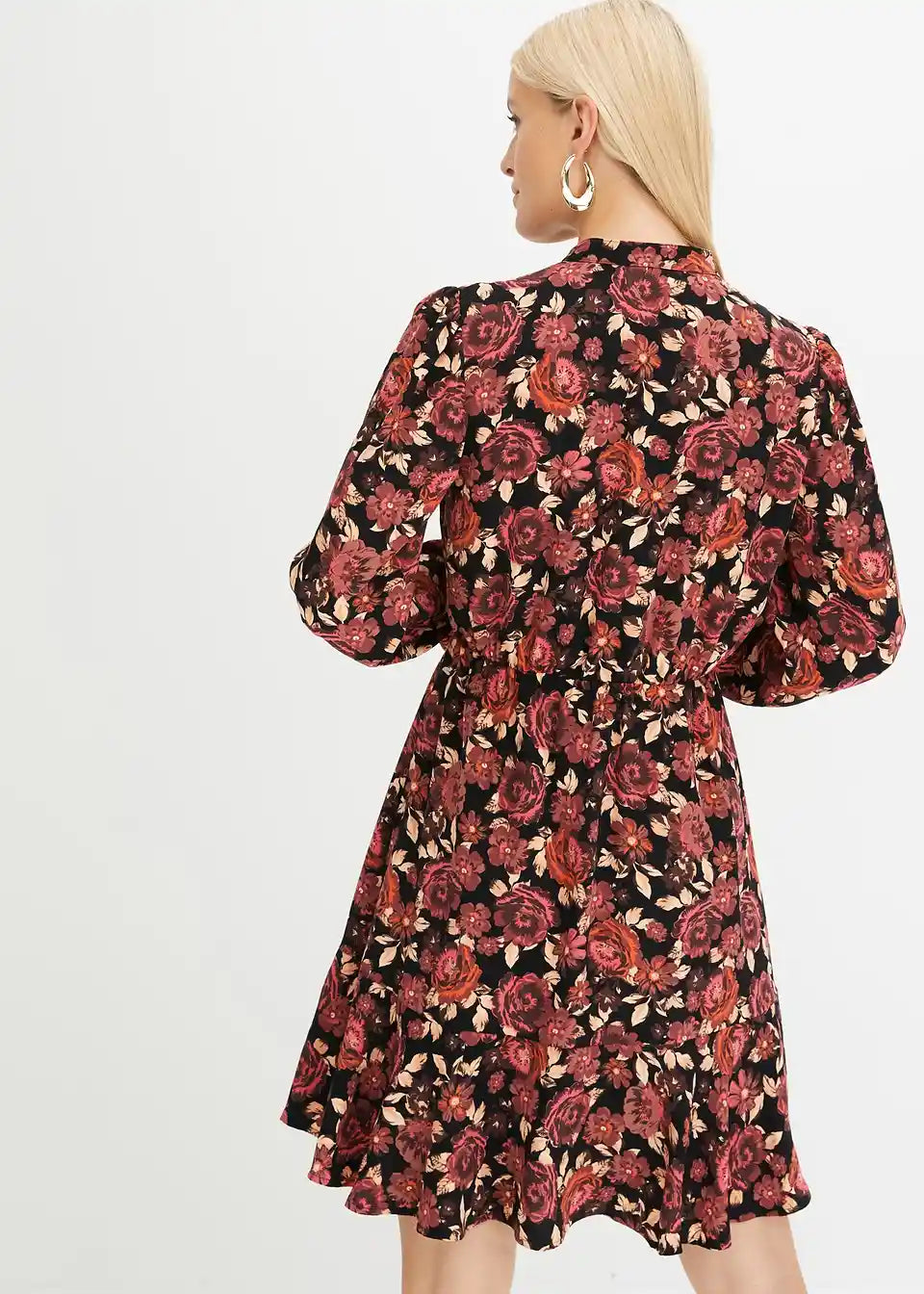 Guten Tag! Sehr hübsches wärmeres Kleid , Rosen auch im Herbst u. Winter ! Da ich normal eigentlich Gr.36 in Kleidern trage und 38 auf Grund von mehr Rockweite bevorzuge, bringe ich in der Taille einen Abnäher an. Alles super ! Material angenehm ! Preisle