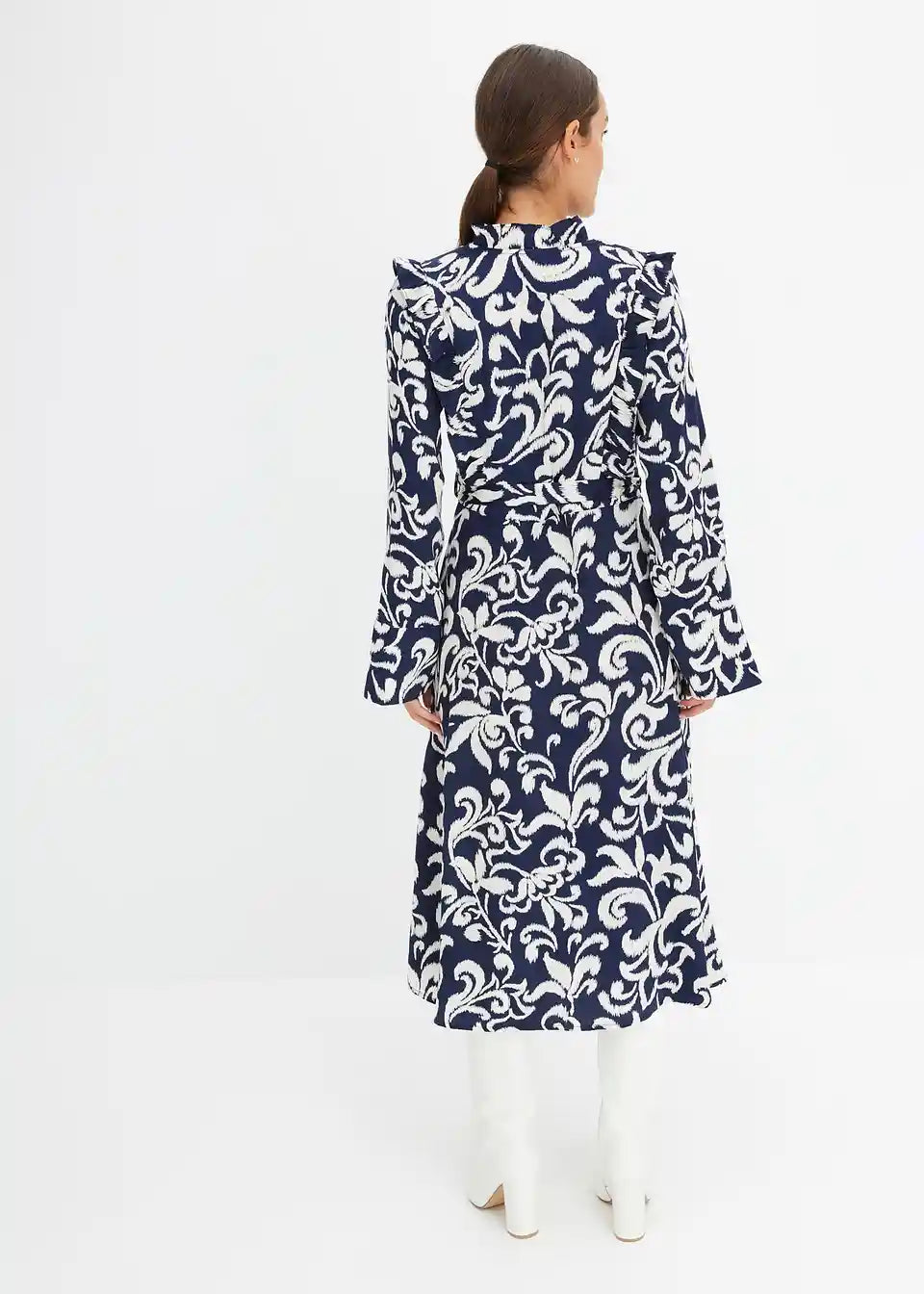 modisches Satin-Wickelkleid mit Volants an der Schulter