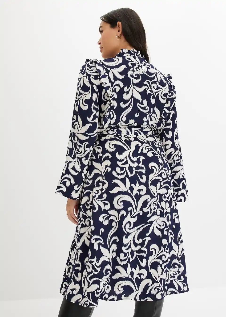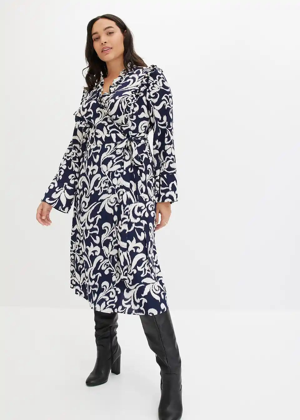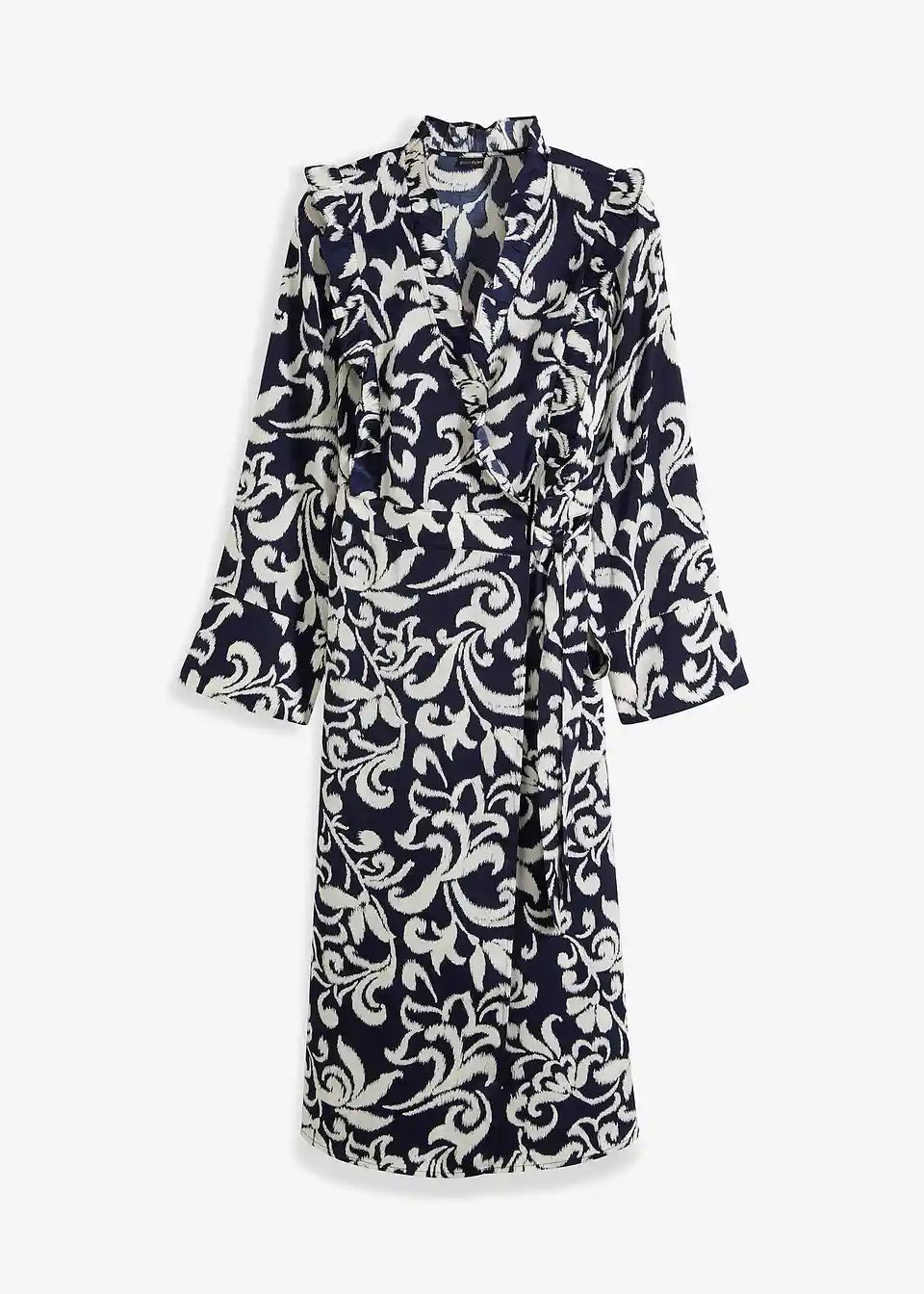 modisches Satin-Wickelkleid mit Volants an der Schulter
