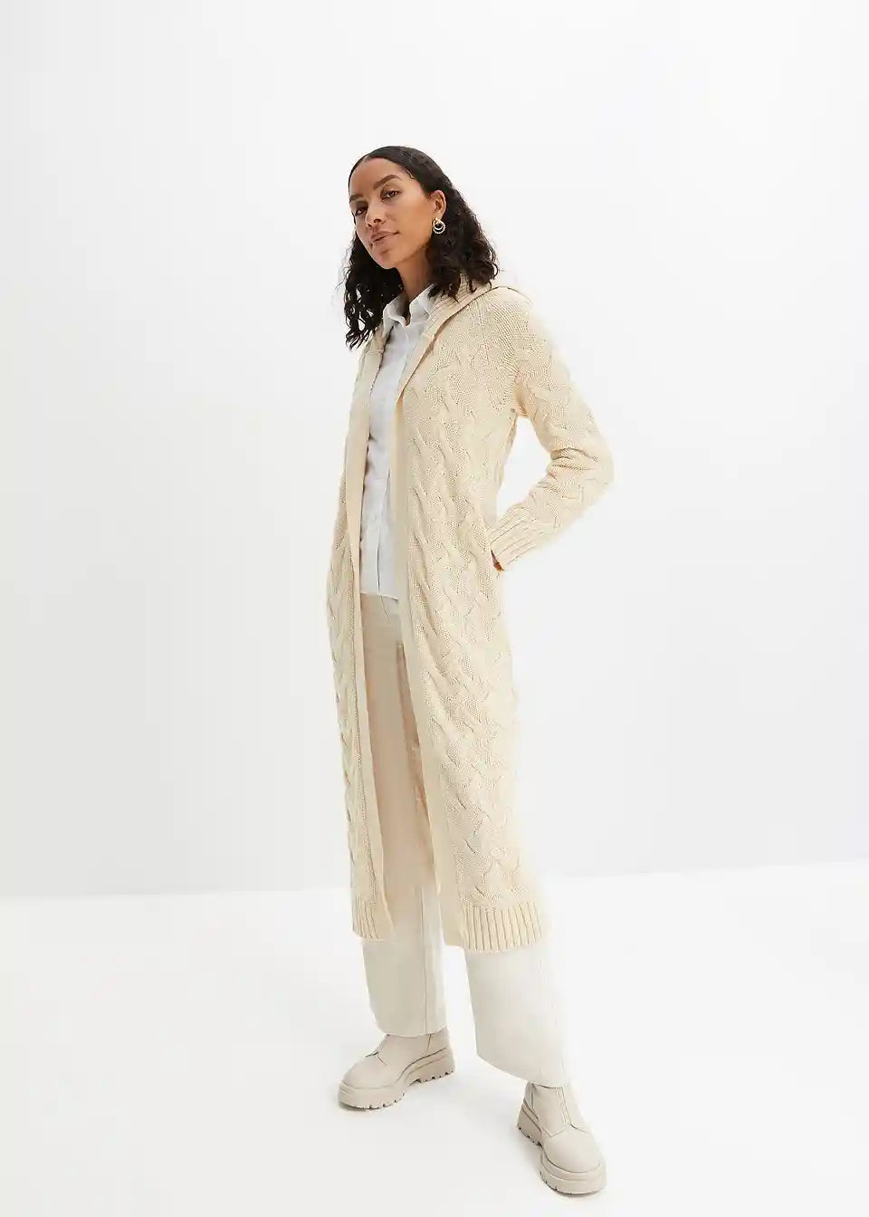 Weit geschnittener Strickmantel in vorteilhafter Maxi-Länge