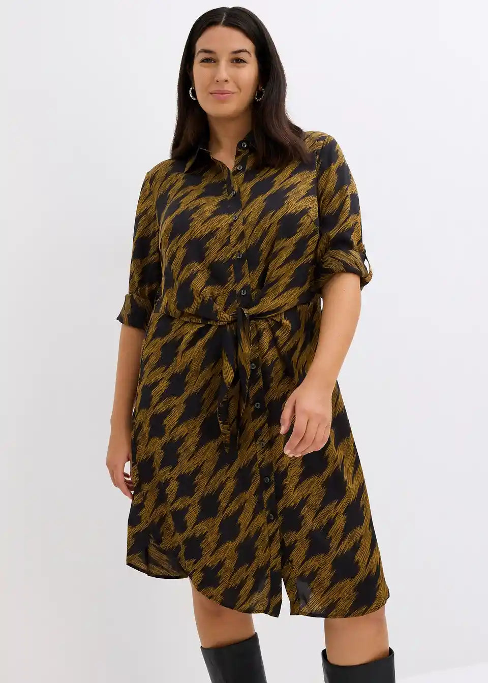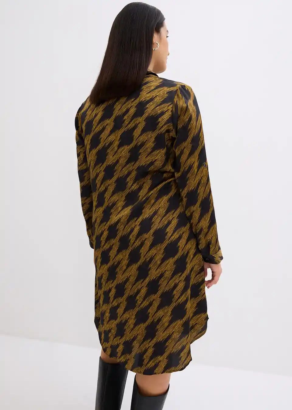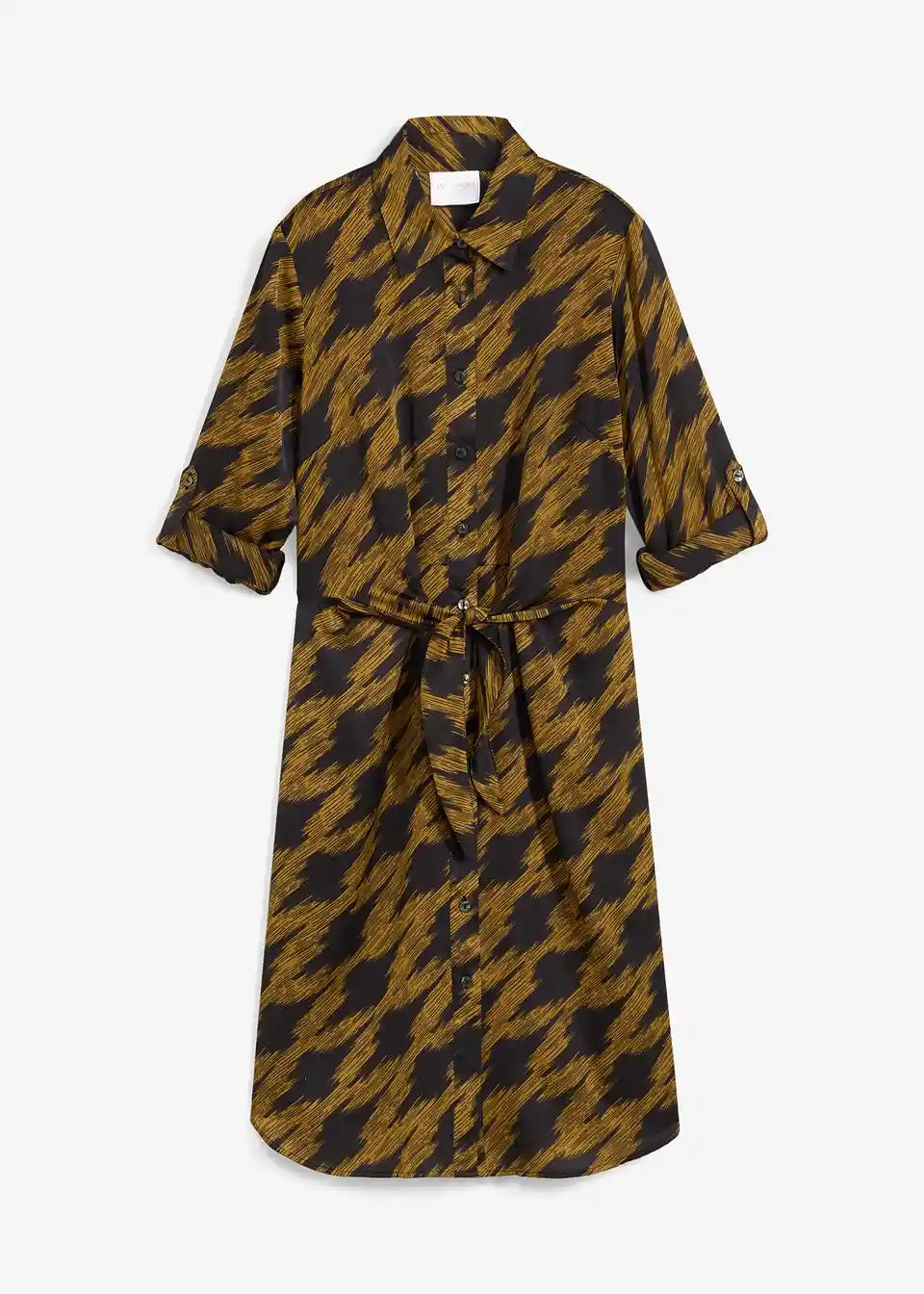 Schönes Satin Hemdblusenkleid mit modernen Leo-Druck