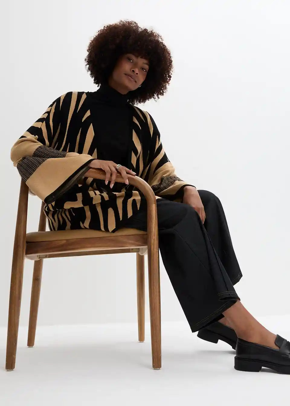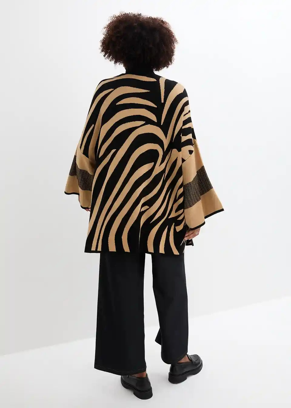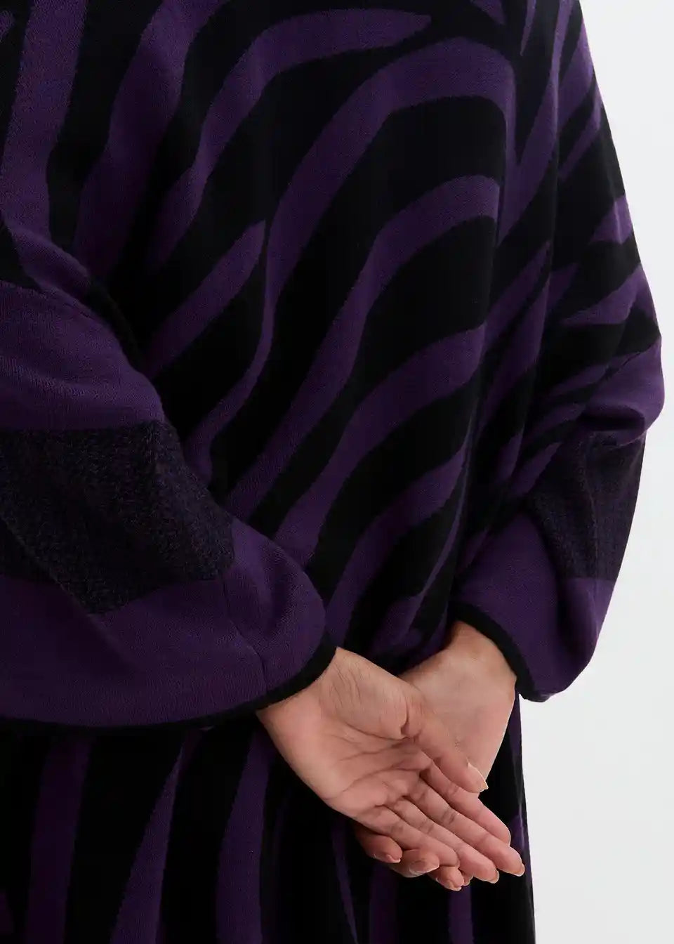 Das Material ist recht hochwertig, fester Feinstrick. Leider lässt das Muster die Trägerin viel fülliger erscheinen.